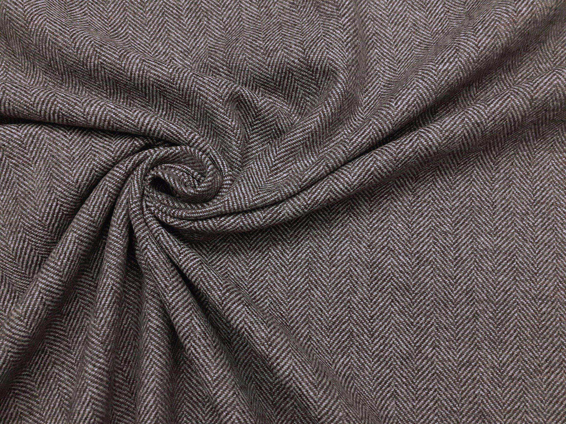Questo tessuto, di produzione italiana, è caratterizzato da un intreccio di fili irregolari che formano il classico effetto “tweed” su trama spigata. Di medio peso è stato prodotto con classici filati ruvidi e nervosi e viene usato per realizzare capi spalla e gonne.