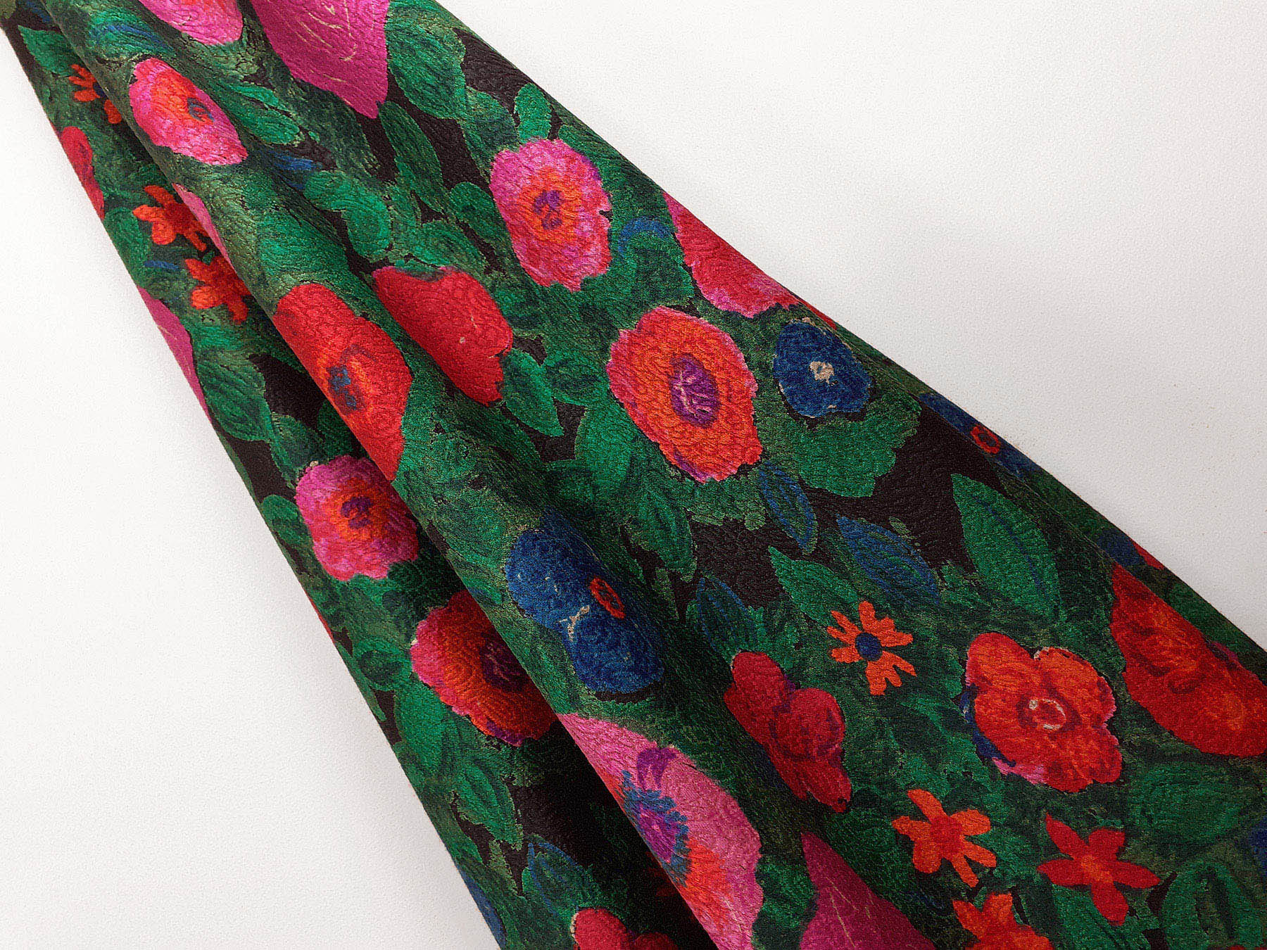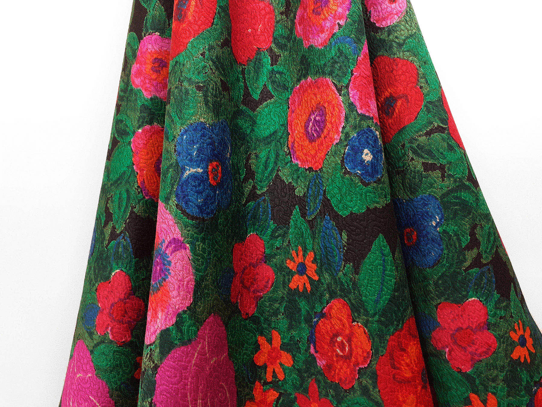 Nei tessuti di seta e lana la lavorazione jacquard, con il contrasto fra lucido e opaco, crea un piacevole effetto di tridimensionalità. Perfetto per la realizzazione di abiti ampi e sinuosi grazie alla sua morbidezza e caduta, può essere utilizzato anche per capi più lineari che mettono in evidenza la ricchezza e la particolarità di questo tipo di tessuto.
