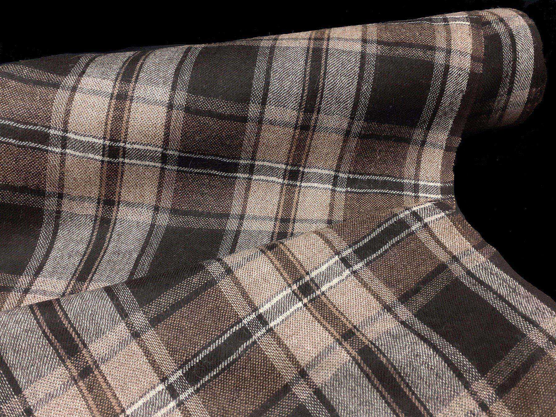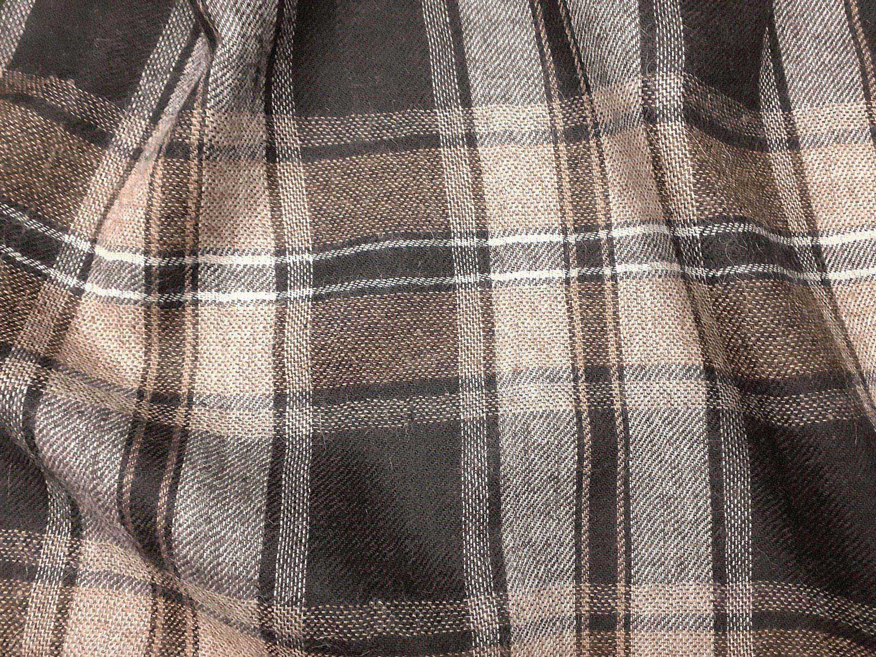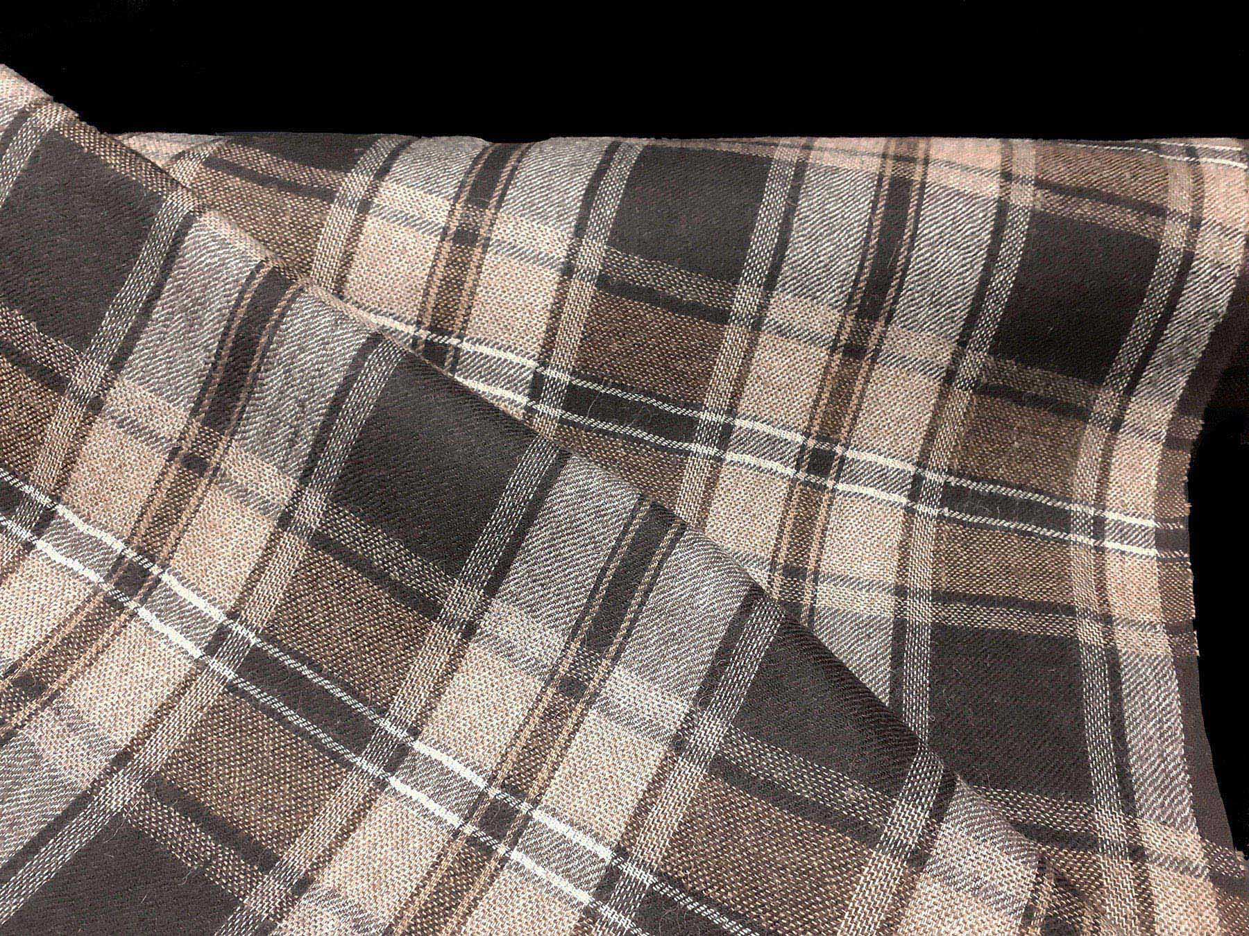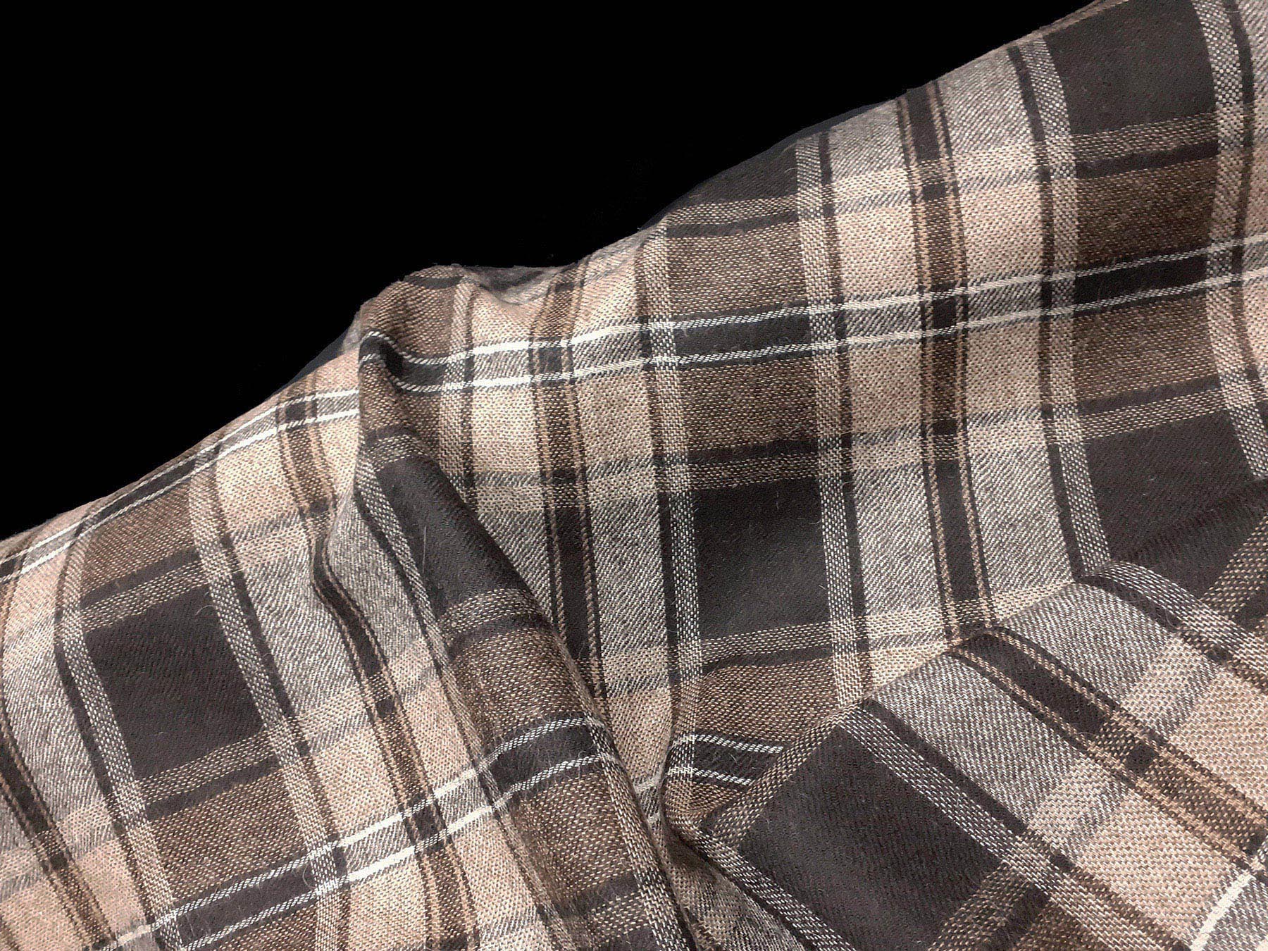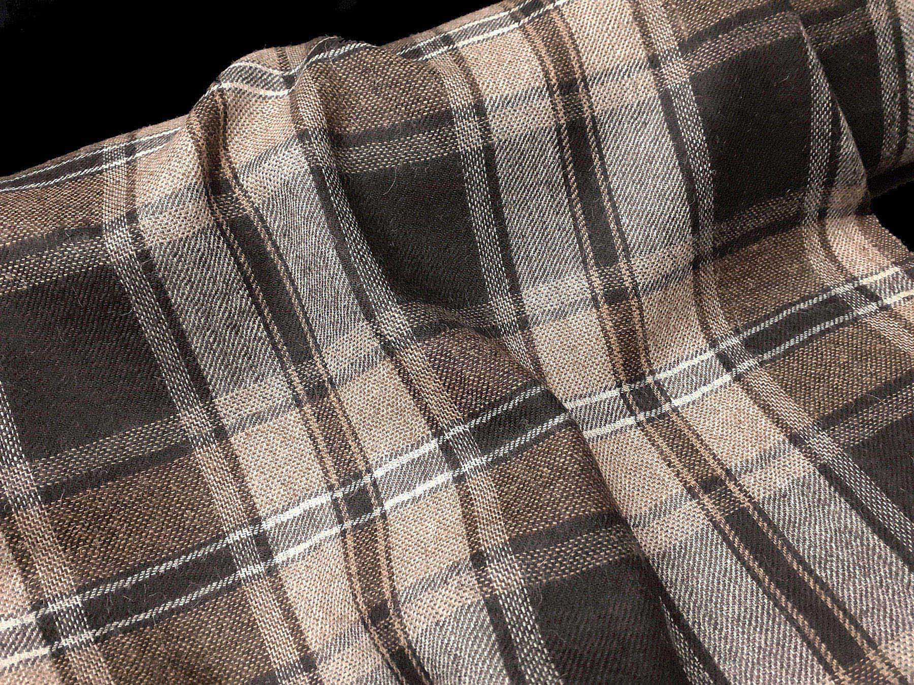 Tessuto in lana alpaca disegno scozzese sui toni del marrone e beige