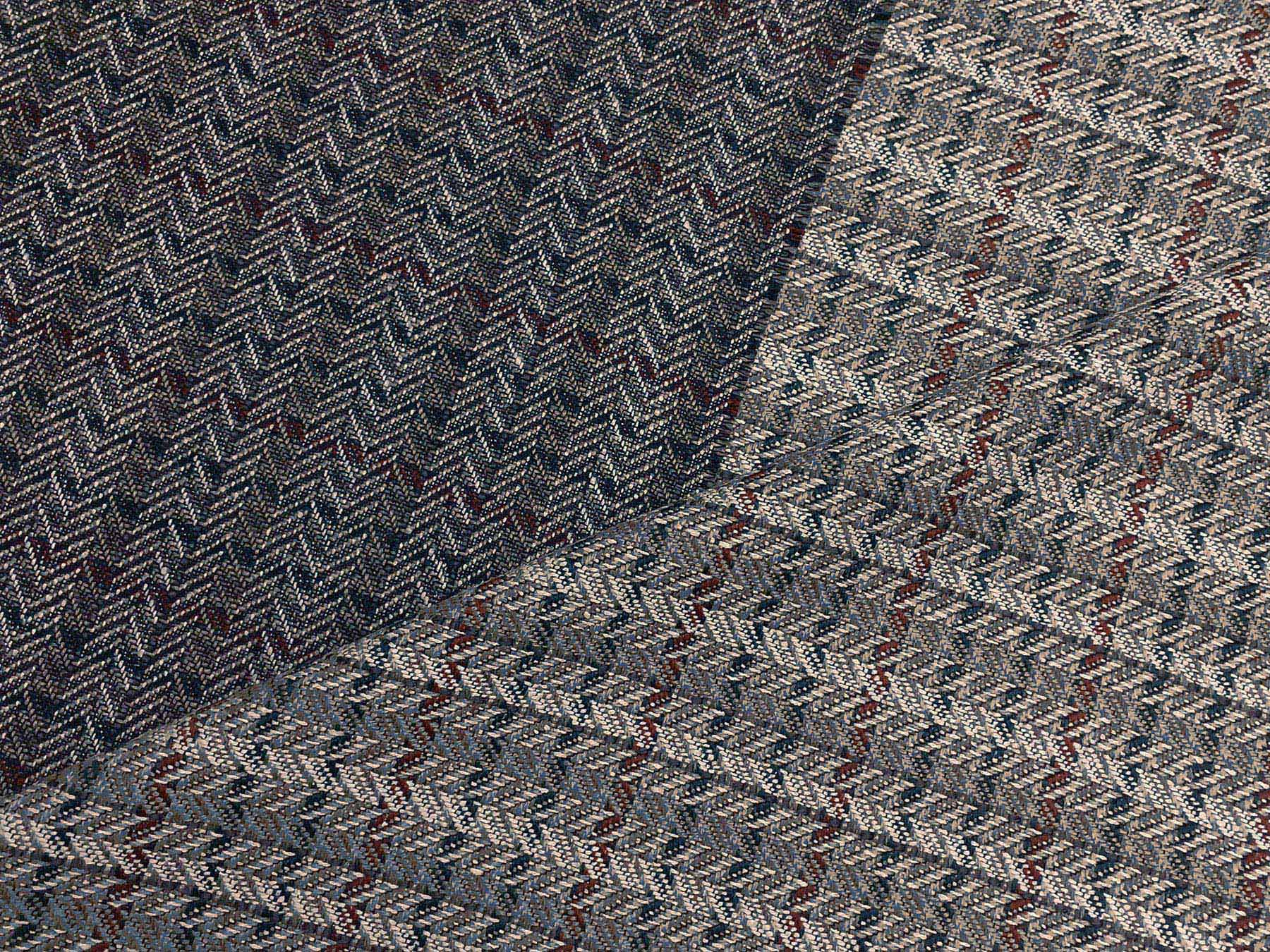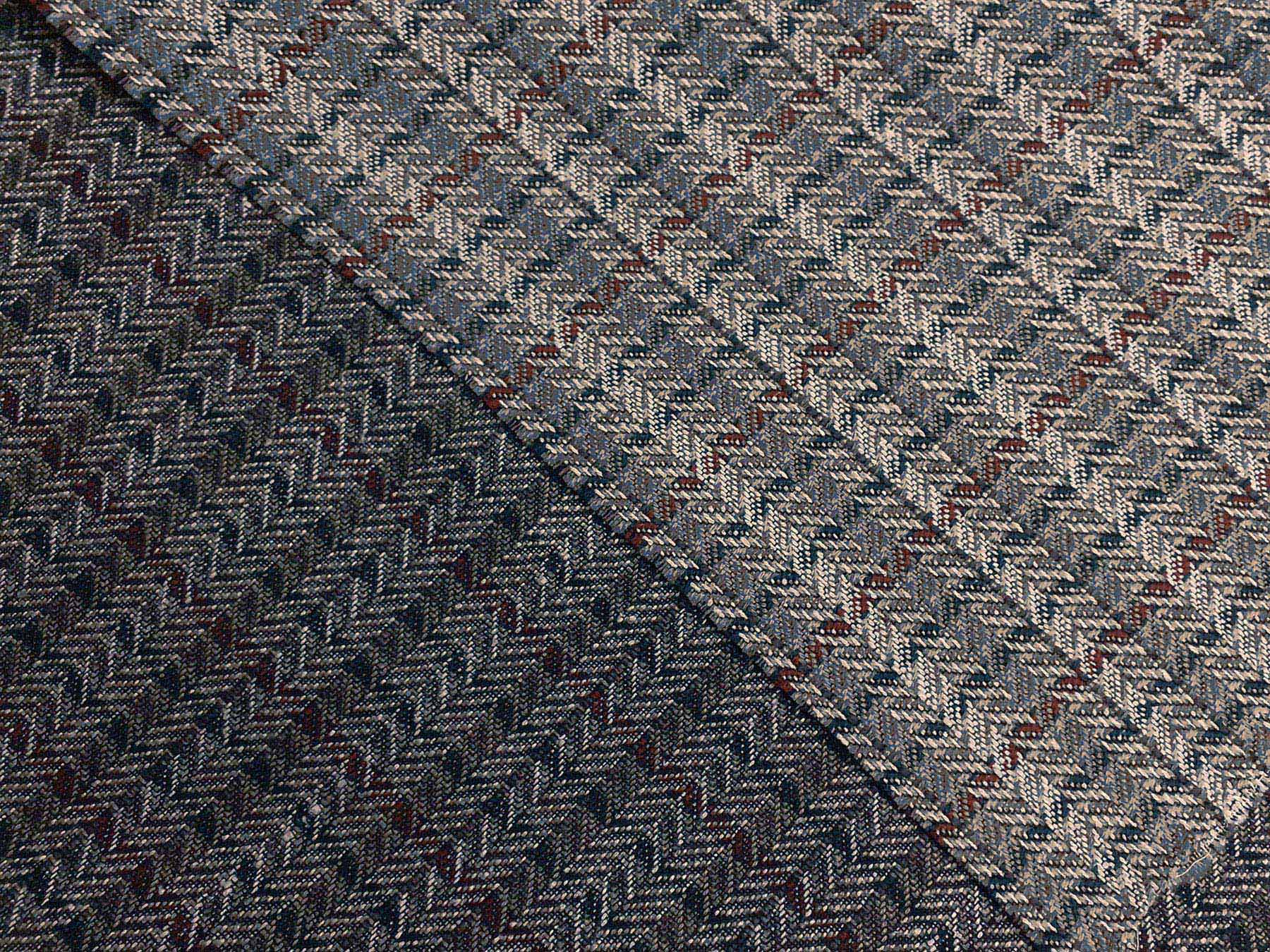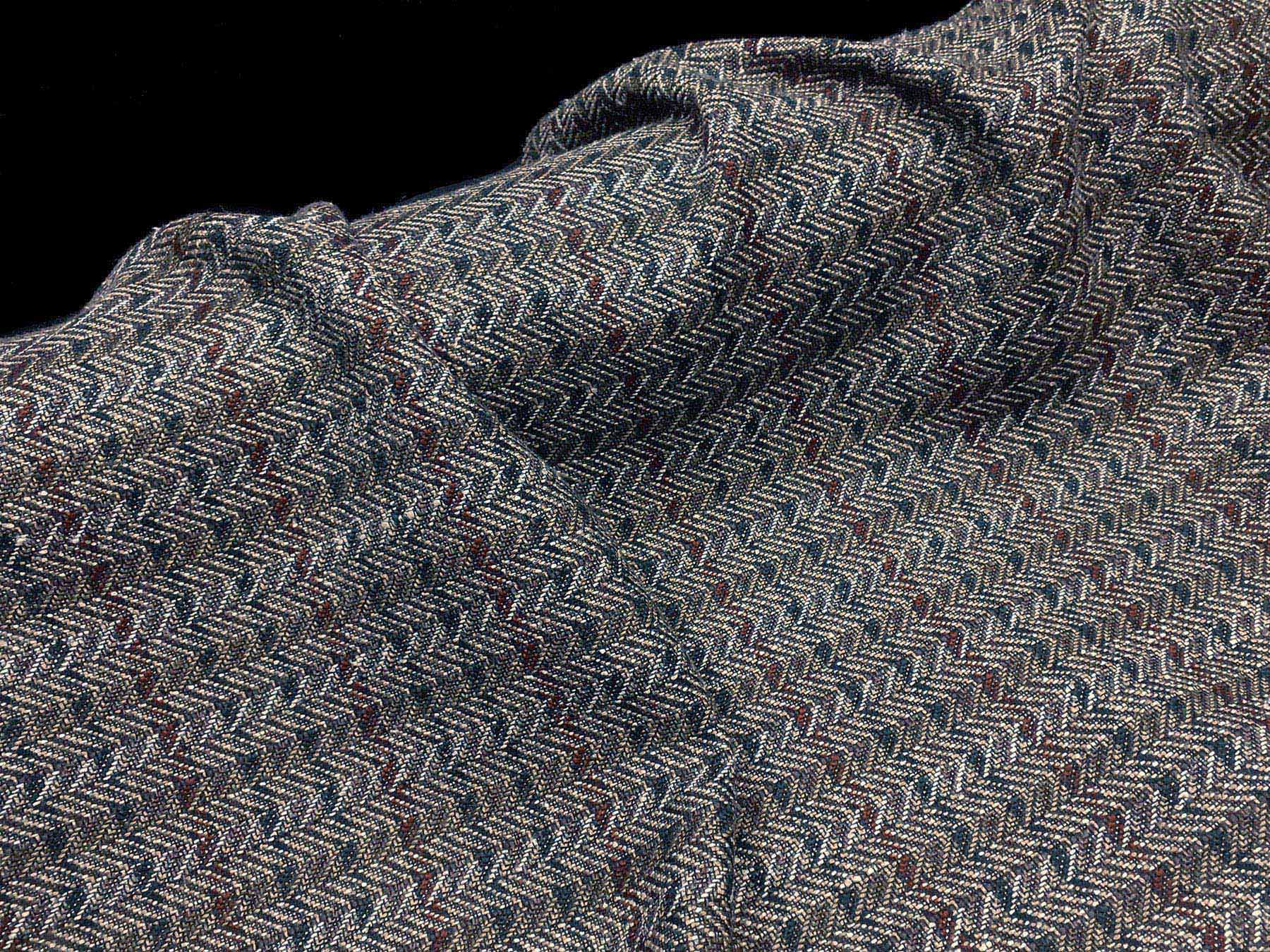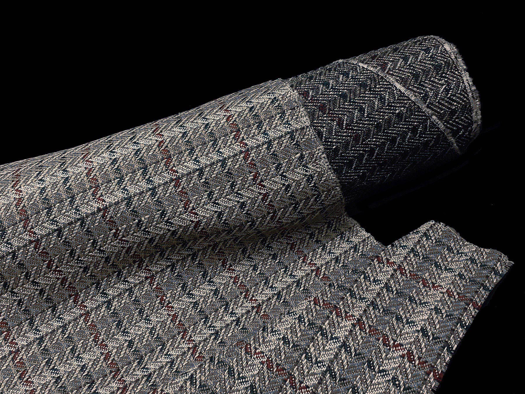 In questo tessuto di pura lana cardata, prodotto a Biella, la lavorazione jacquard con il contrasto fra lucido e opaco, crea un piacevole effetto di tridimensionalità. Di peso medio-alto ha mano calda e ruvida – non si stropiccia e non si usura nel tempo – ed è adatto per realizzare capispalla, abiti e gonne.