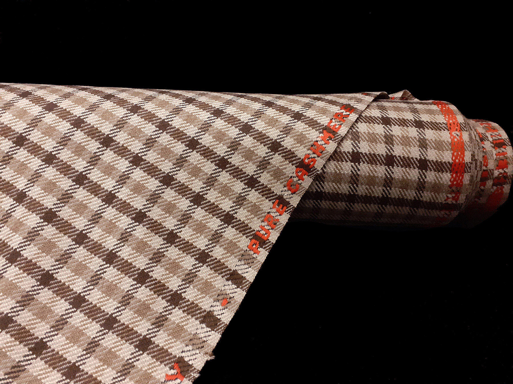 Tessuto in puro cashmere quadretti toni dal beige al marrone