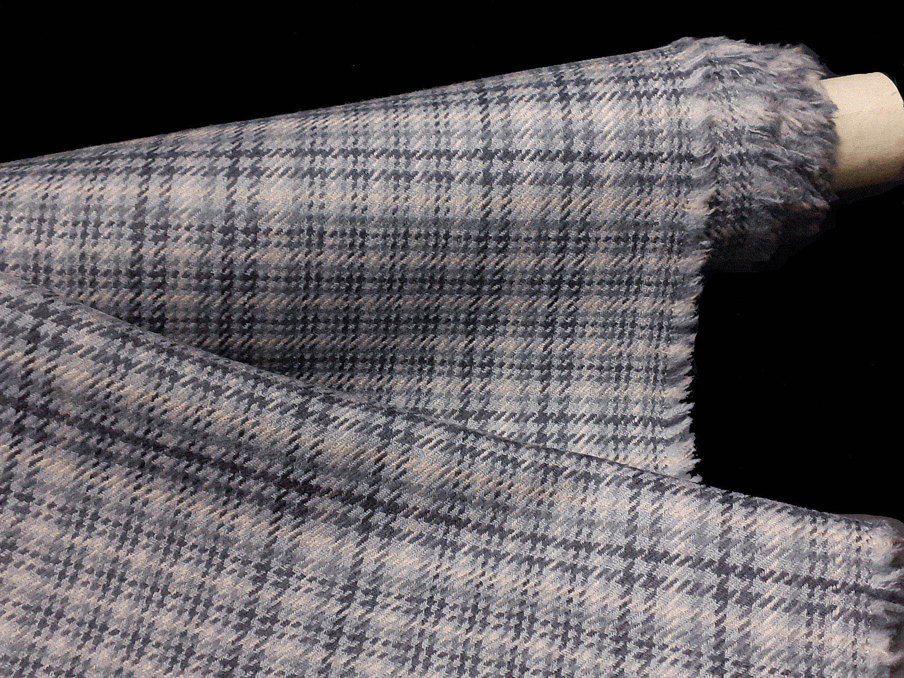 Tessuto pied de poule ad armatura Twill – la più utilizzata per le caratteristiche di robustezza e versatilità – prodotto a Biella in pura lana merino. Ha peso medio, mano calda, non si stropiccia e non si usura nel tempo. Consigliato per la realizzazione di capi spalla femminili e gonne.