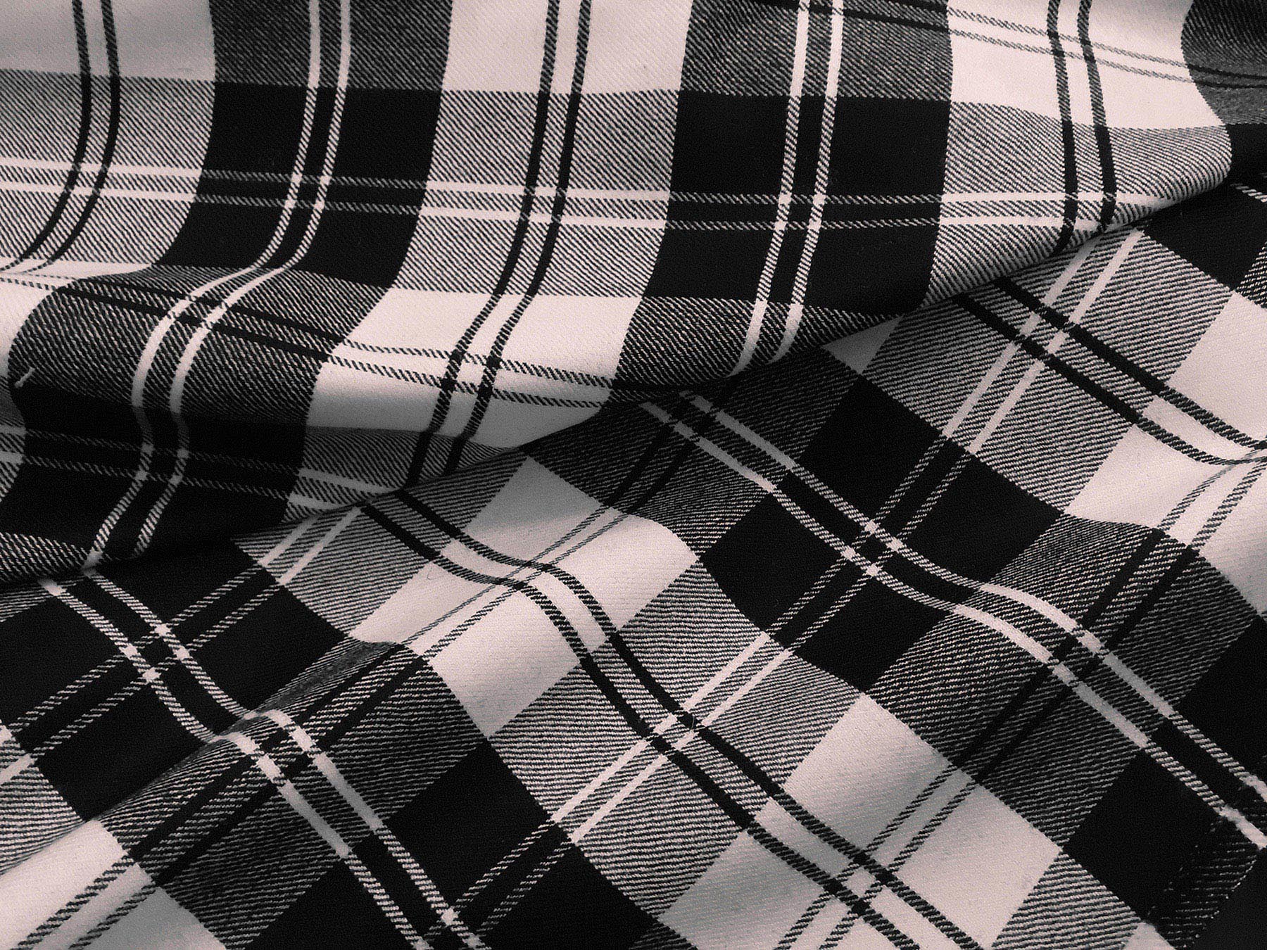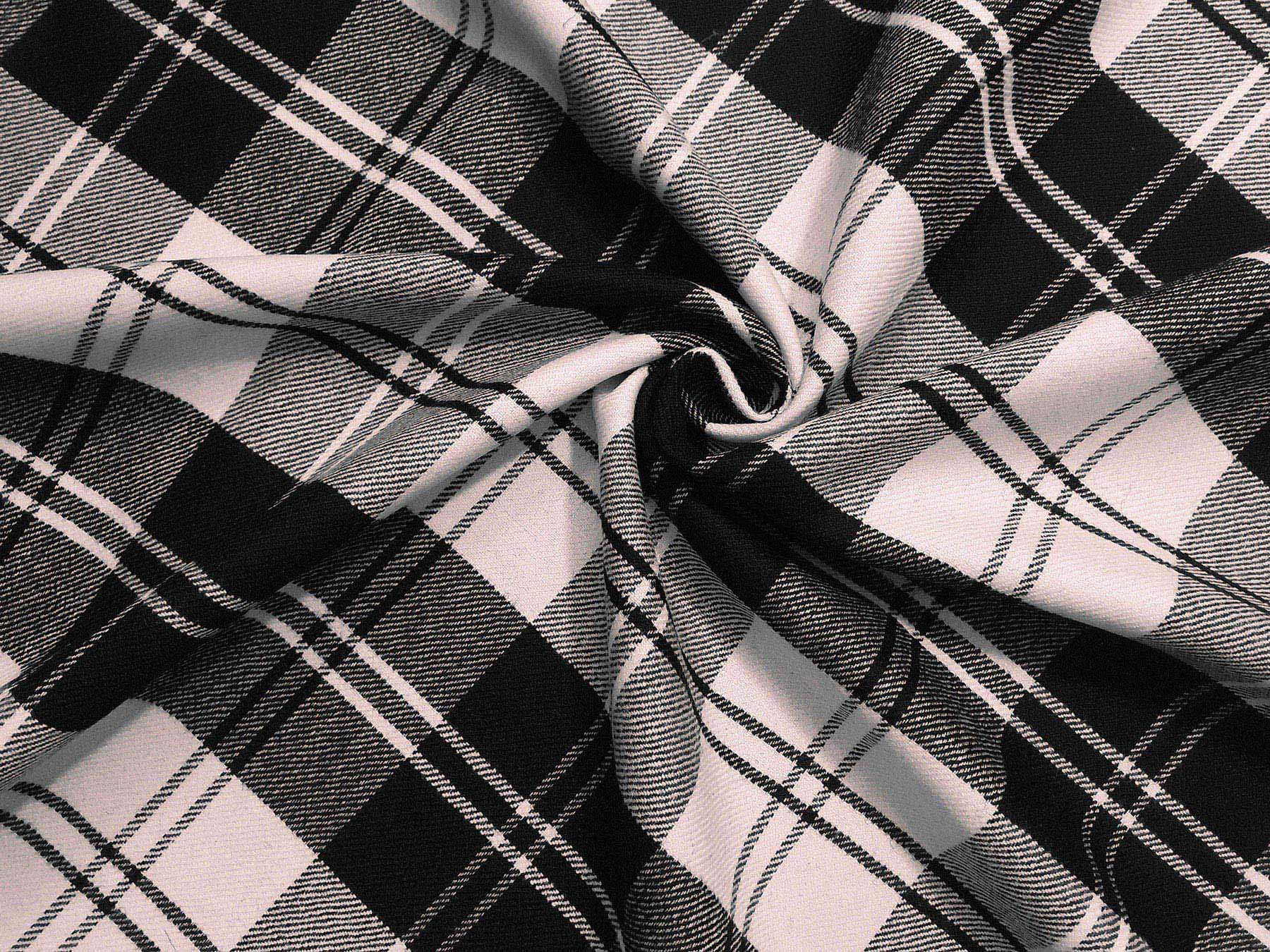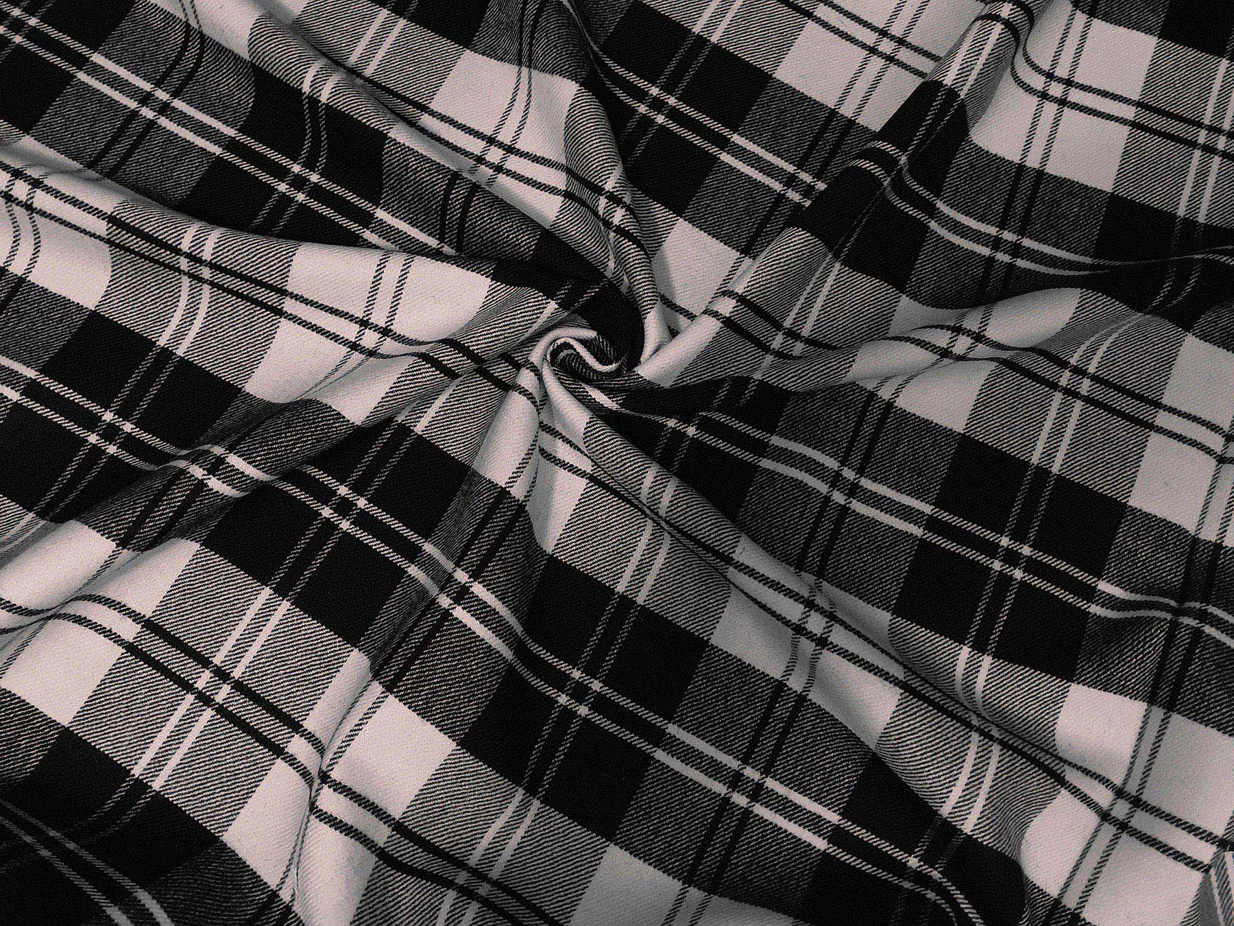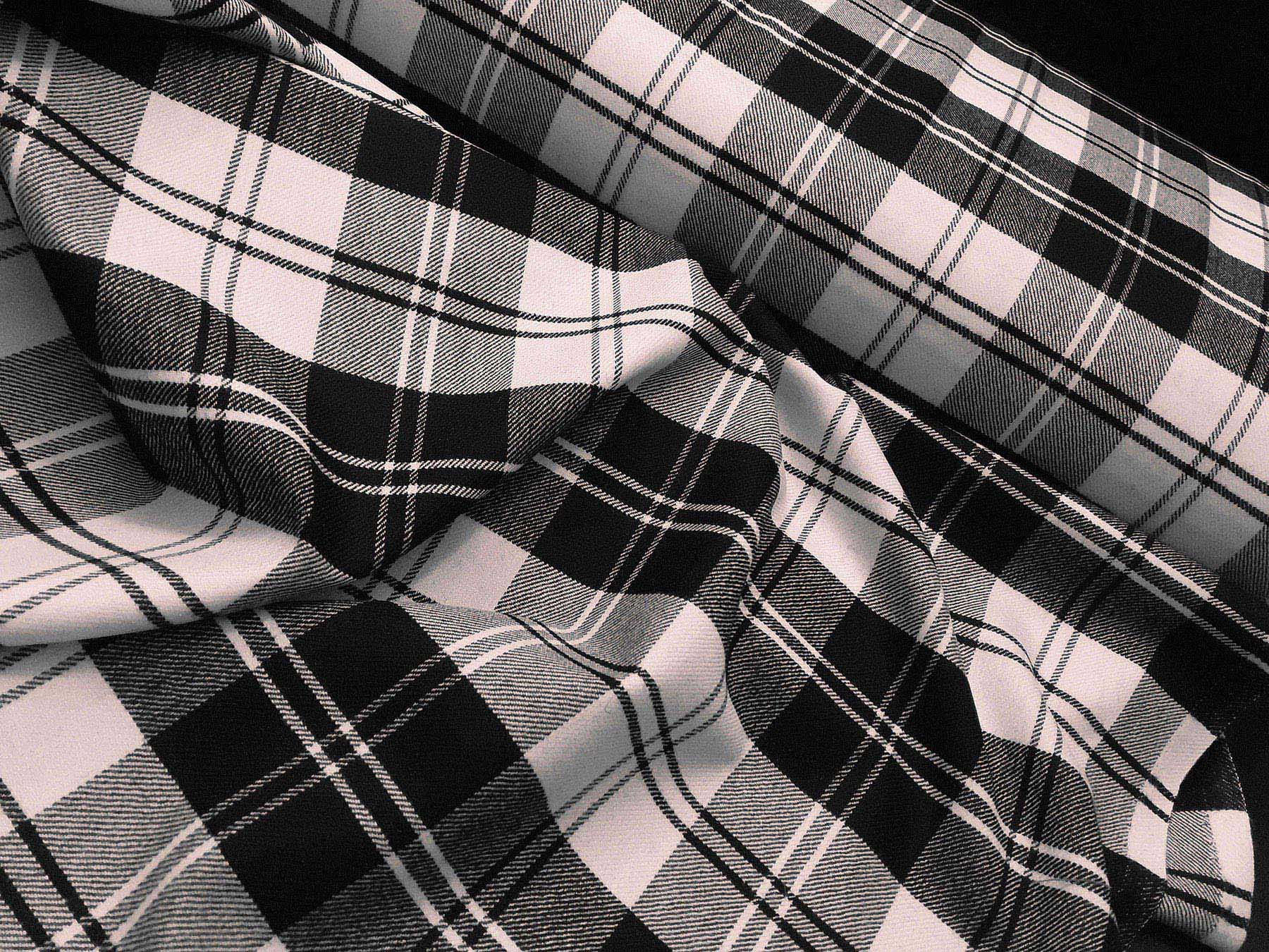 Tessuto disegno tartan bianco e nero