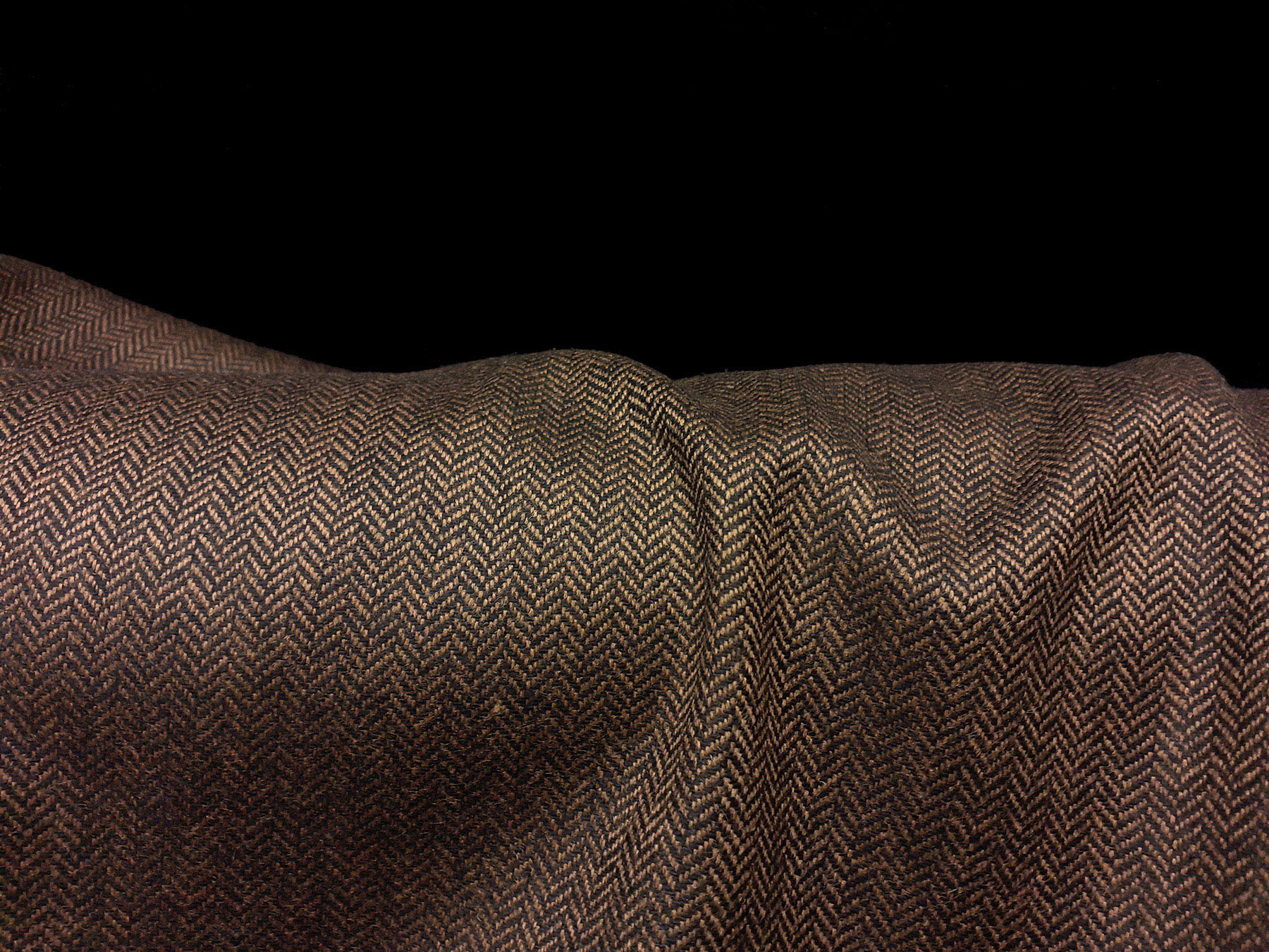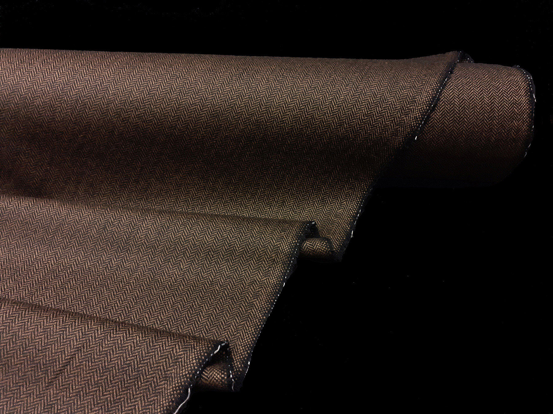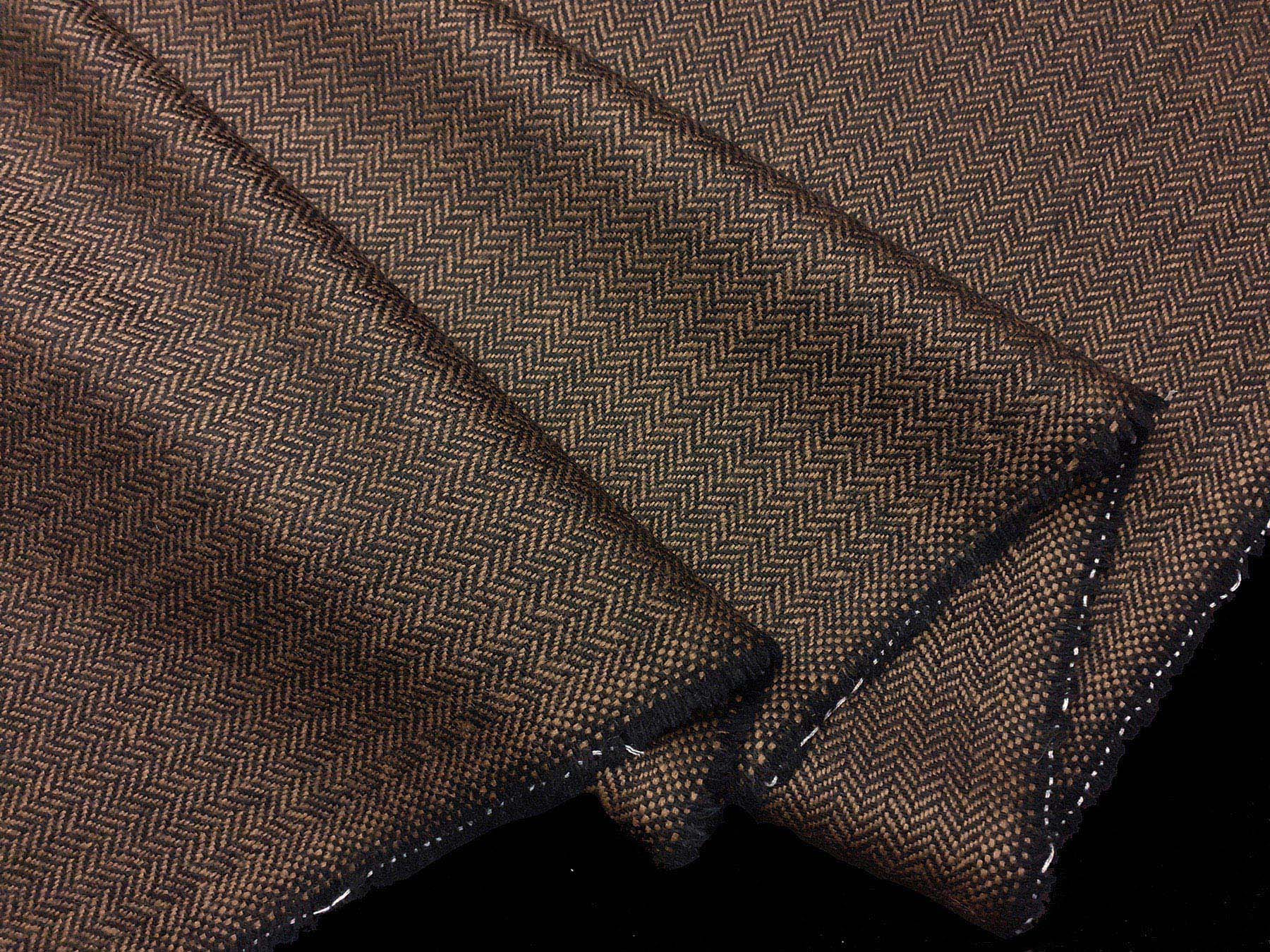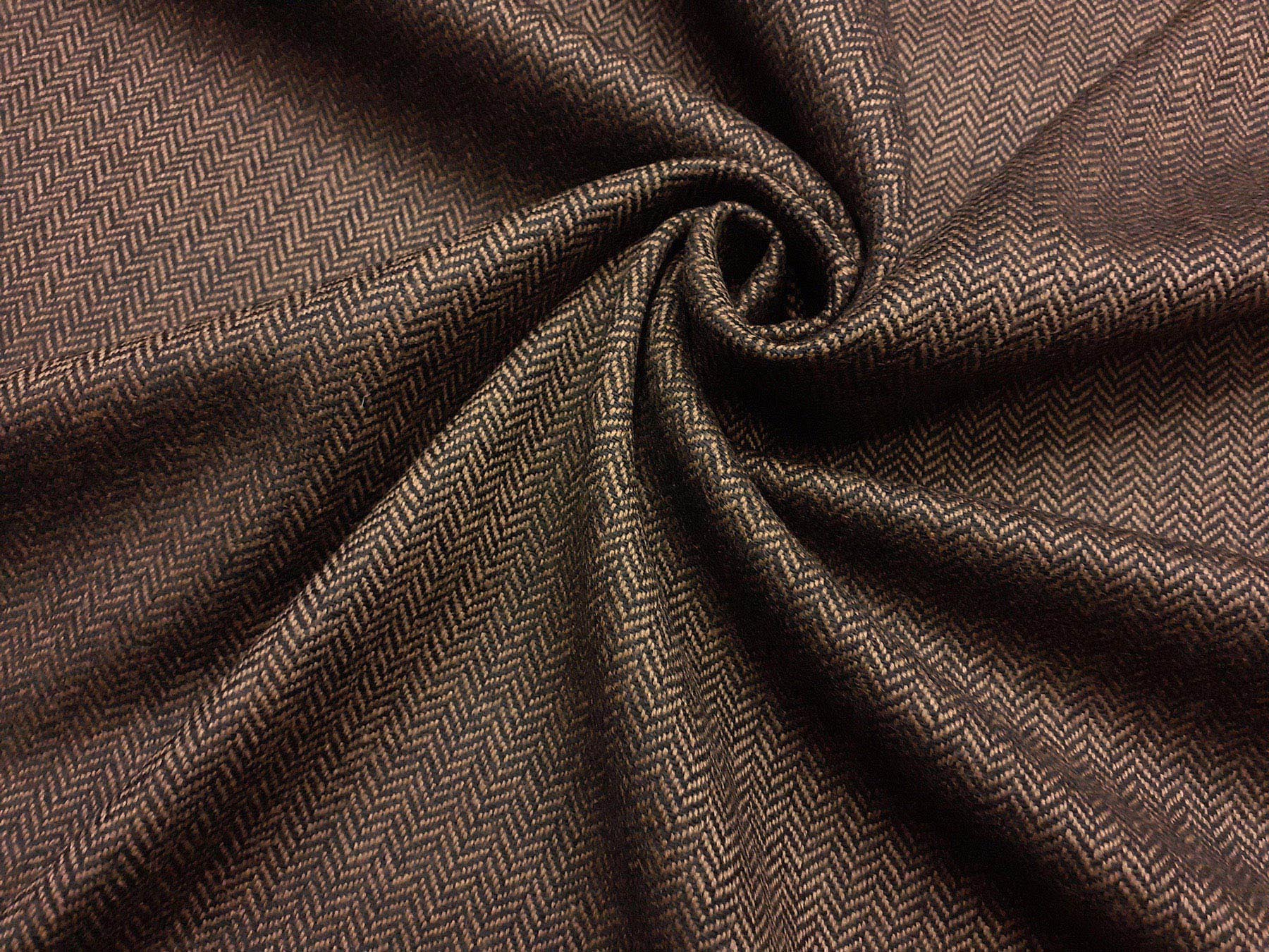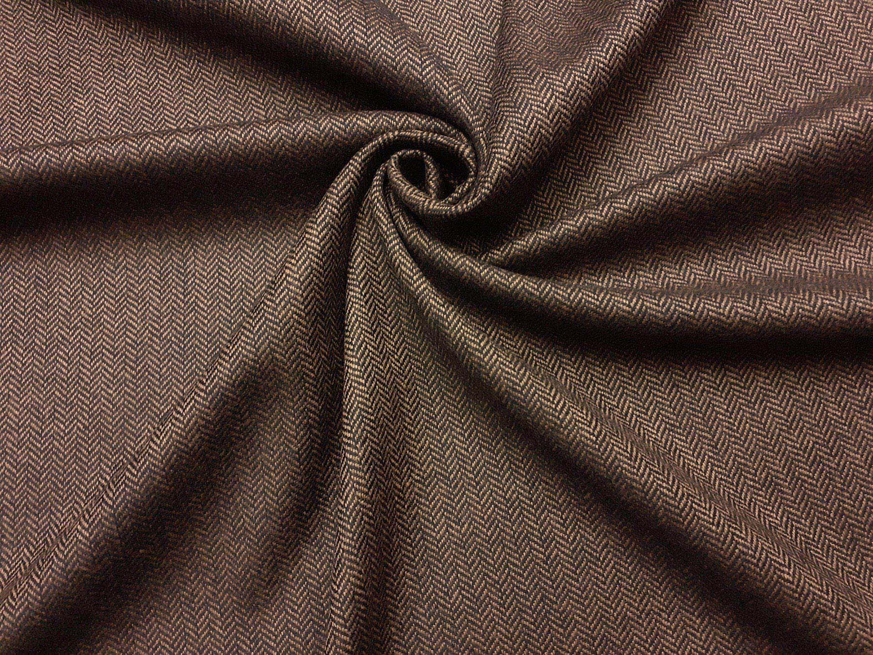 Tessuto in lana merino piccolo spigato nero e tinta rame