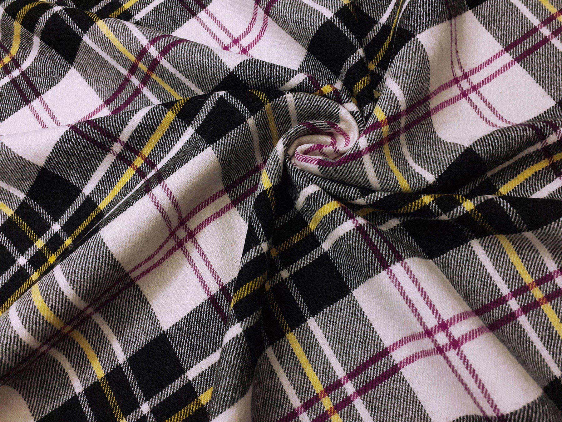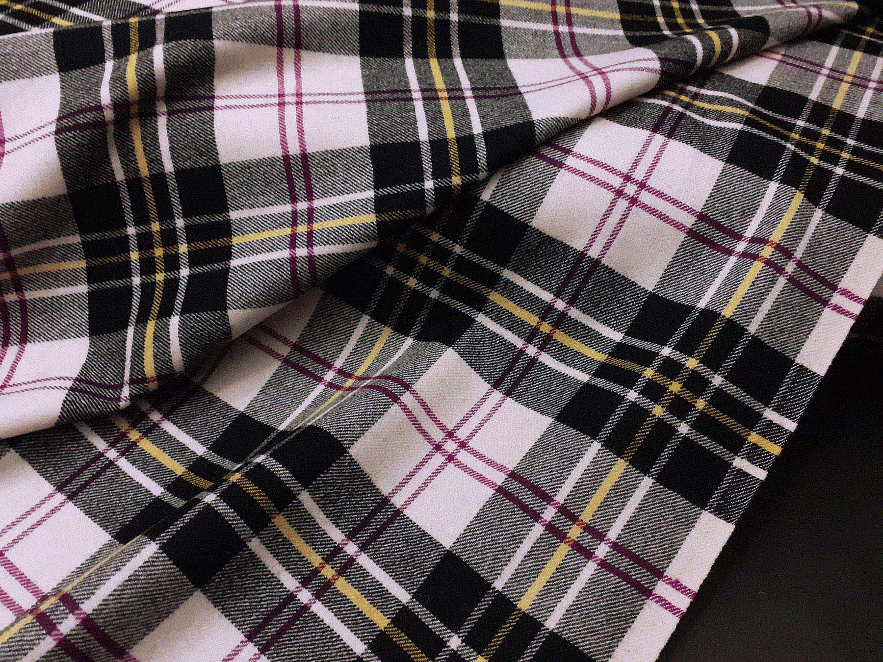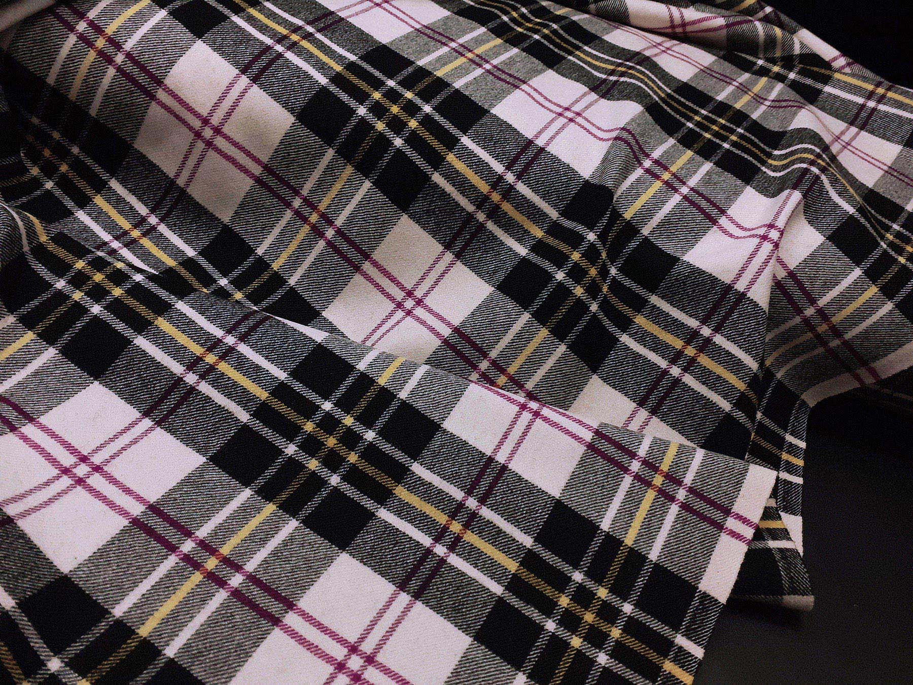 Classico tessuto tartan ad armatura Twill – la più utilizzata nei tessuti di drapperia per le caratteristiche di robustezza e versatilità – prodotto in Scozia in pura lana merino. Ha peso medio, mano calda e morbida, non si stropiccia e non si usura nel tempo. Consigliato per la realizzazione di capi spalla, pantaloni e gonne