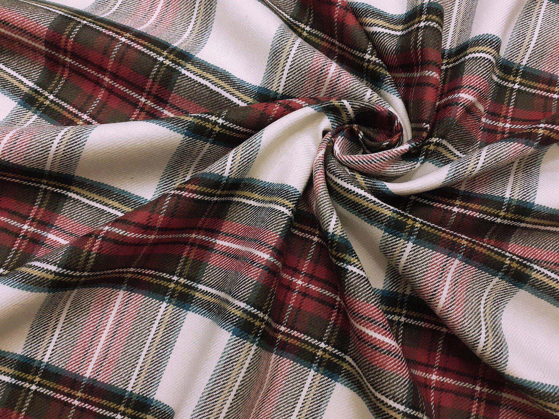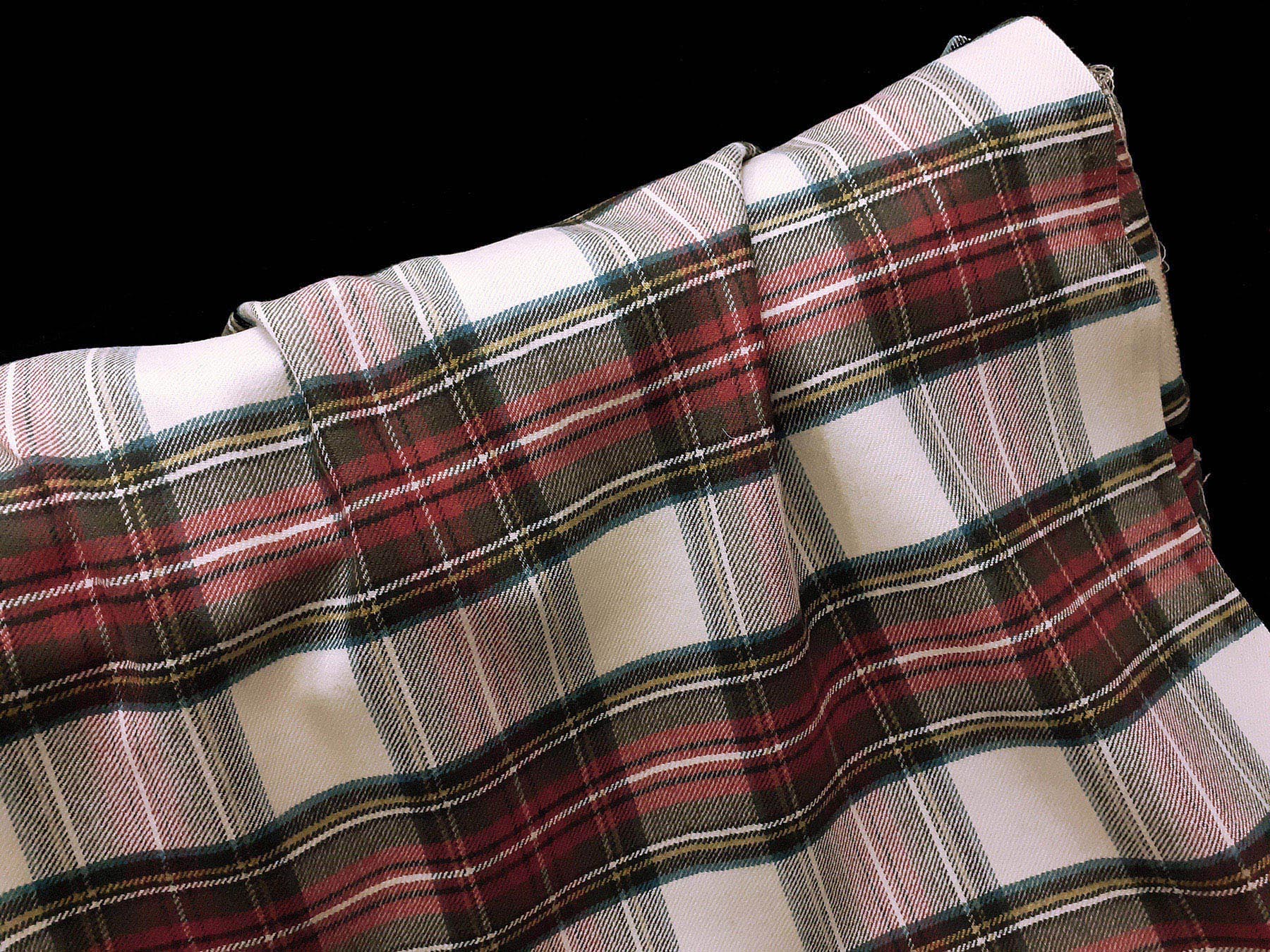 Classico tessuto tartan ad armatura Twill – la più utilizzata nei tessuti di drapperia per le caratteristiche di robustezza e versatilità – prodotto in Scozia in pura lana merino. Ha peso medio, mano calda e morbida, non si stropiccia e non si usura nel tempo. Consigliato per la realizzazione di capi spalla, pantaloni e gonne