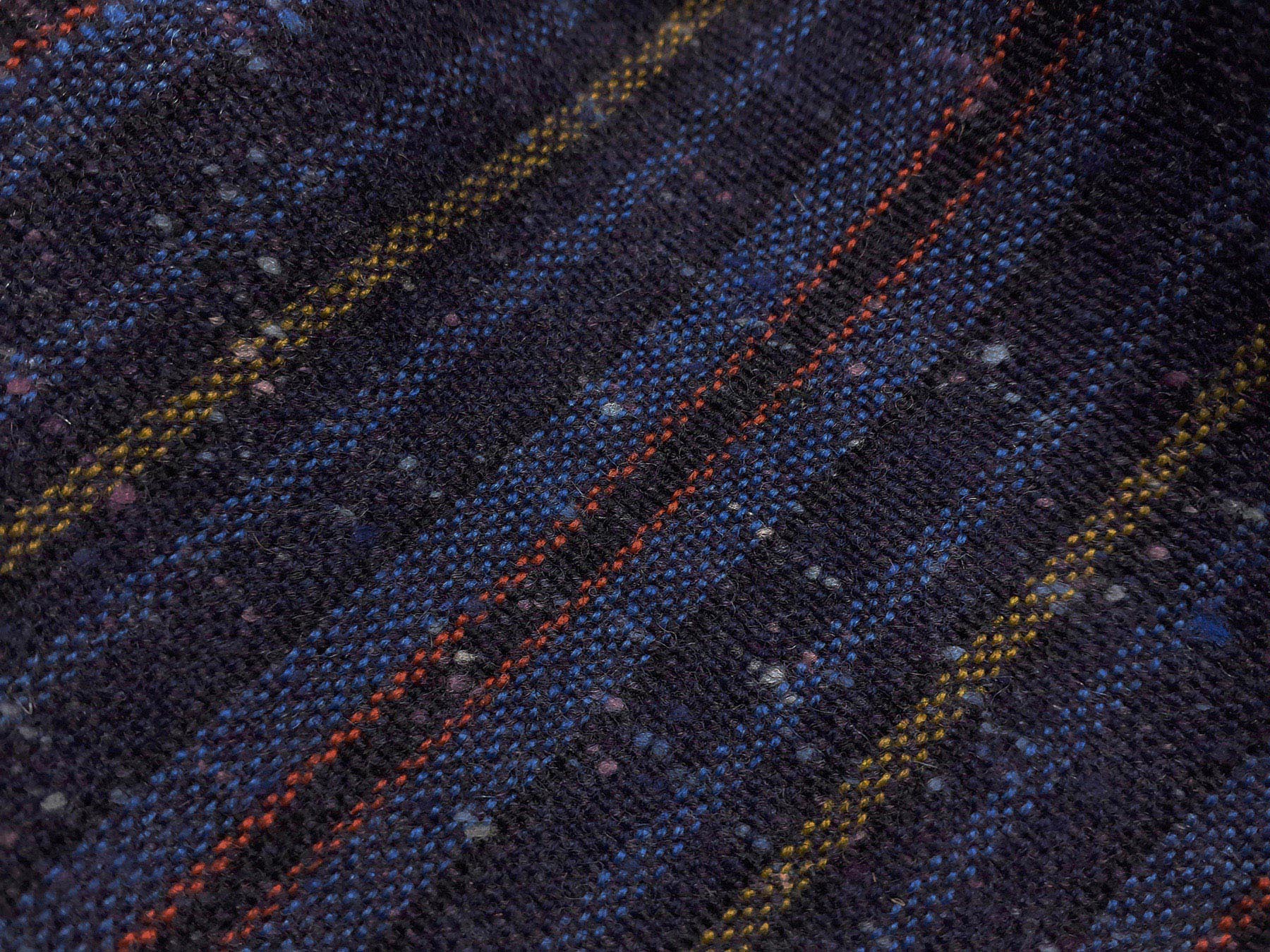 Questo Tweed Donegal, prodotto in Irlanda, ha la peculiare proprietà di mostrare sulla superficie del tessuto una serie di bottoncini di lana a colori contrastanti con il fondo e di essere rigorosamente intrecciato in armatura tela. Di peso medio viene usato come tessuto invernale per realizzare capi spalla, gonne e abiti.