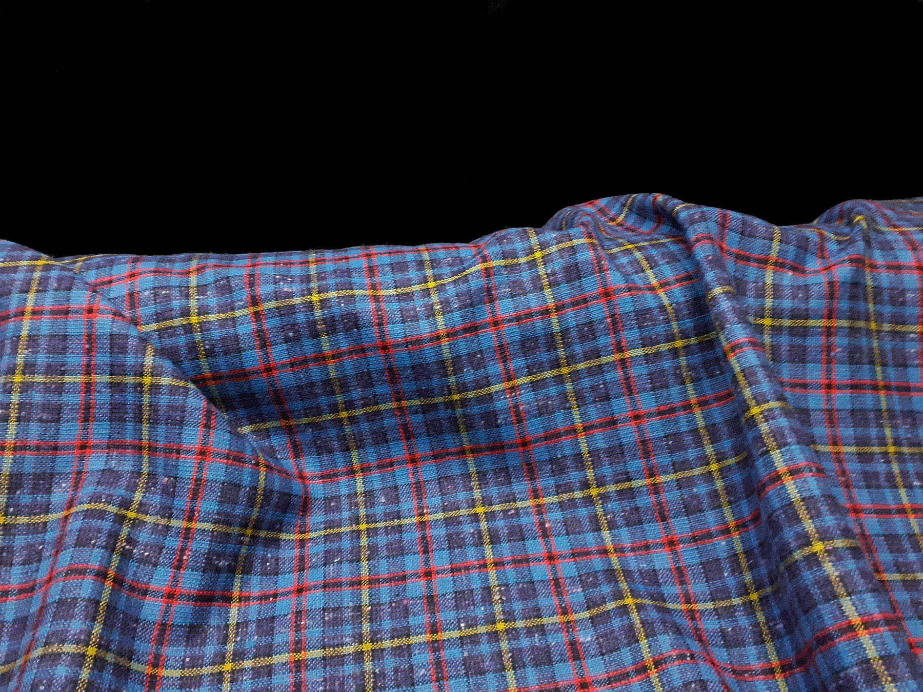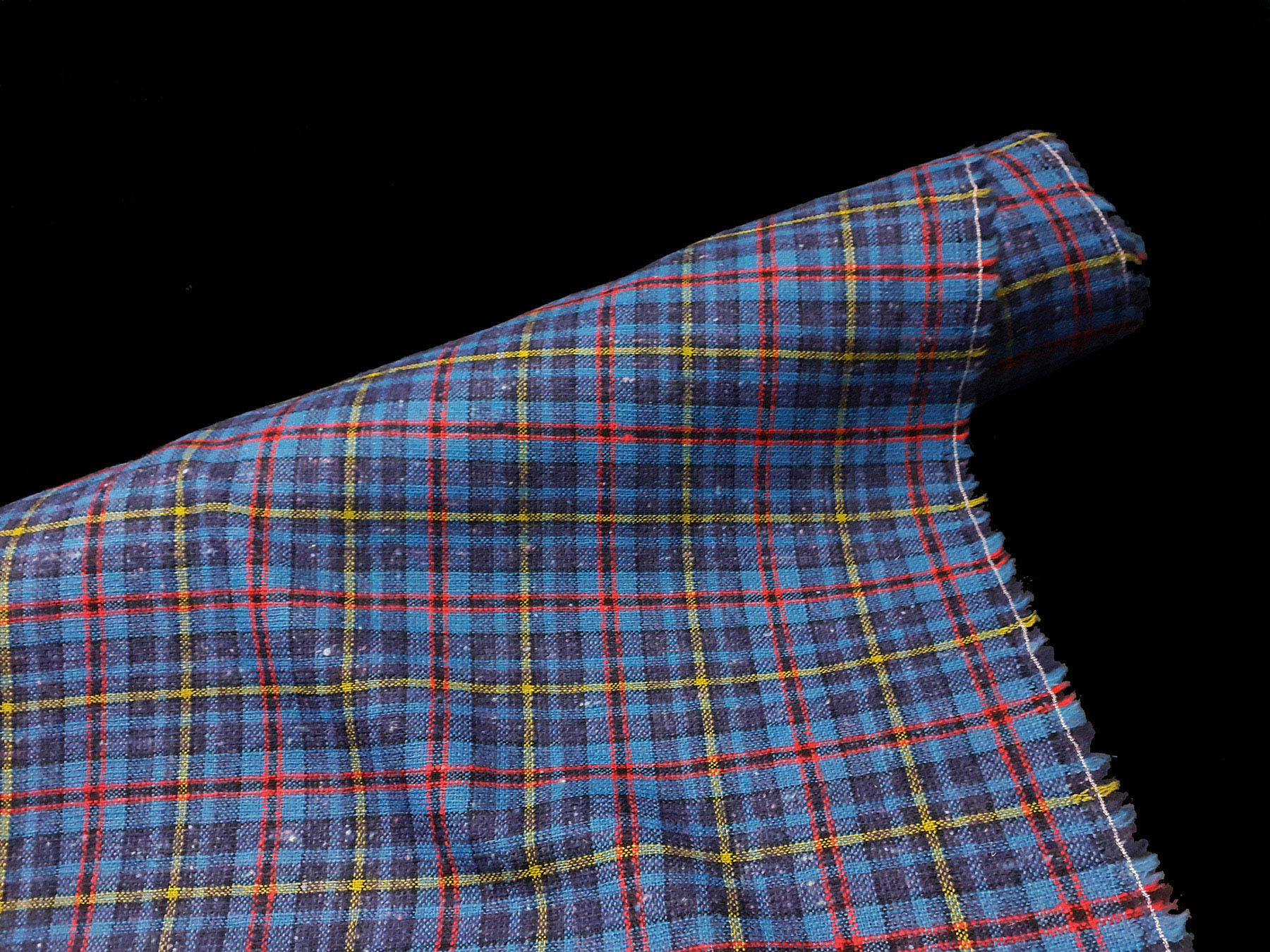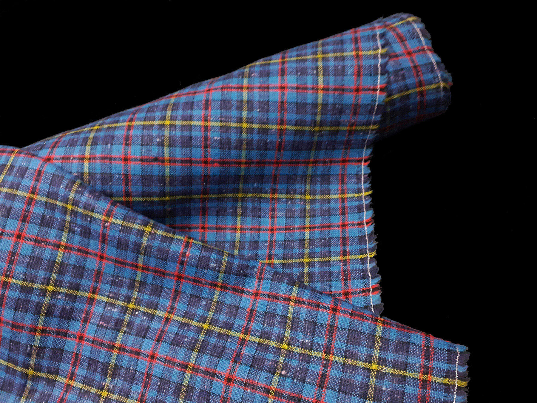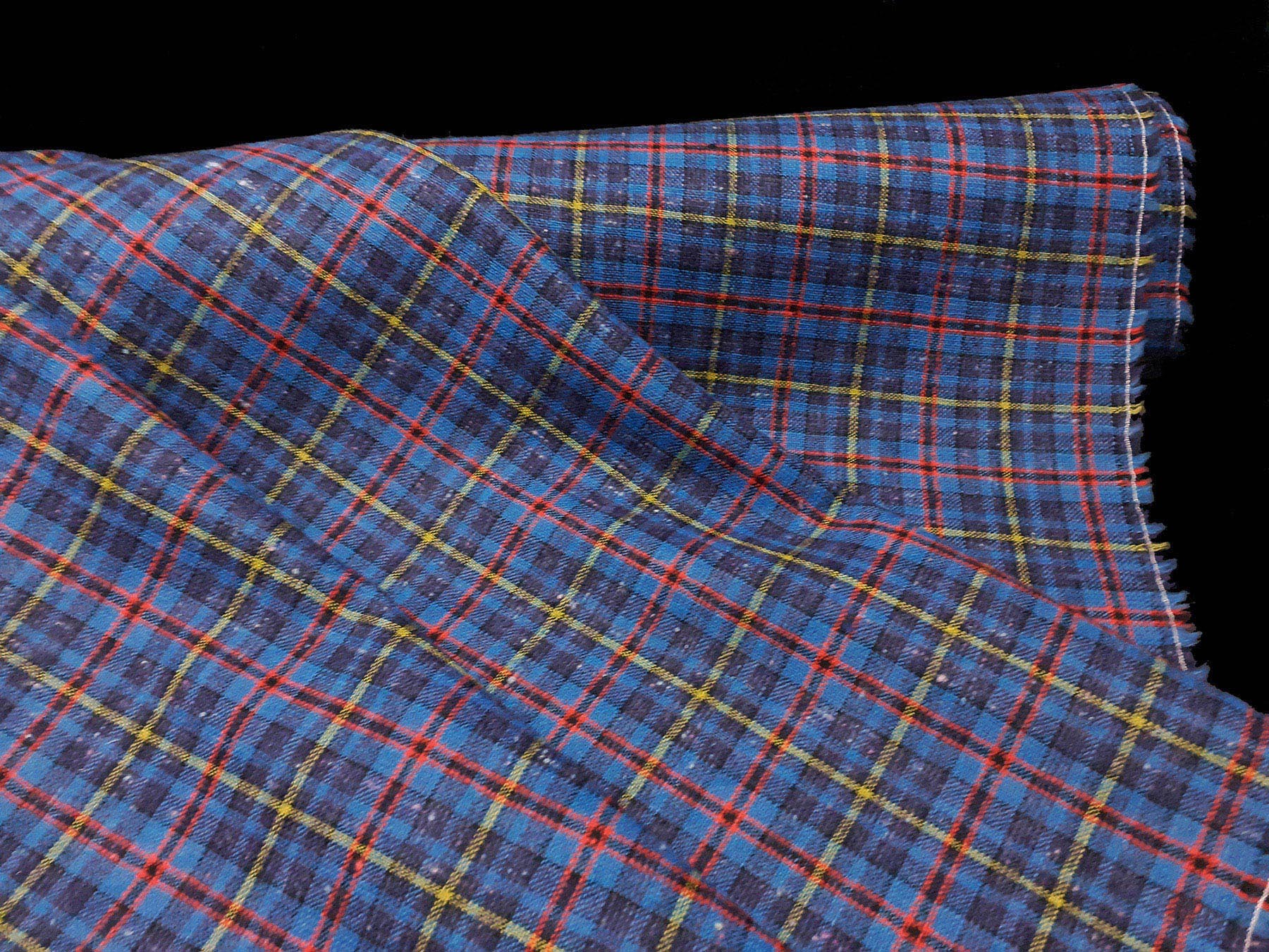 Tweed Donegal in lana disegno scozzese su fondo azzurro