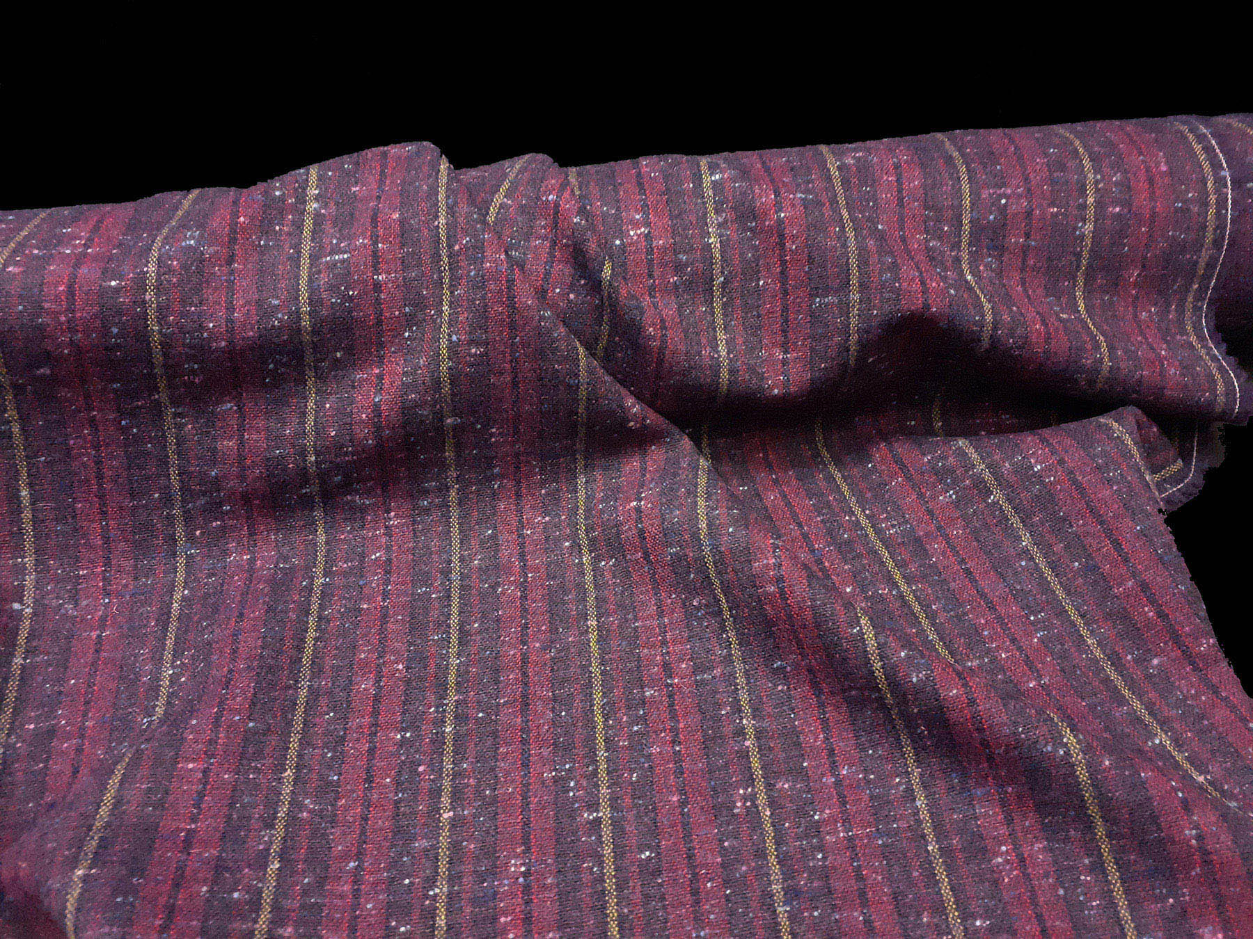 Tweed Donegal in lana a righe rosso e melanzana