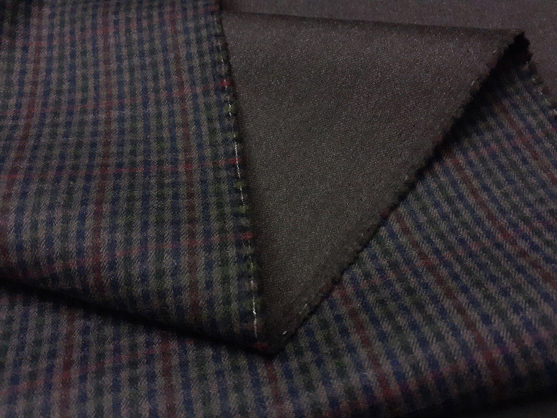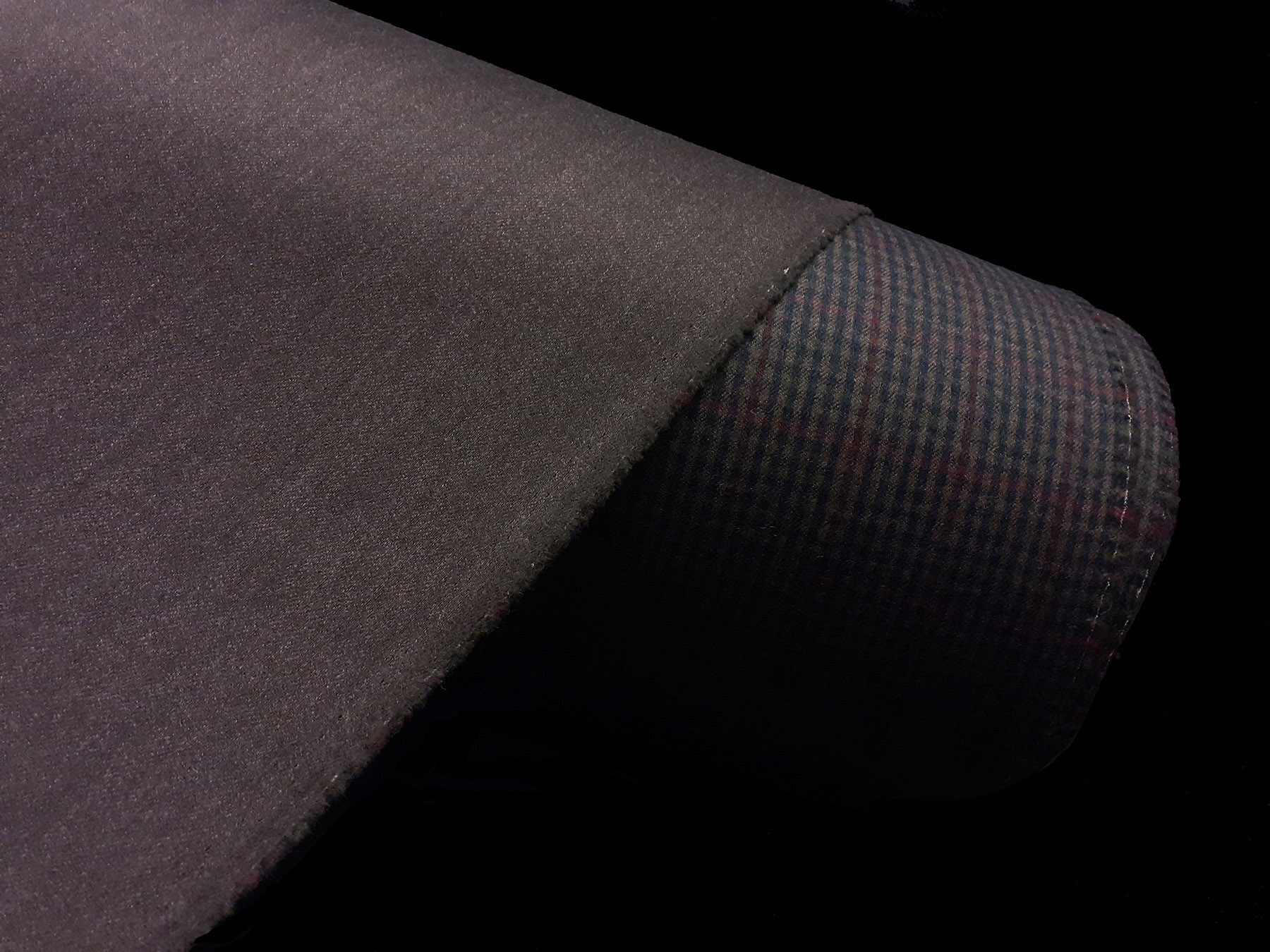 Flanella double in lana e cashmere a quadretti e marrone melange il lato unito
