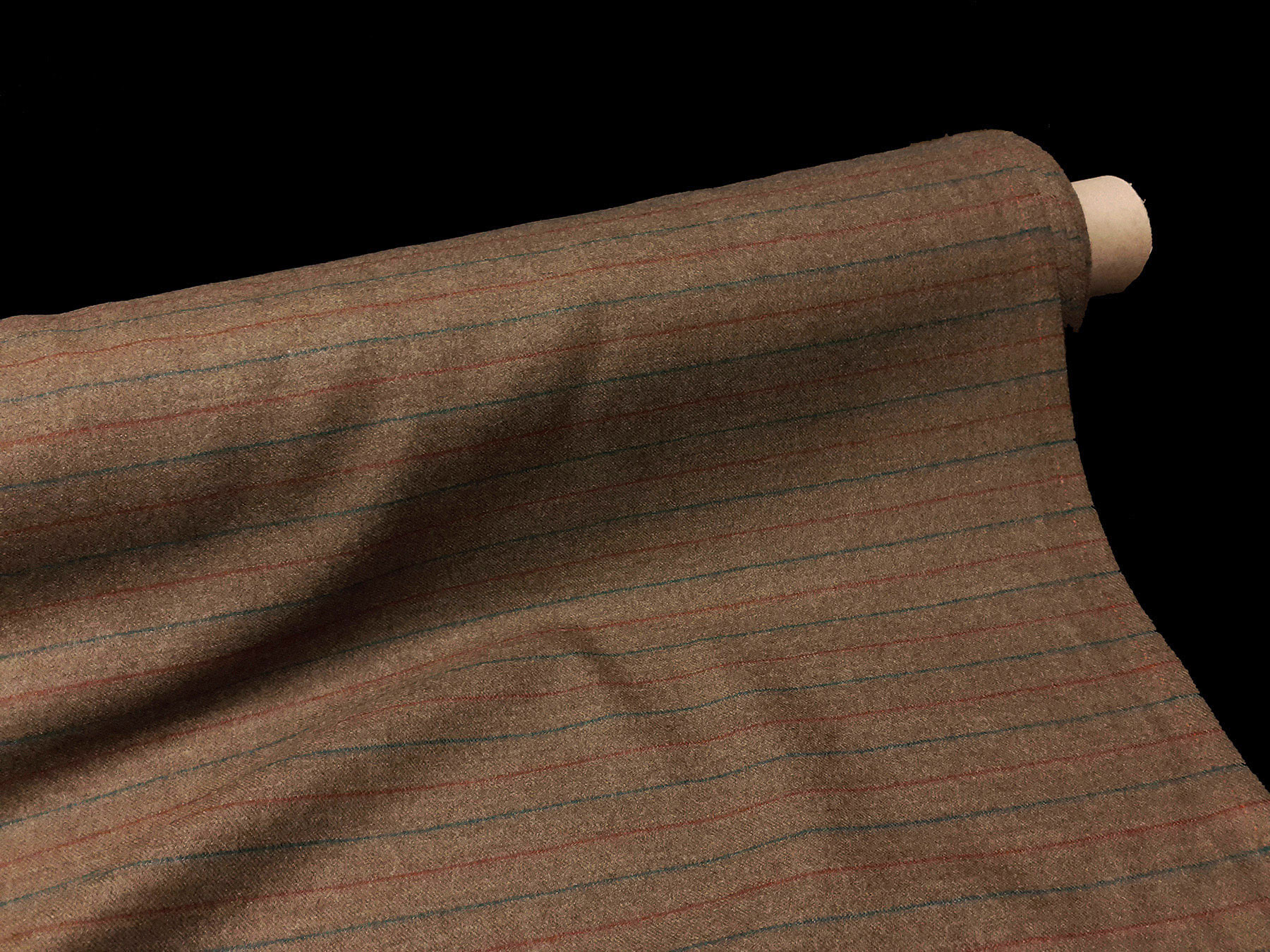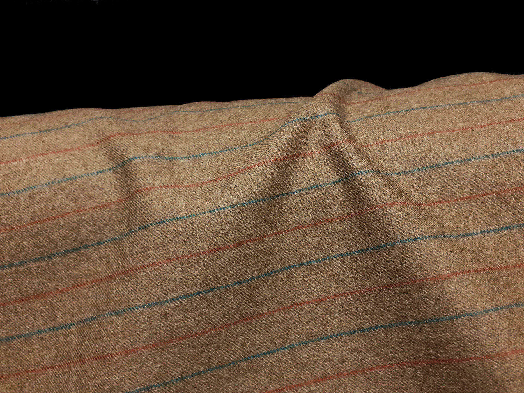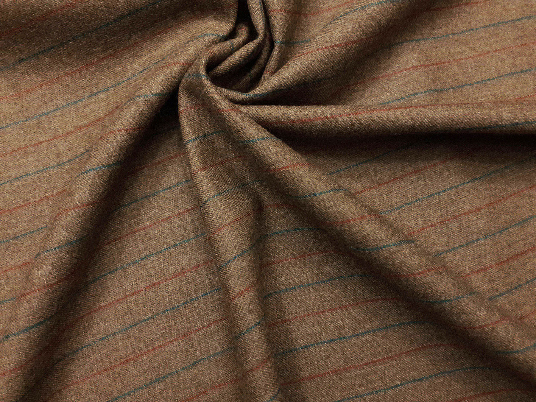 Flanella in lana merino righe multicolori su fondo tinta cammello melange