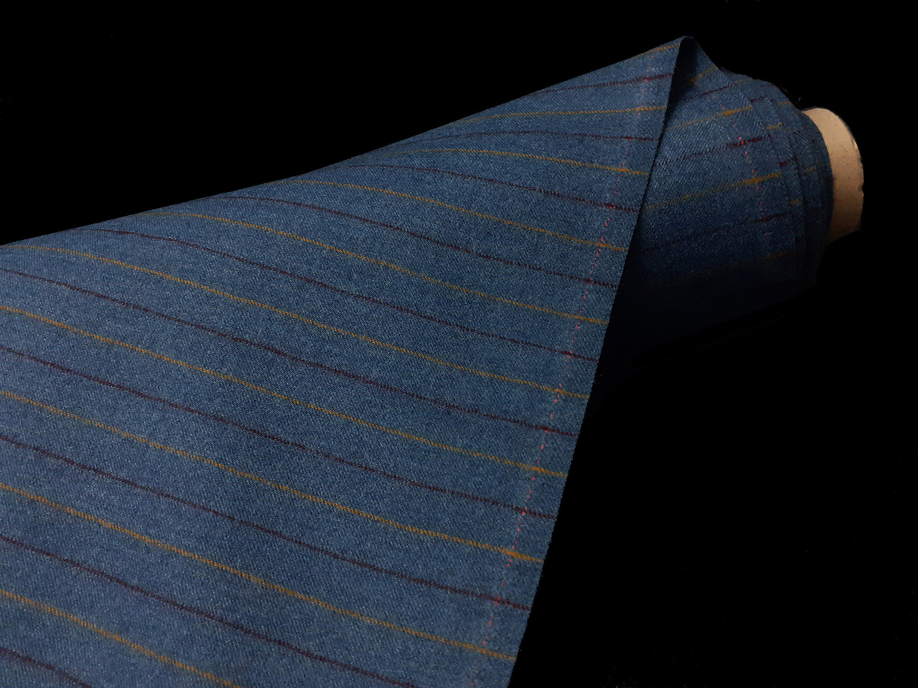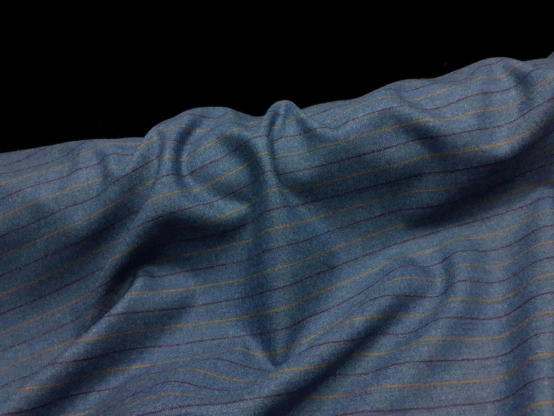 Flanella in lana merino righe multicolori su fondo grigio azzurro melange
