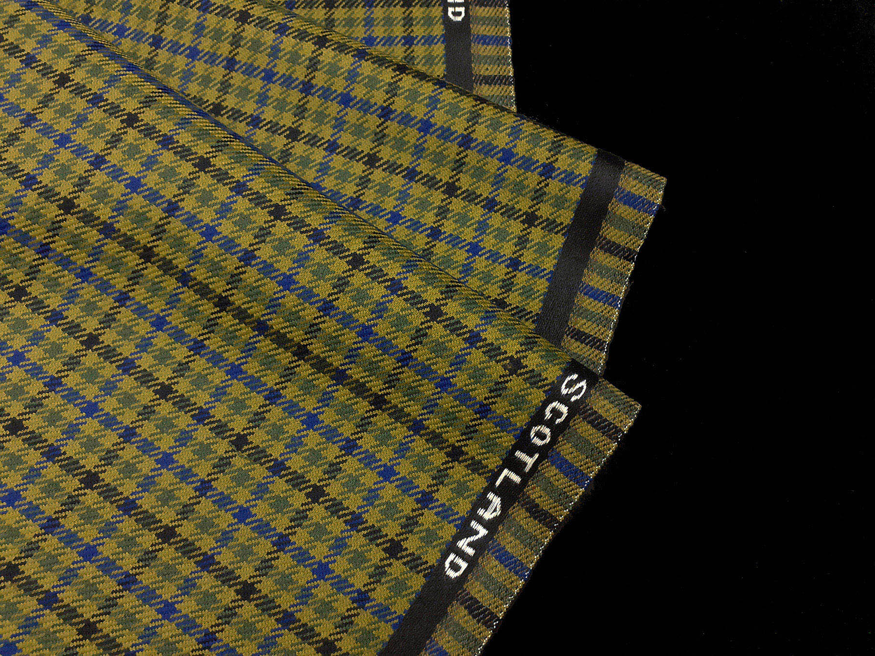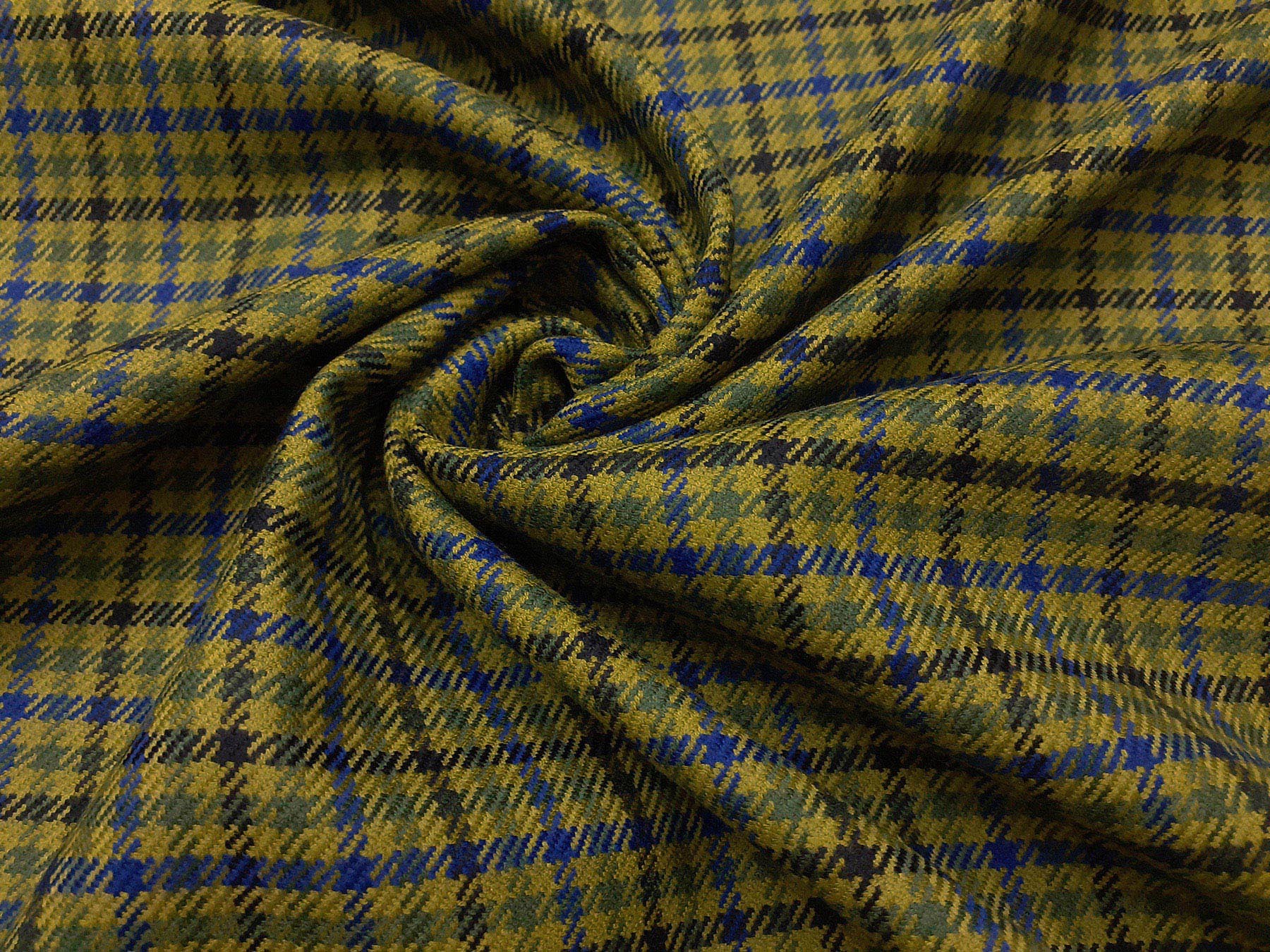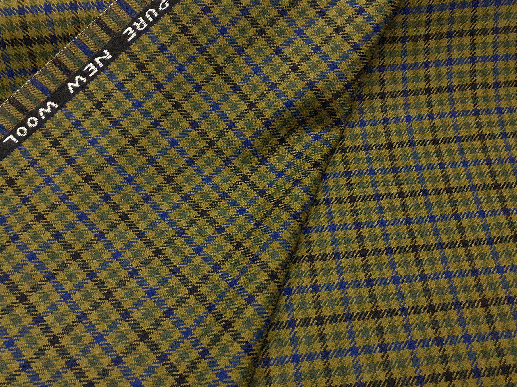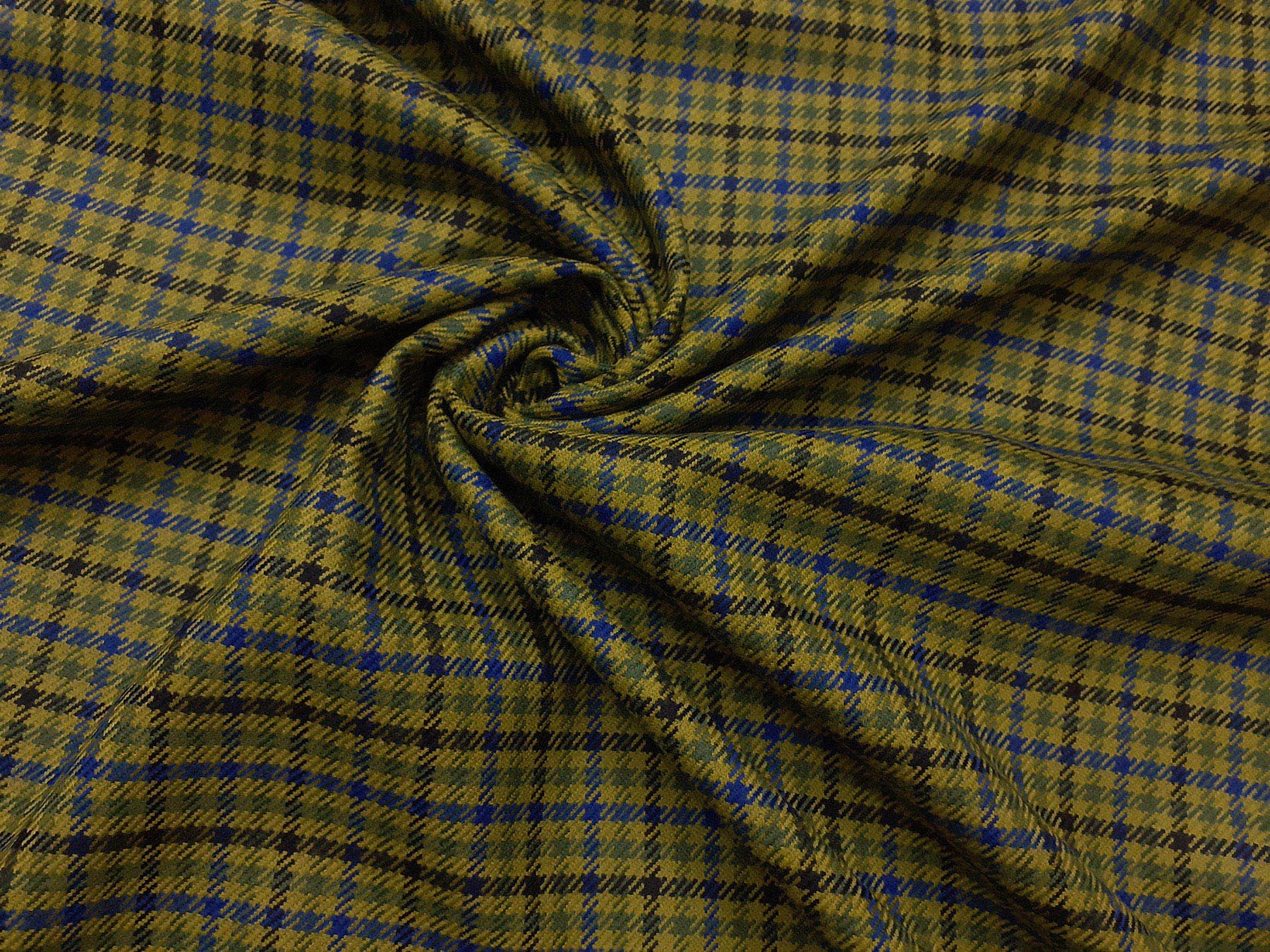 Tessuto prodotto in Scozia in lana merino pied de poule verde pistacchio,verde salvia e blu
