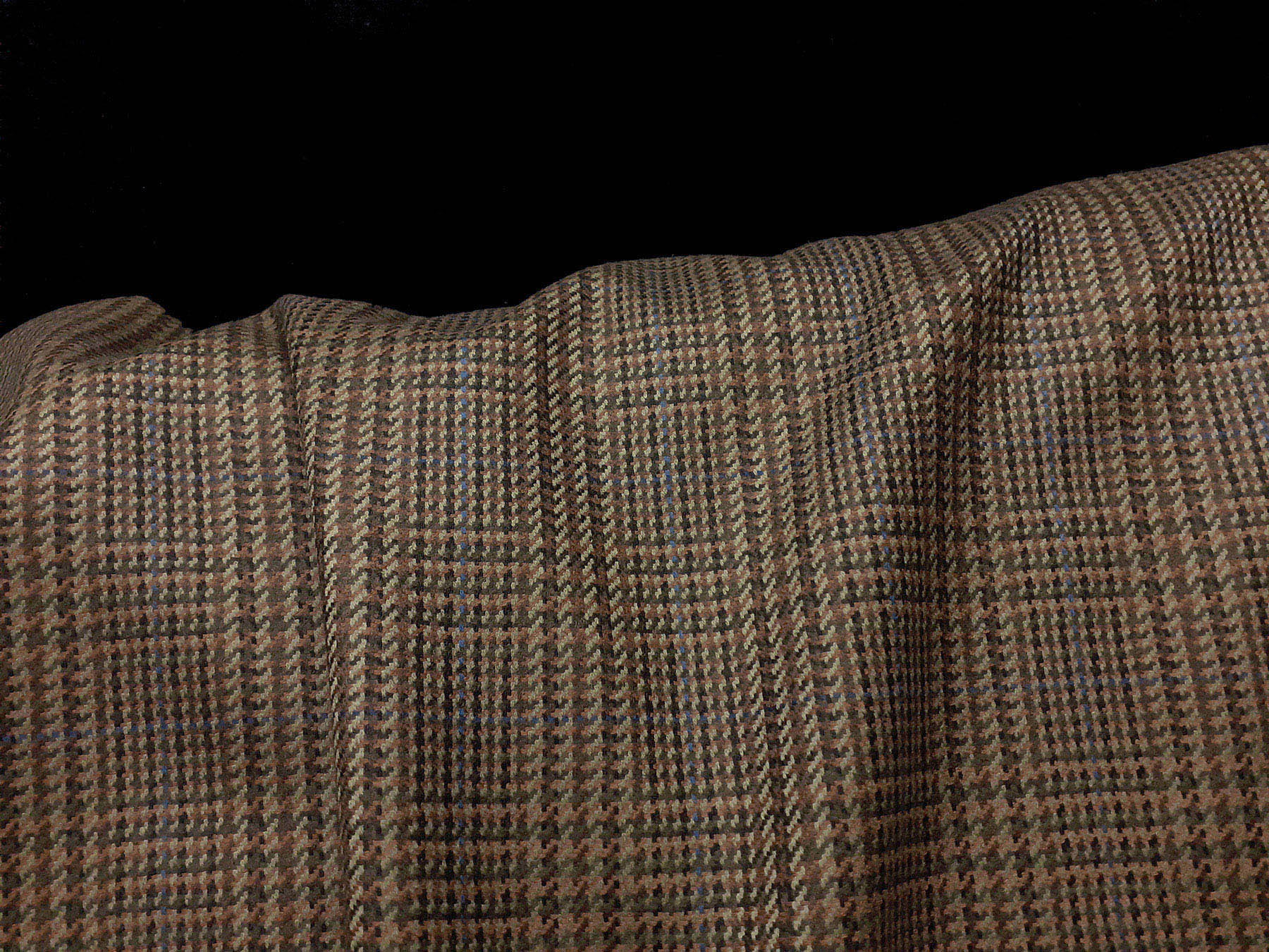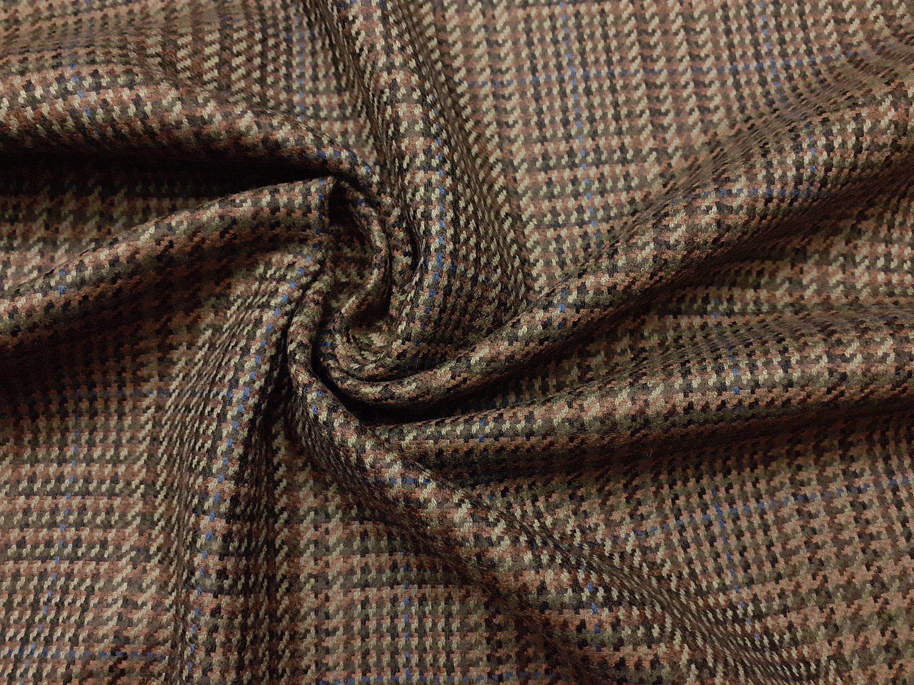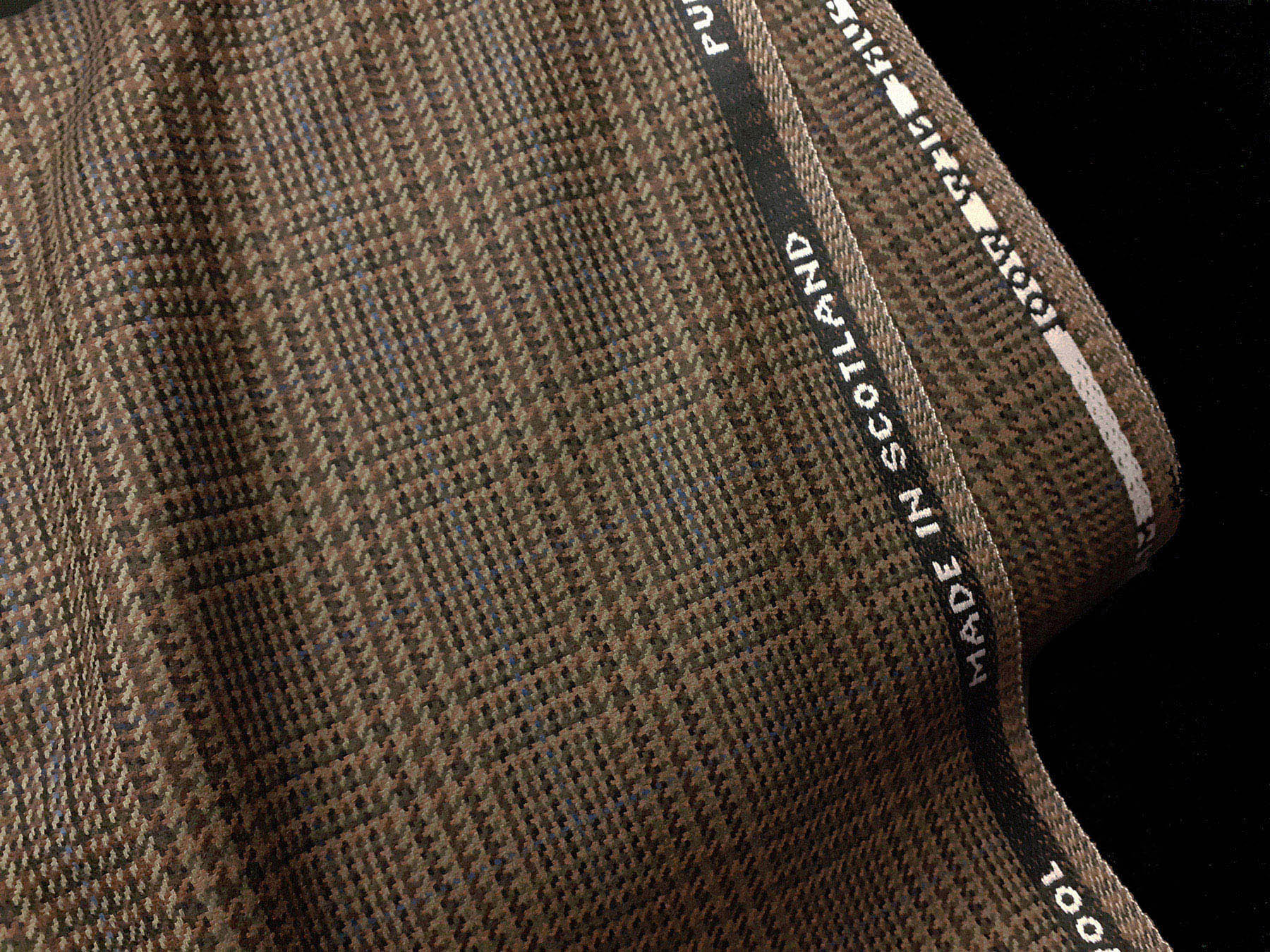 Tessuto prodotto in Scozia in lana merino Principe di Galles verde sottobosco e nocciola