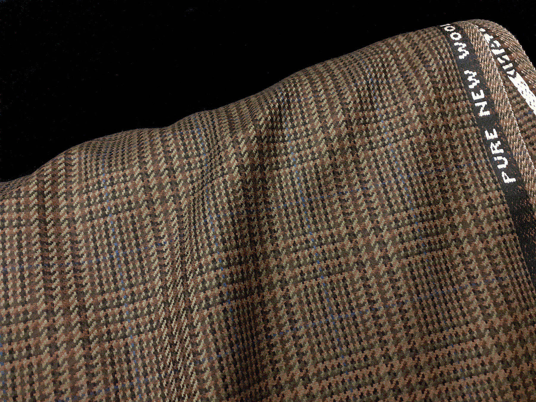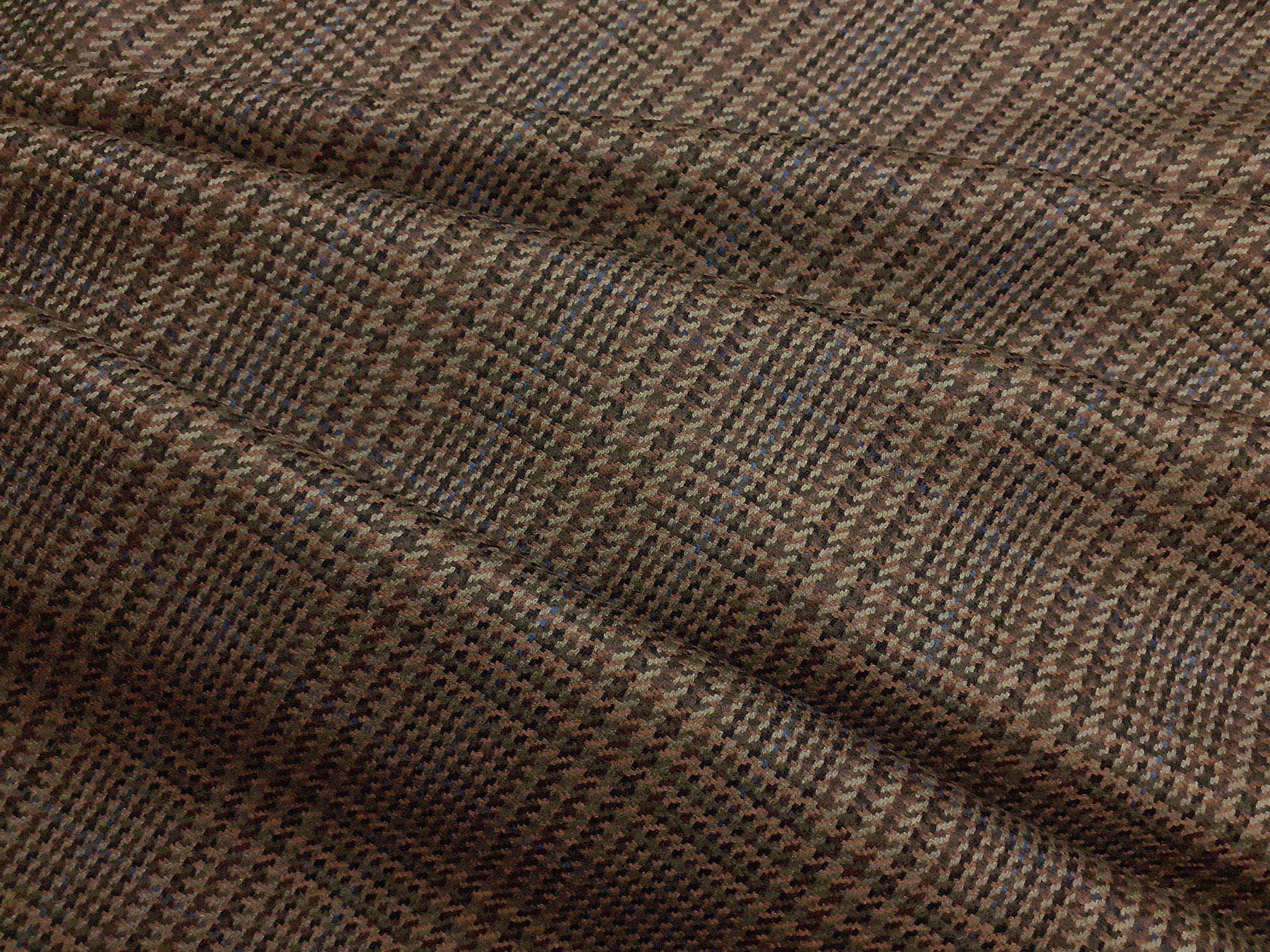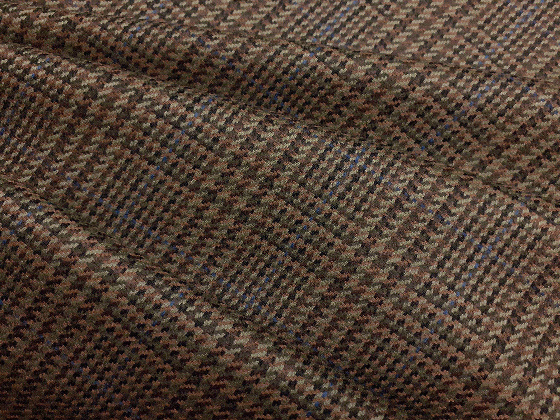 Tessuto prodotto in Scozia in lana merino Principe di Galles verde sottobosco e nocciola