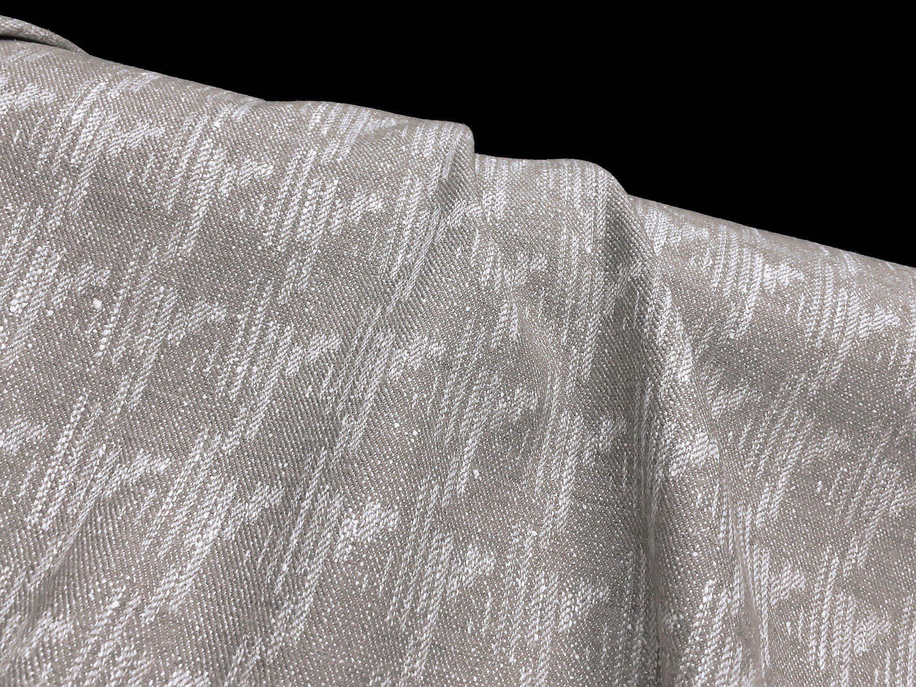 In questo tessuto di pura lana prodotto da Zegna Ermenegildo la lavorazione jacquard, con il contrasto fra lucido e opaco, crea un piacevole effetto di tridimensionalità. Di peso elevato ha mano calda e compatta ed è adatto per realizzare capi spalla invernali e pantaloni.