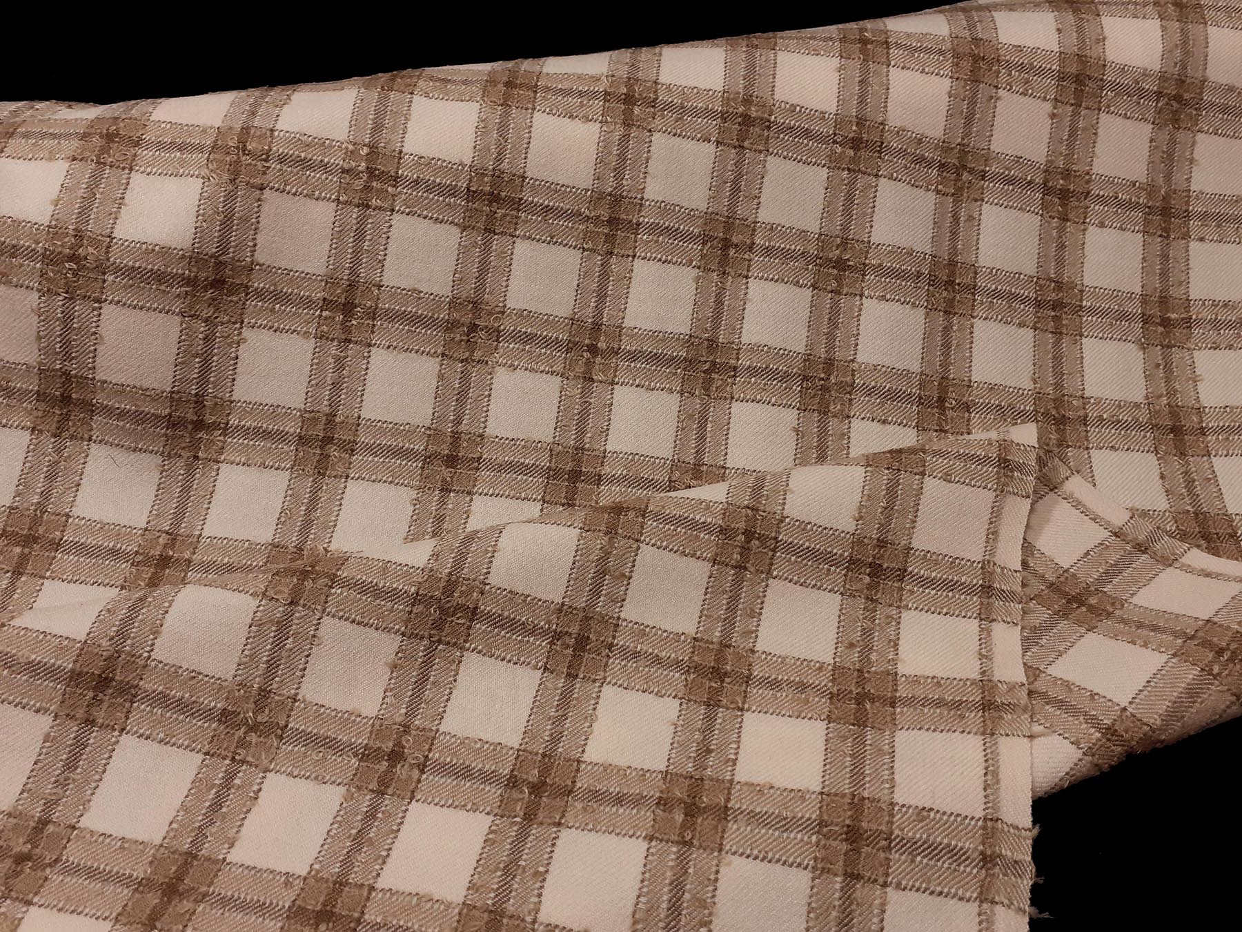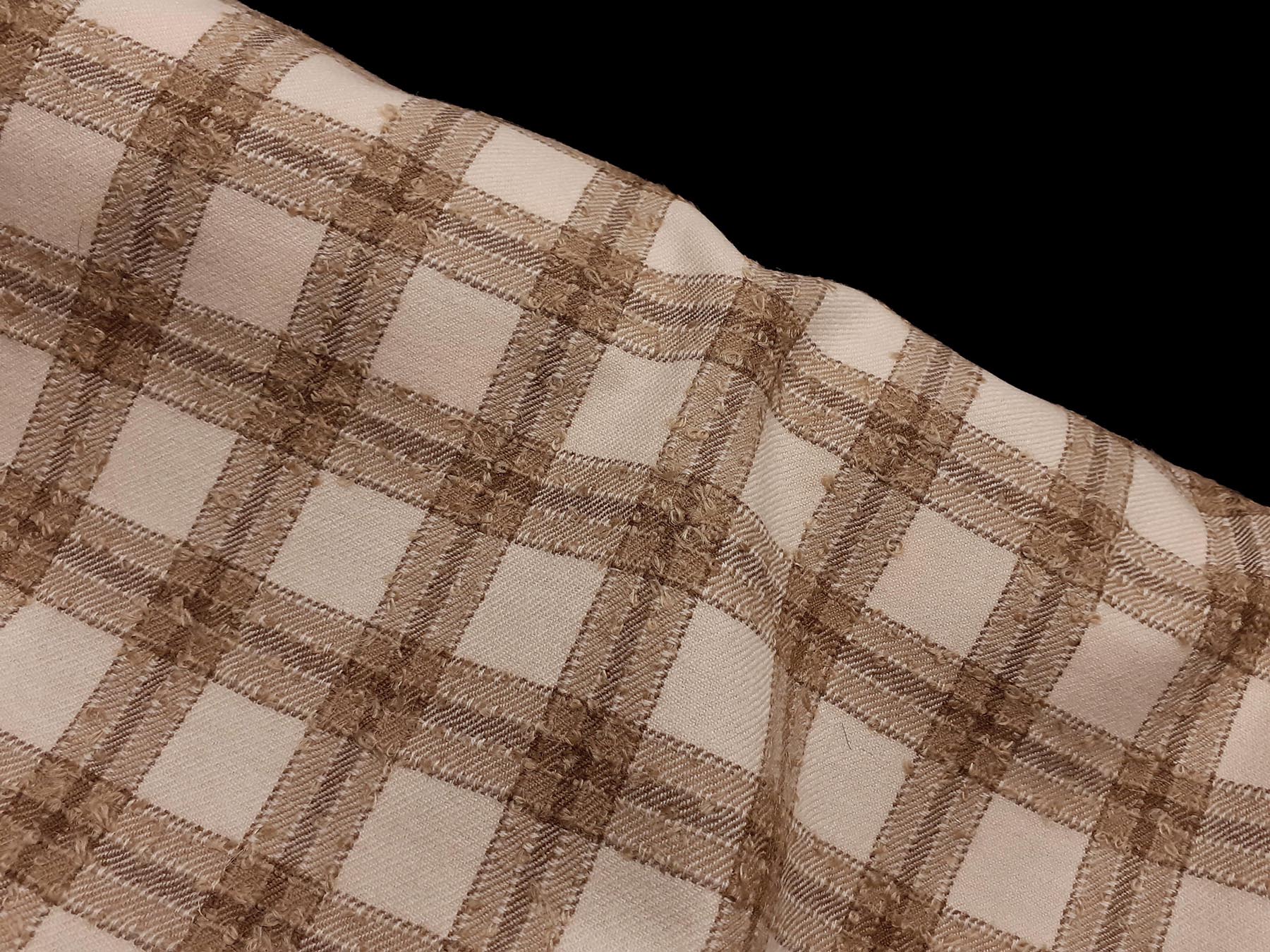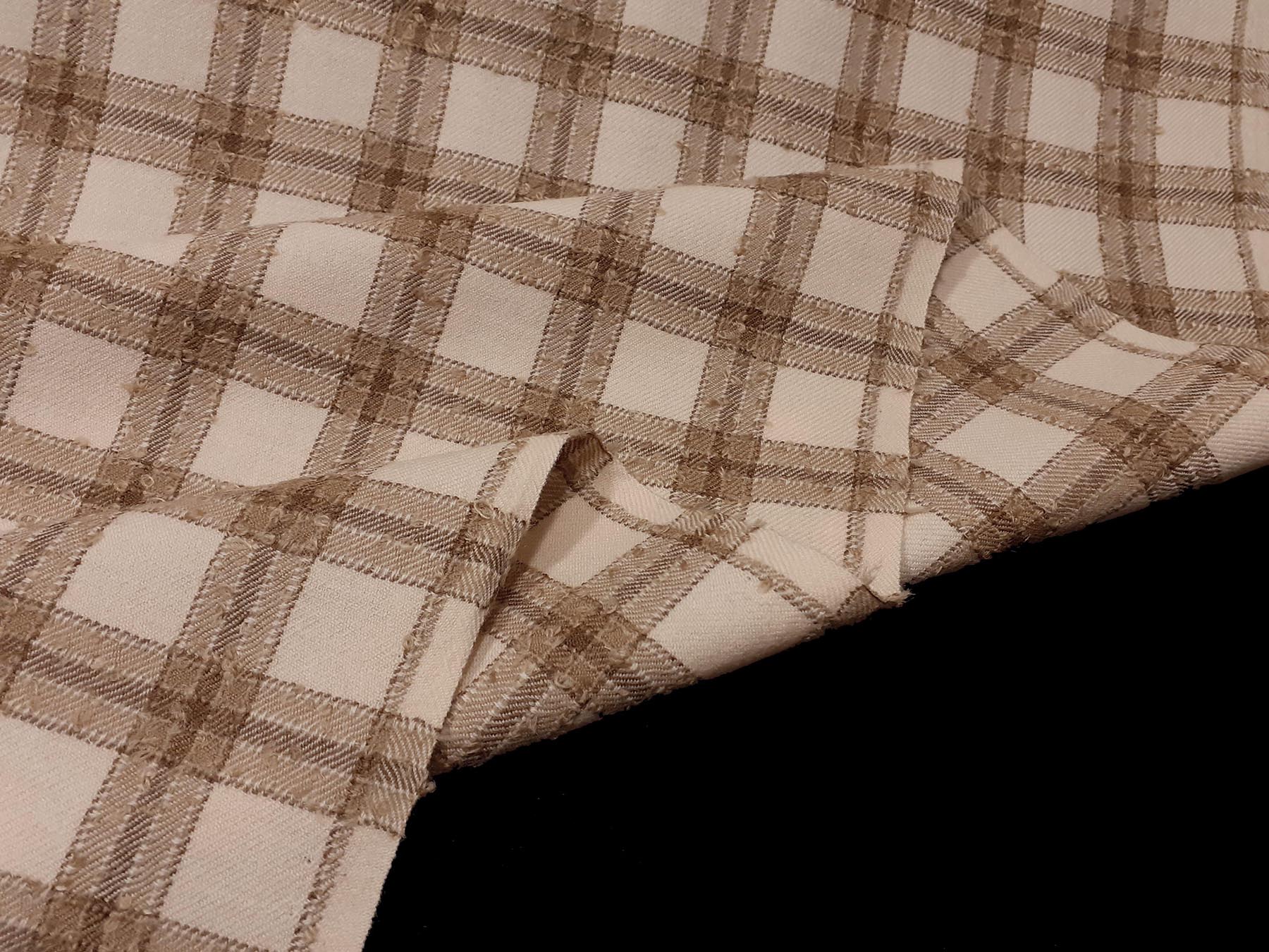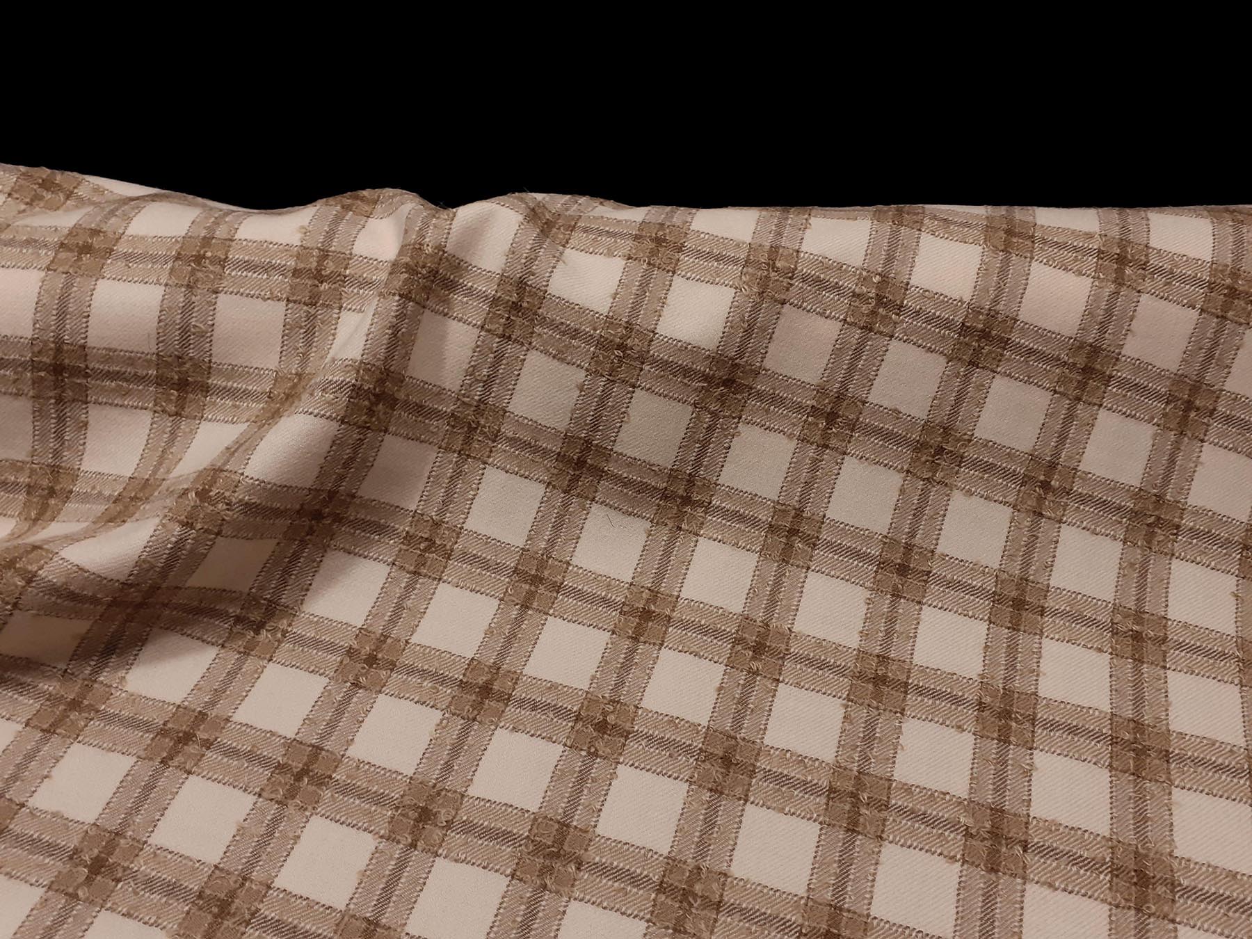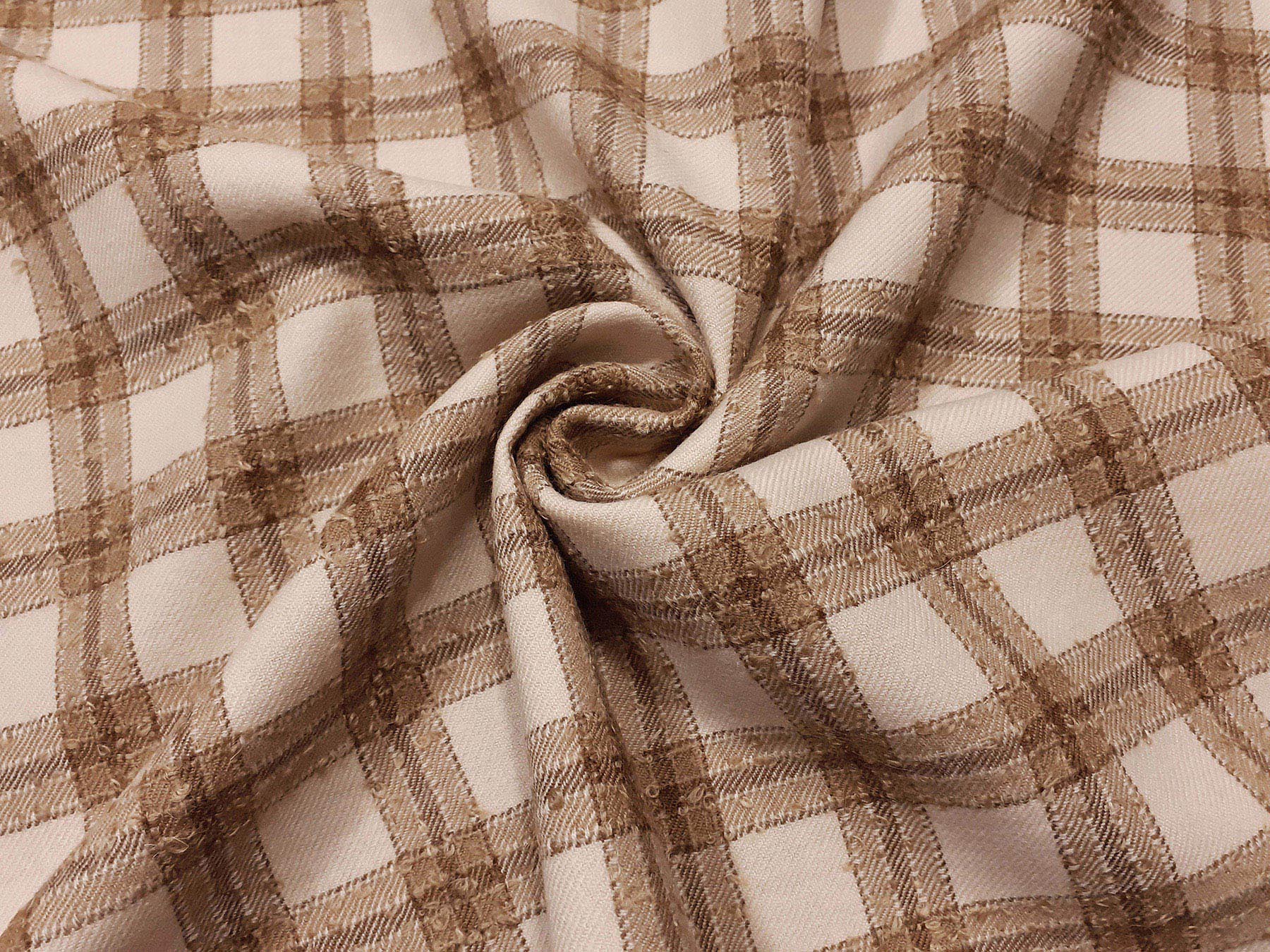 Tessuto in lana merino quadretti beige e avorio bouclè