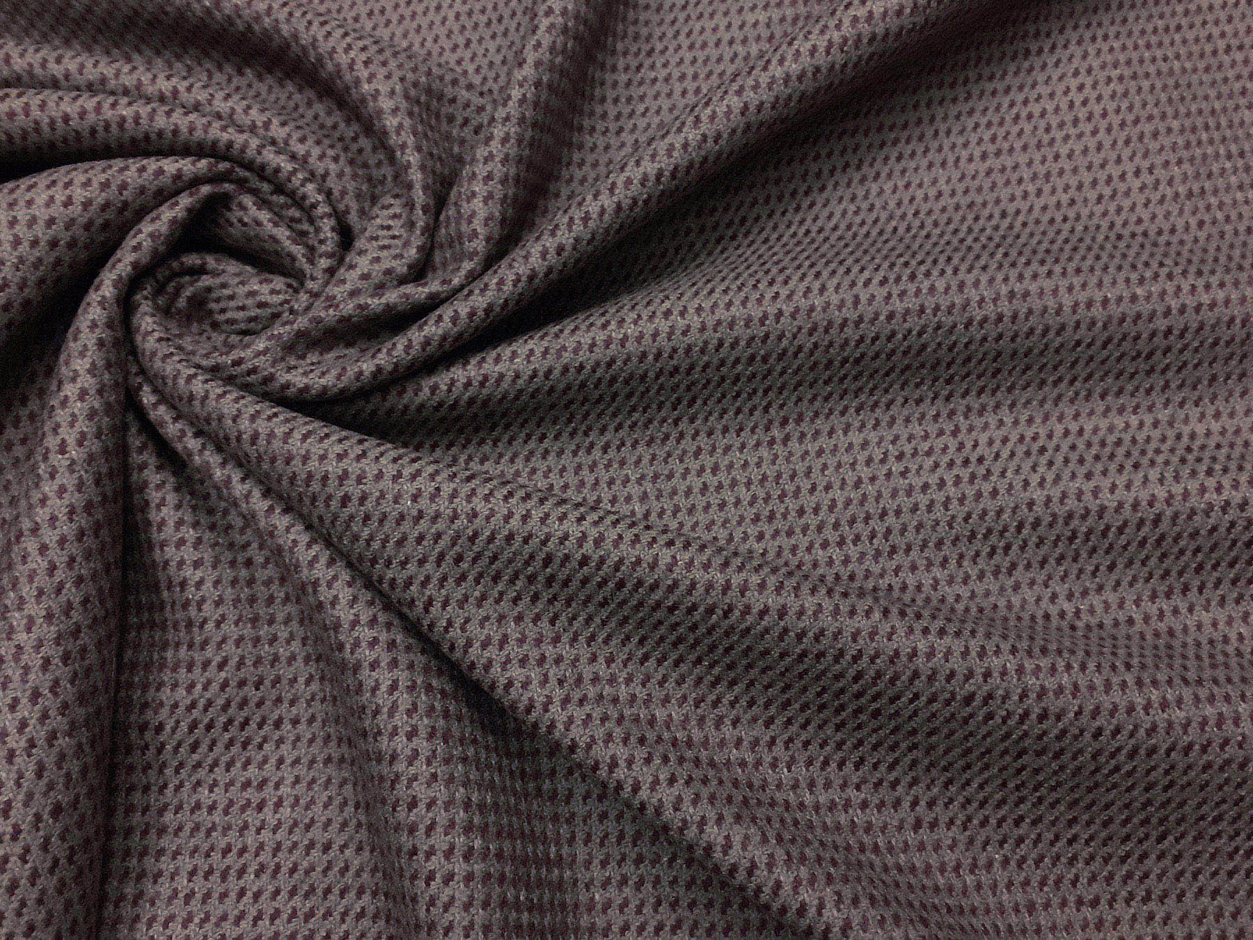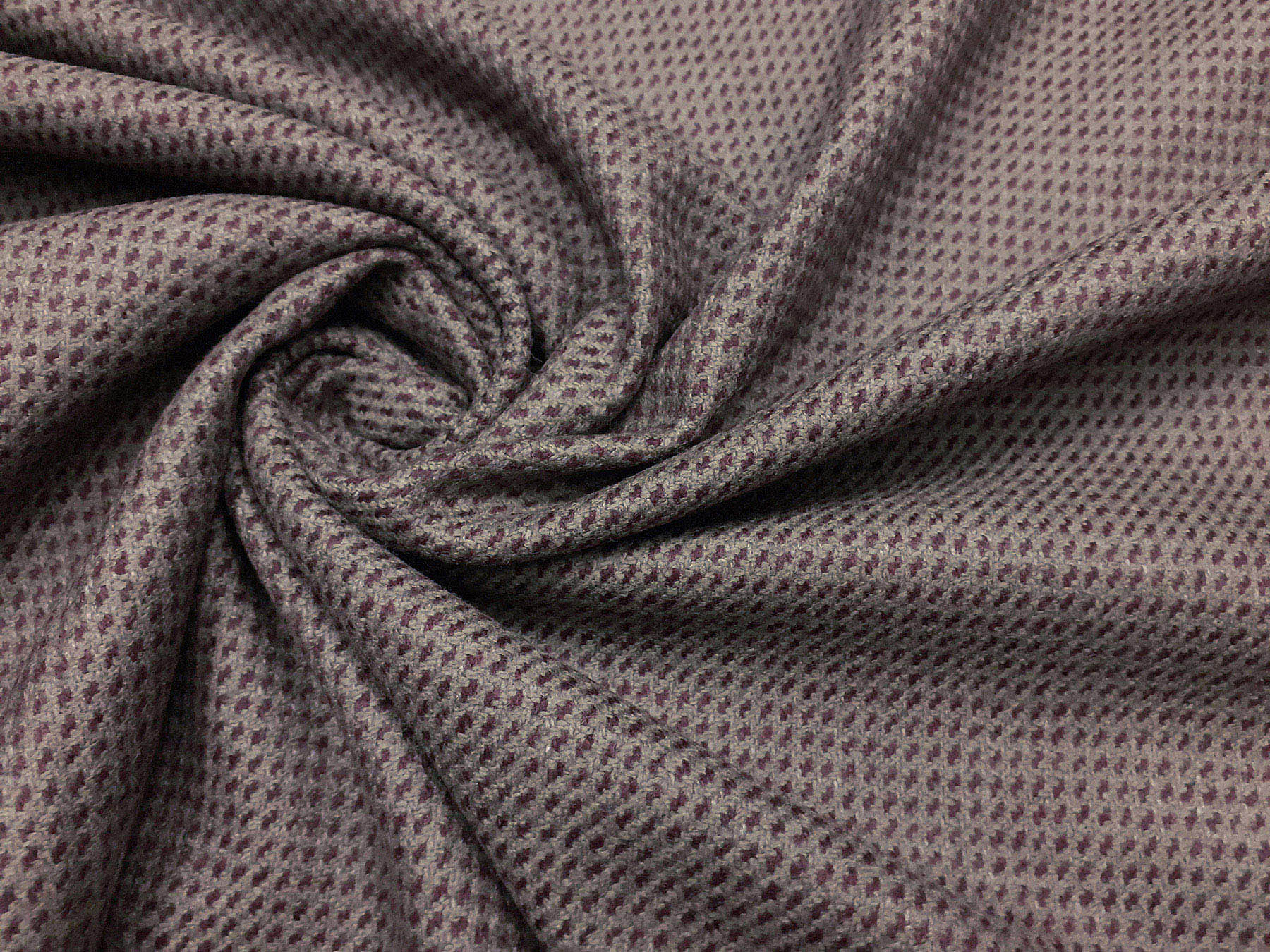 Tessuto in lana e cashmere microdisegno bordaux su fondo tortora