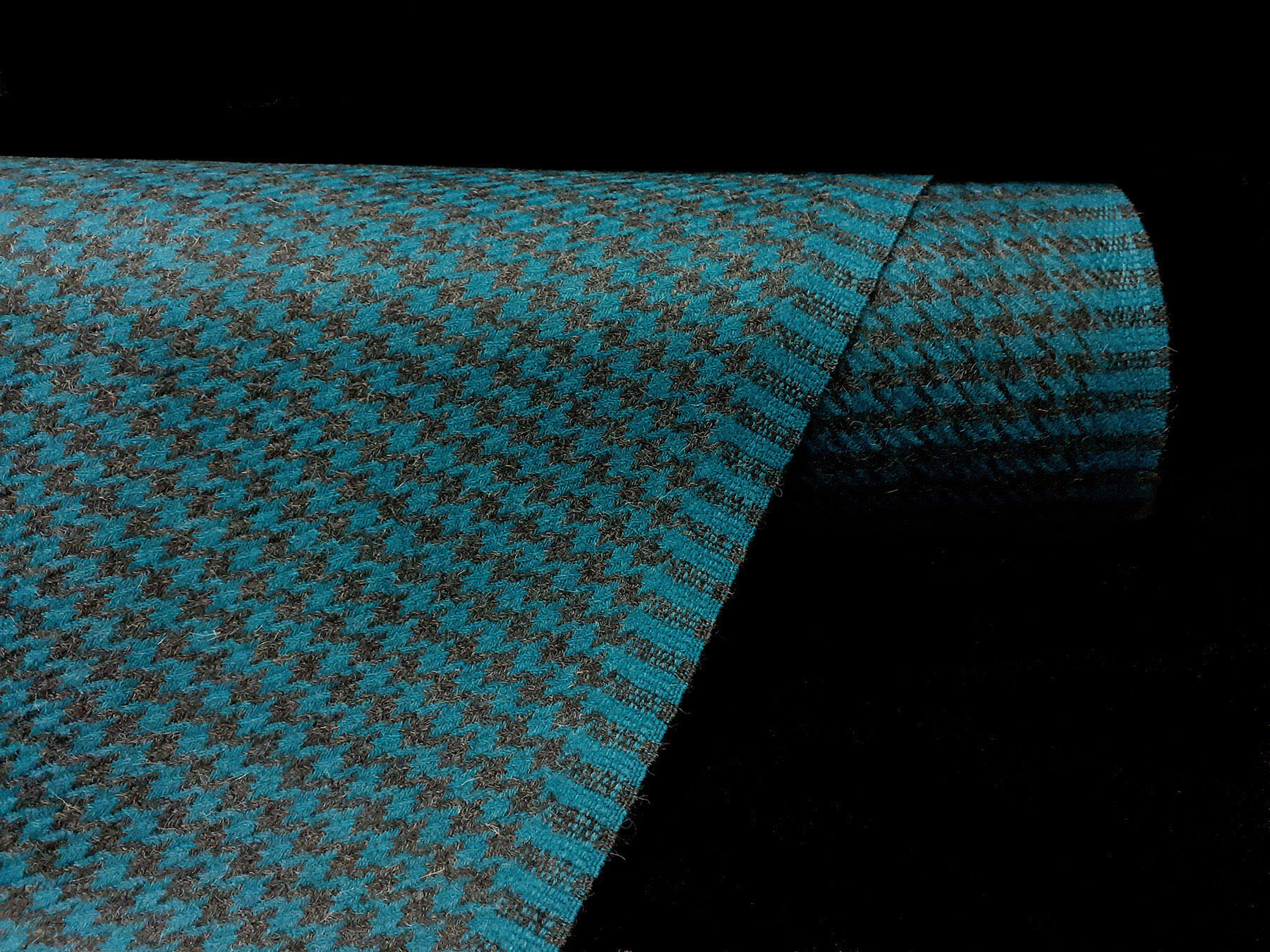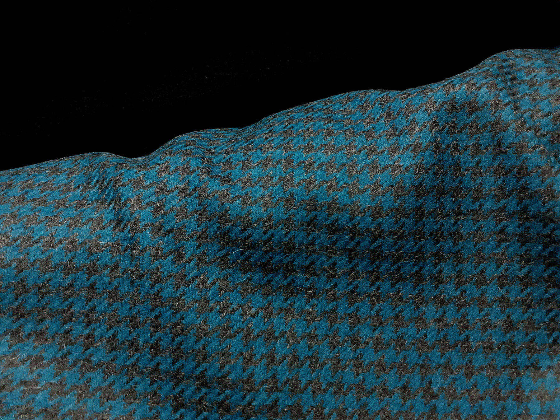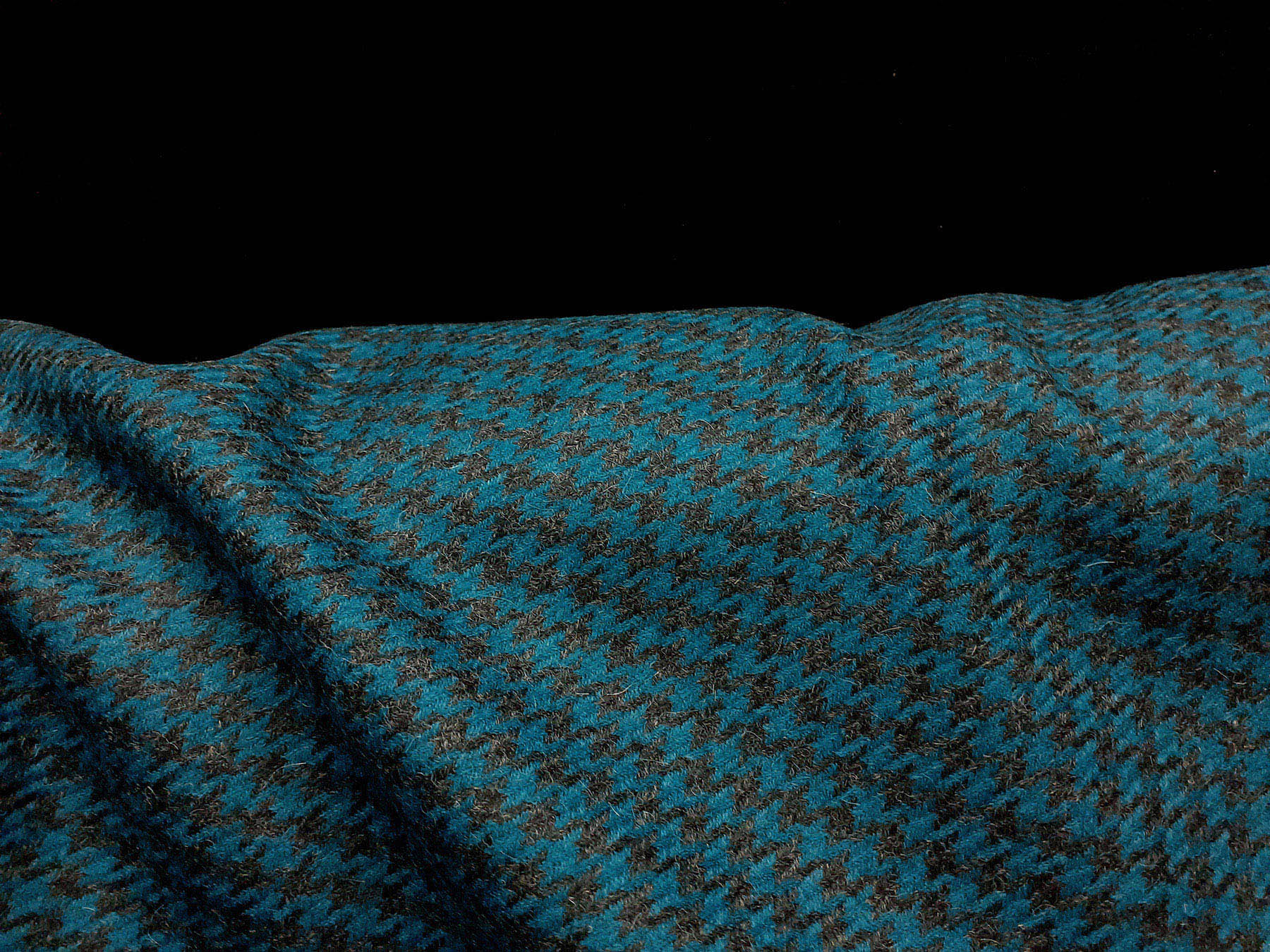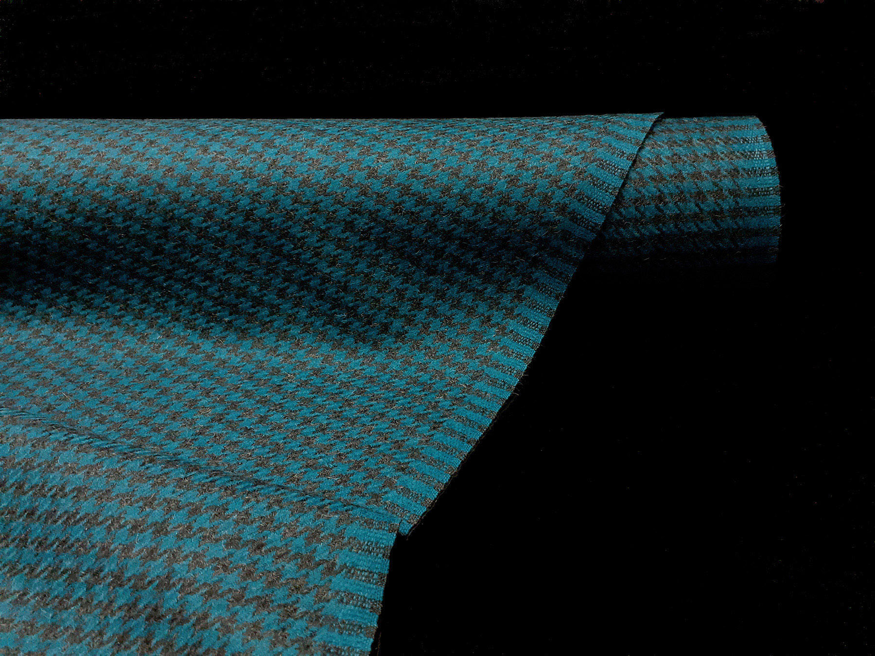 Tessuto in lana alpaca pied de poule grigio e turchese