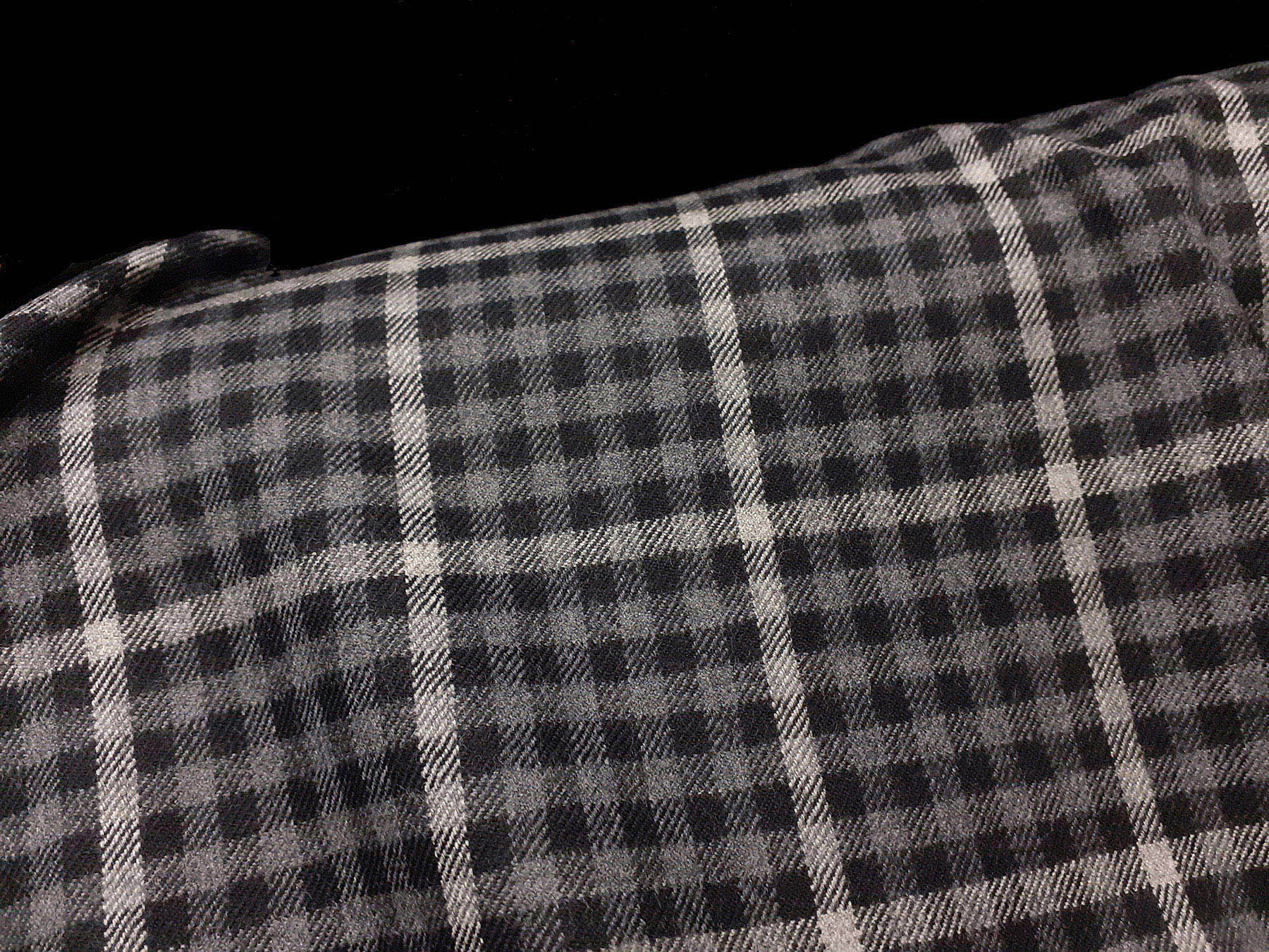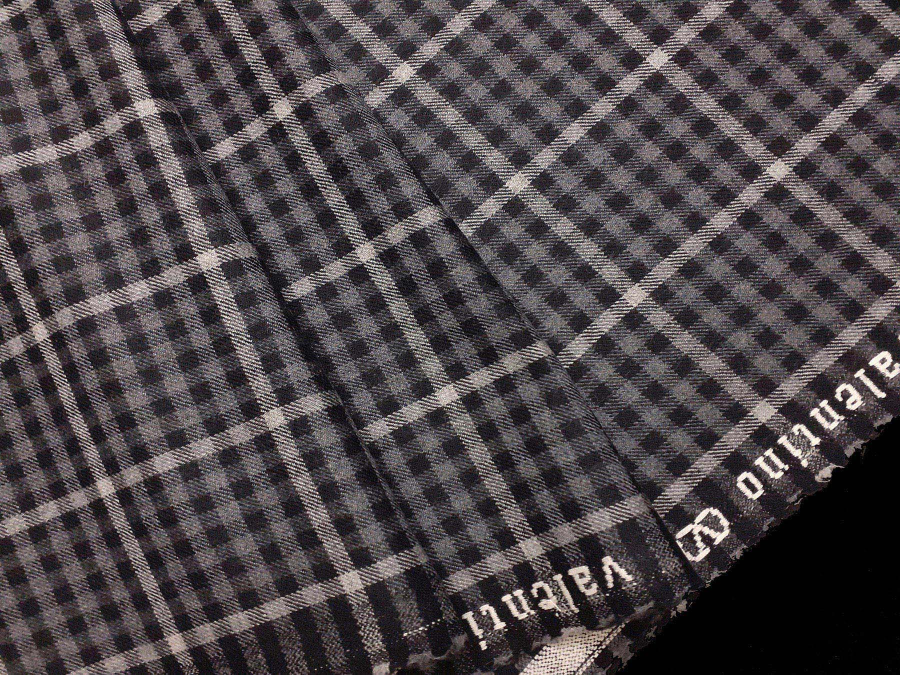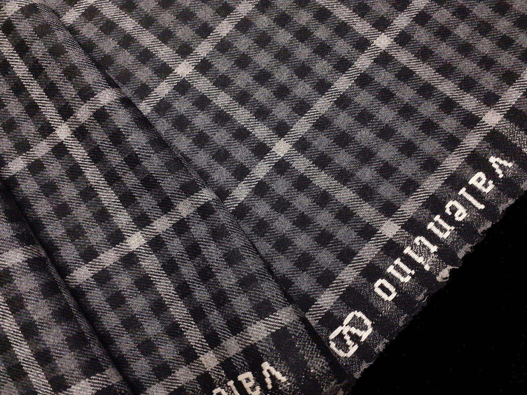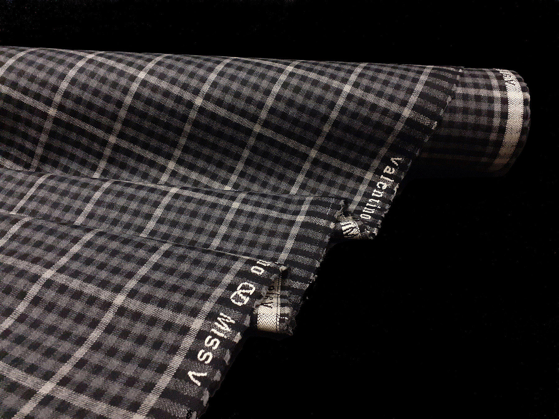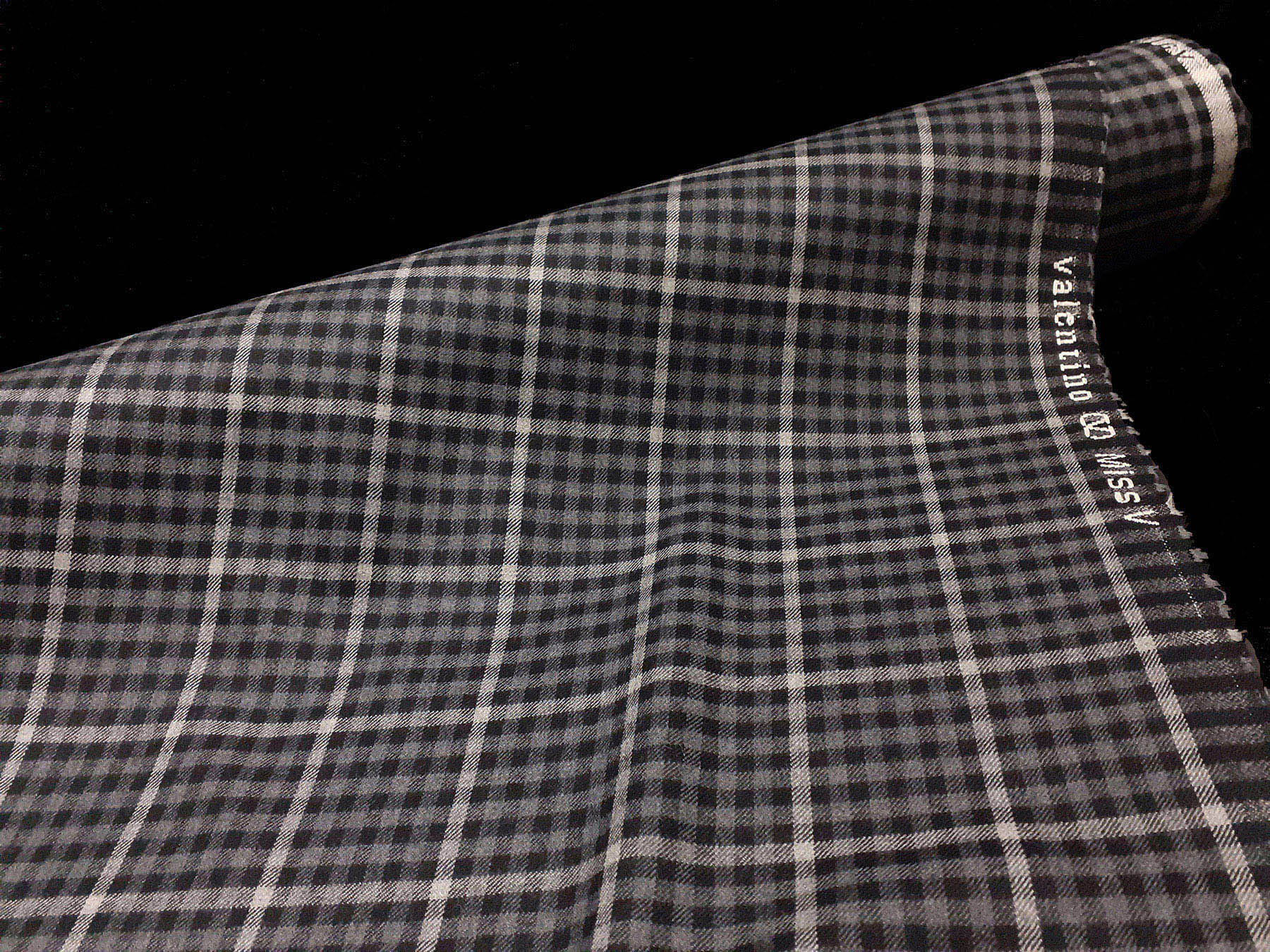 Flanella in lana merino a quadretti bianco e grigio finestrato. Valentino Miss V