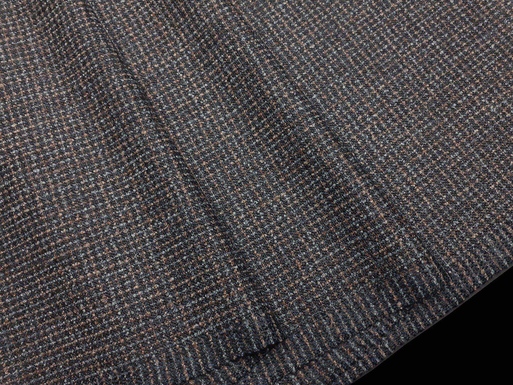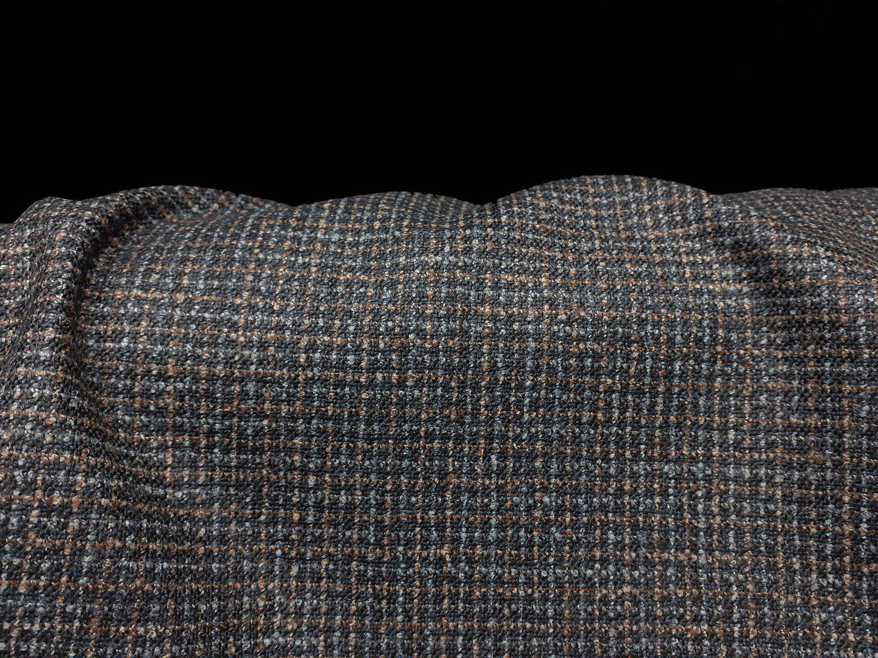 Tessuto di peso medio-alto in lana pettinata, realizzato a Biella con la classica armatura a tela dove ogni filo di ordito si intreccia con ogni filo di trama. Ha mano calda e compatta, perfetto per realizzare capi spalla, pantaloni e gonne.