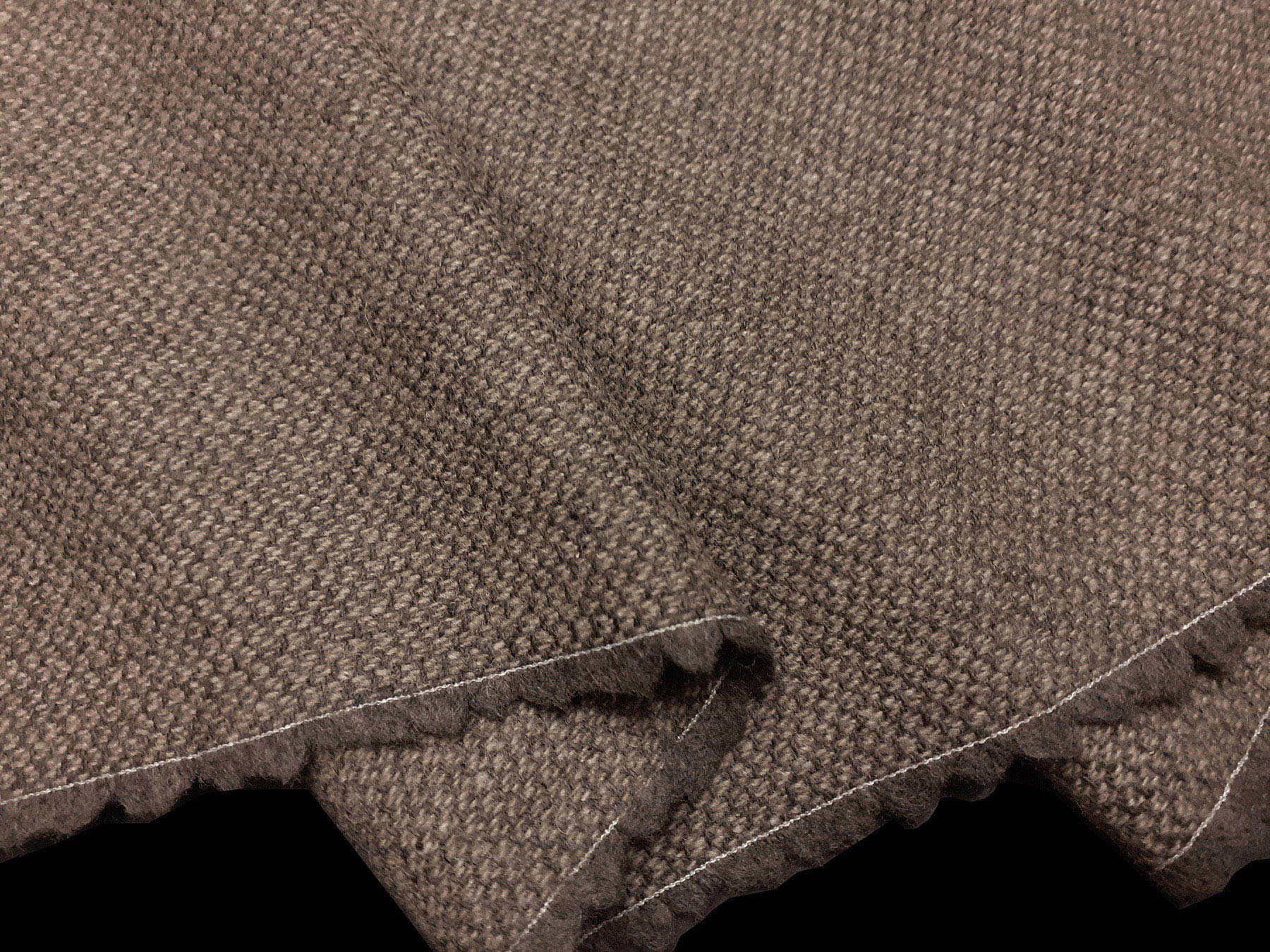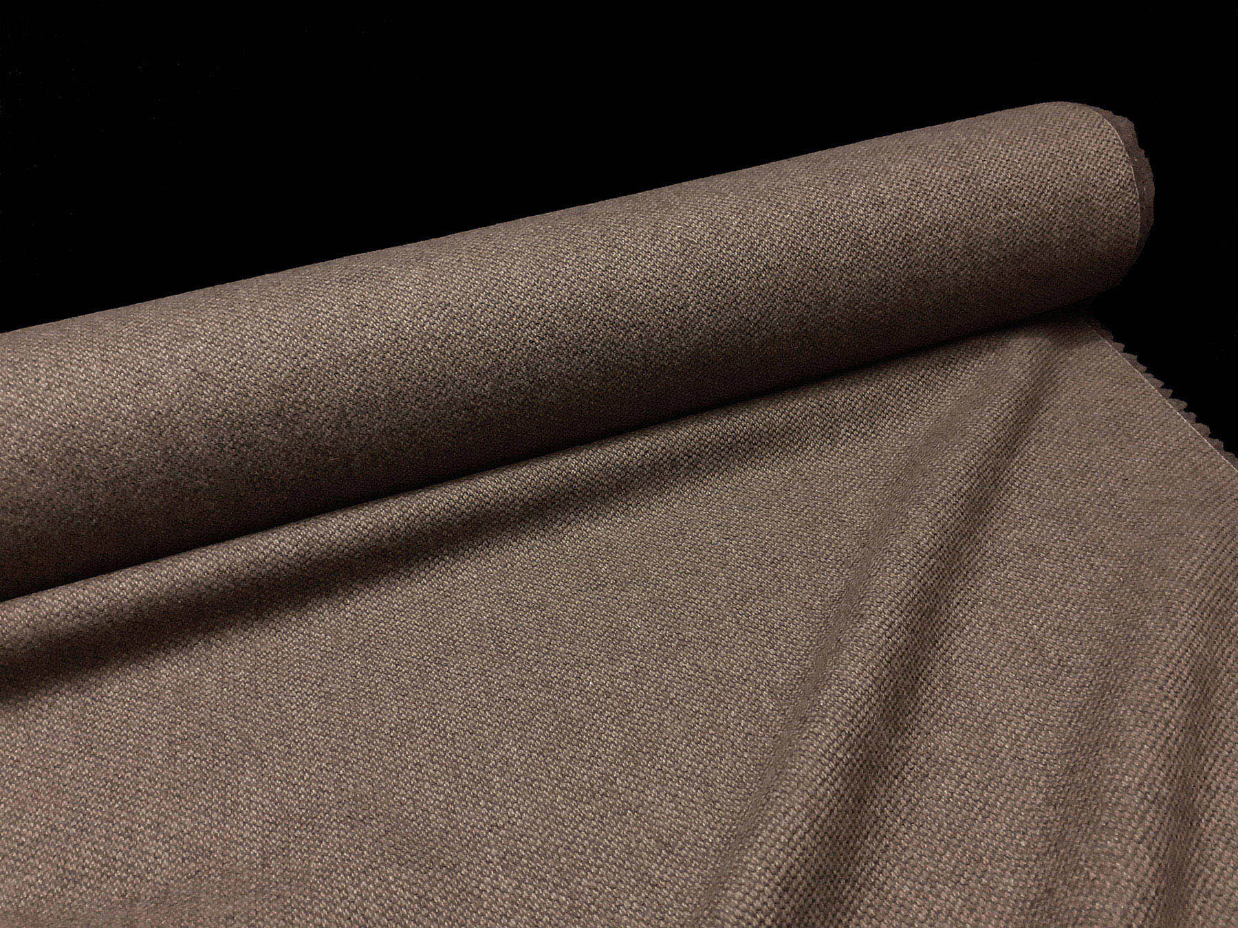 Tessuto in lana e cashmere di peso medio-alto prodotto a Biella con disegno a “occhio di pernice” di mano calda e molto morbida adatto per capi spalla e vestiti.
