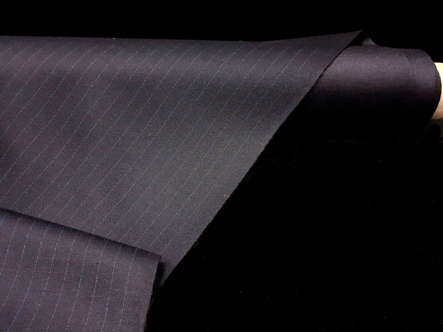 Grain de poudre in pura lana nero gessato blu China
