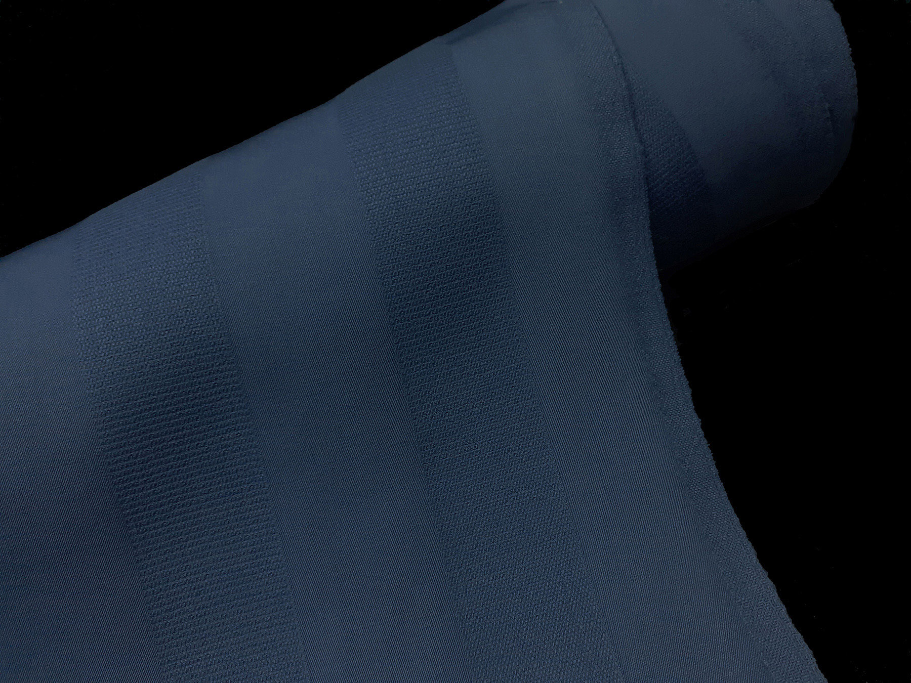 Tessuto pettinato grigio azzurro con righe in lucido.
