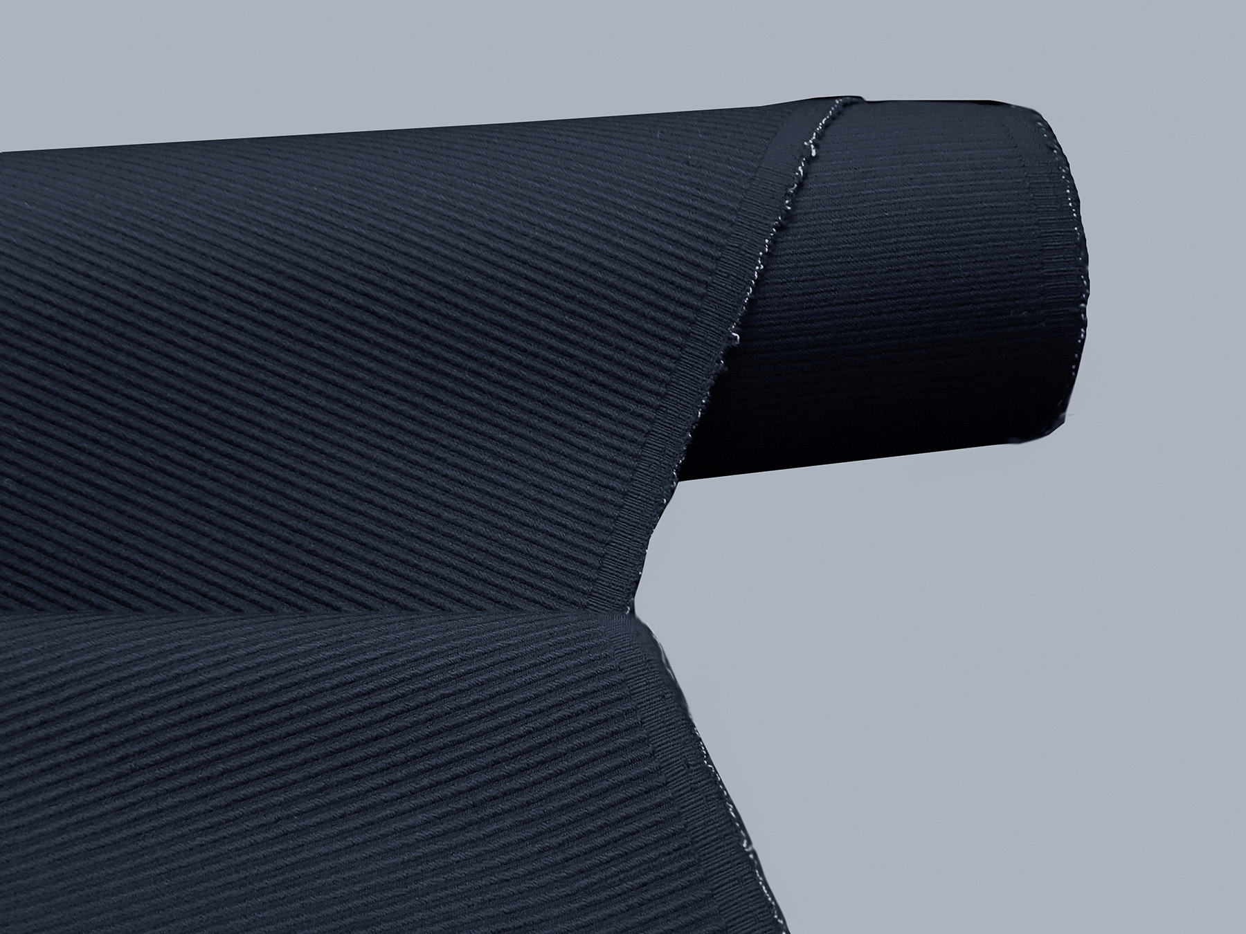 Tessuto ottoman – non cimossato – in pura lana di peso medio-alto, prodotto dal Lanificio Agnona, a coste orizzontali in evidenza. Viene utilizzato nella confezione di capi spalla e gonne .