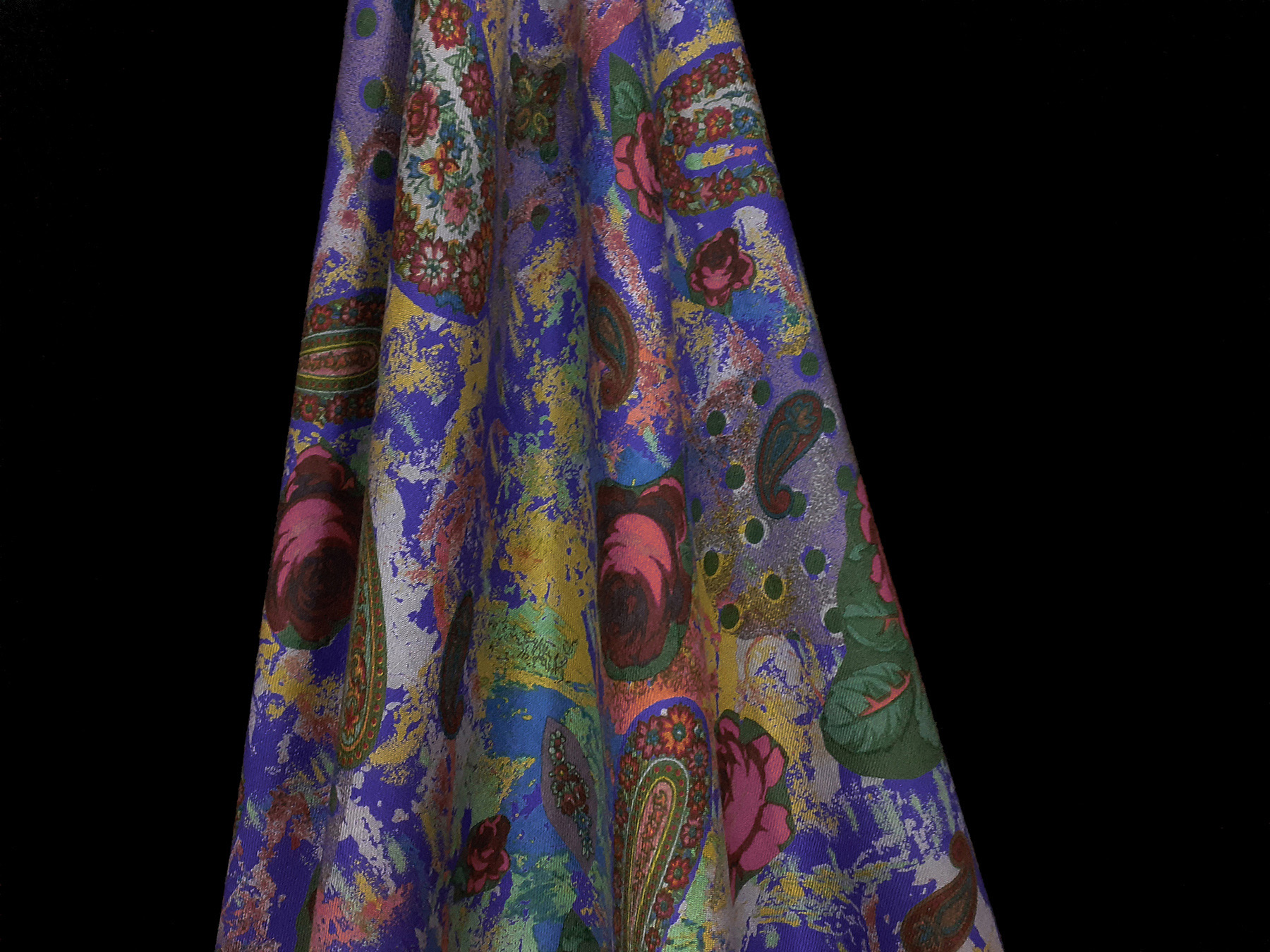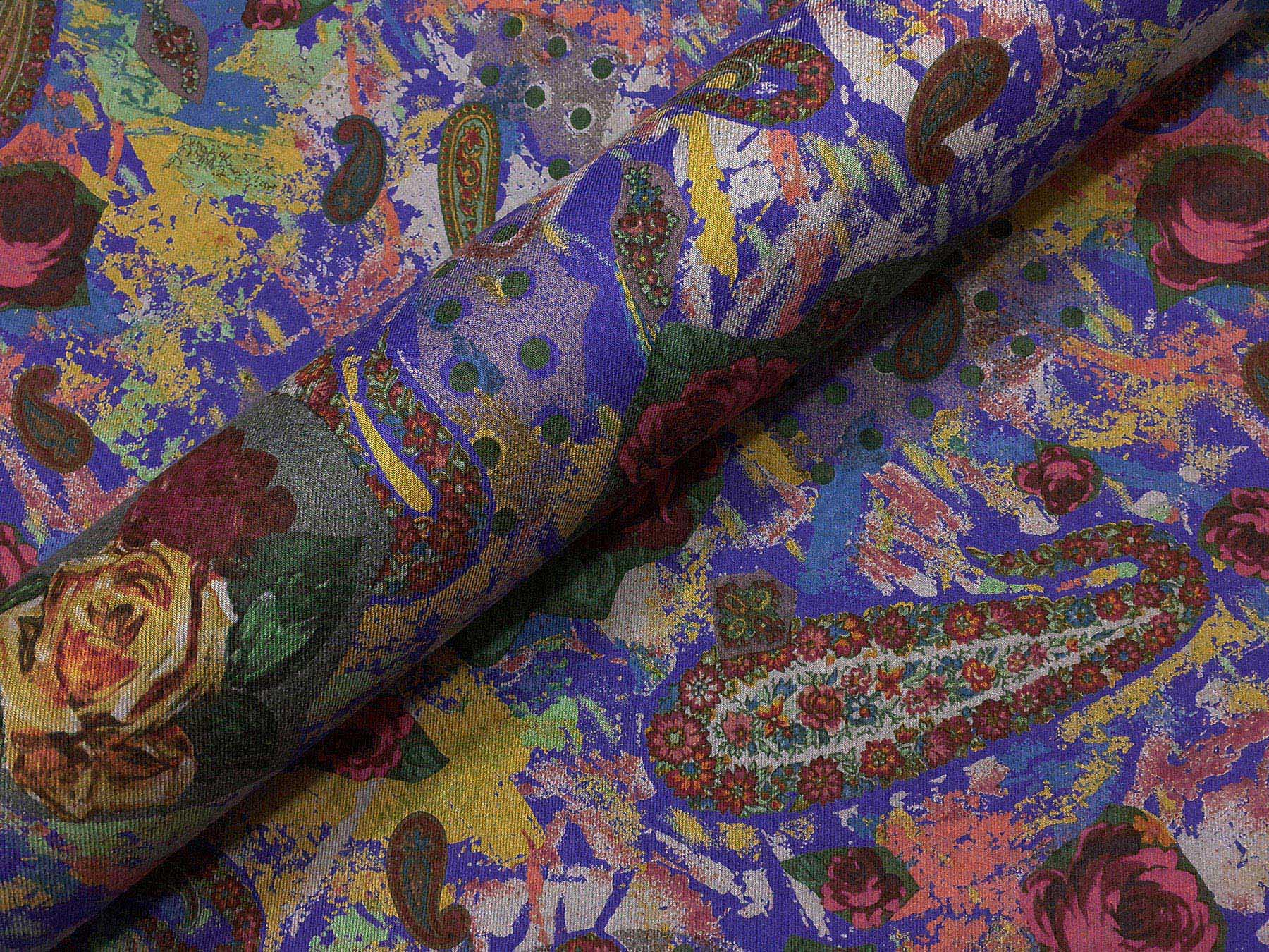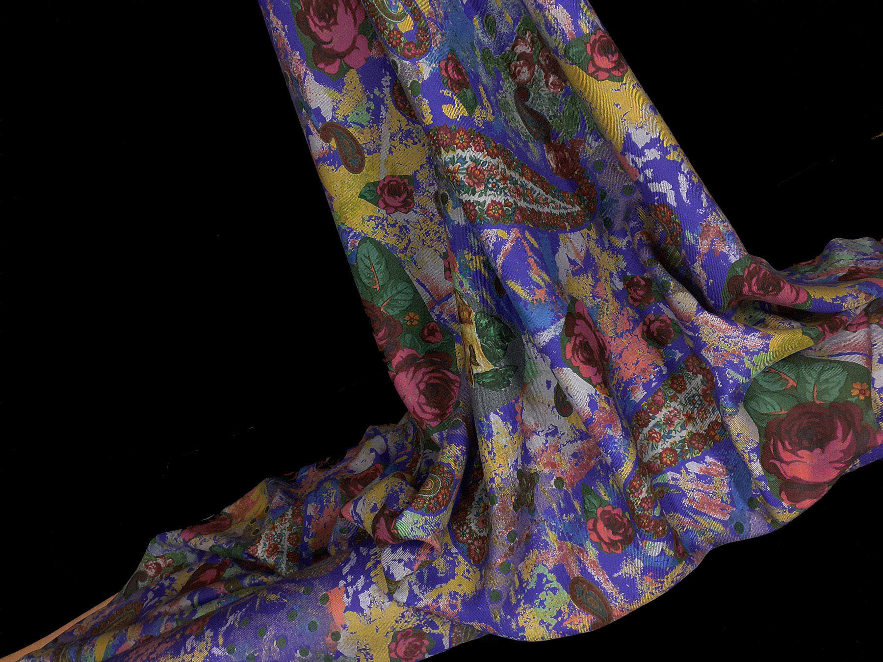 Mussola di lana flori e cashmere su fondo viola