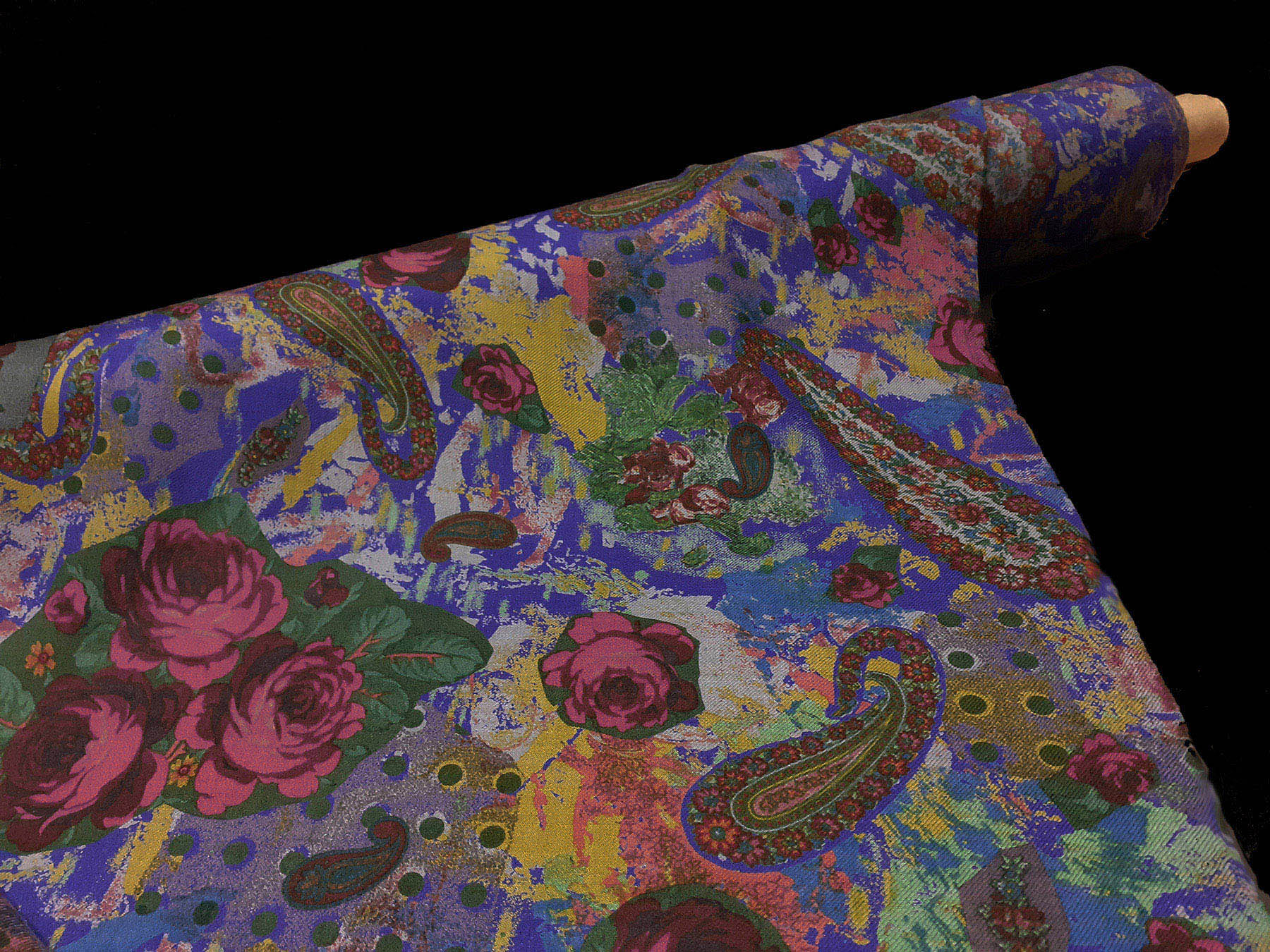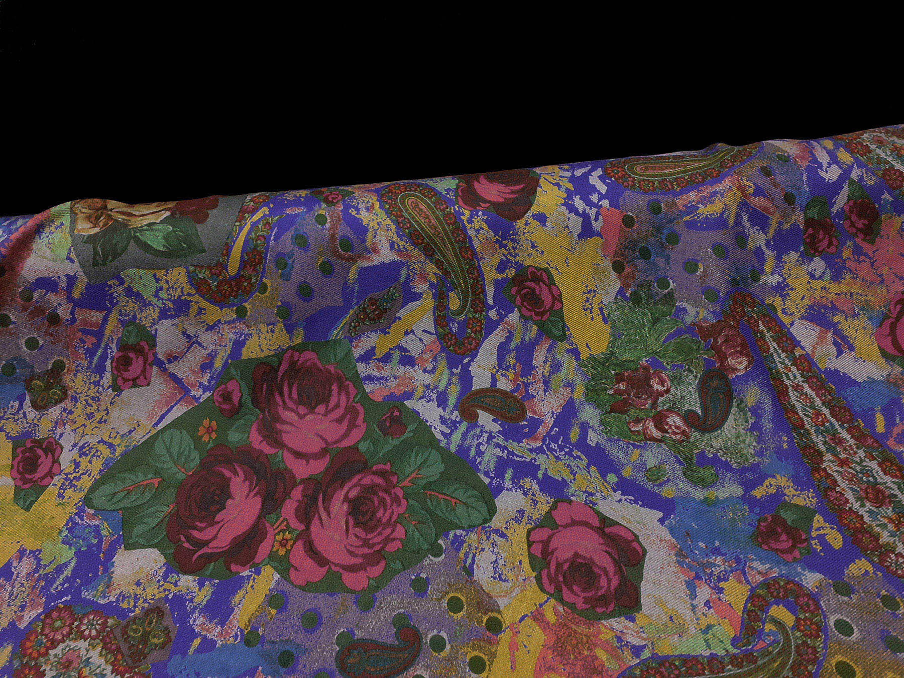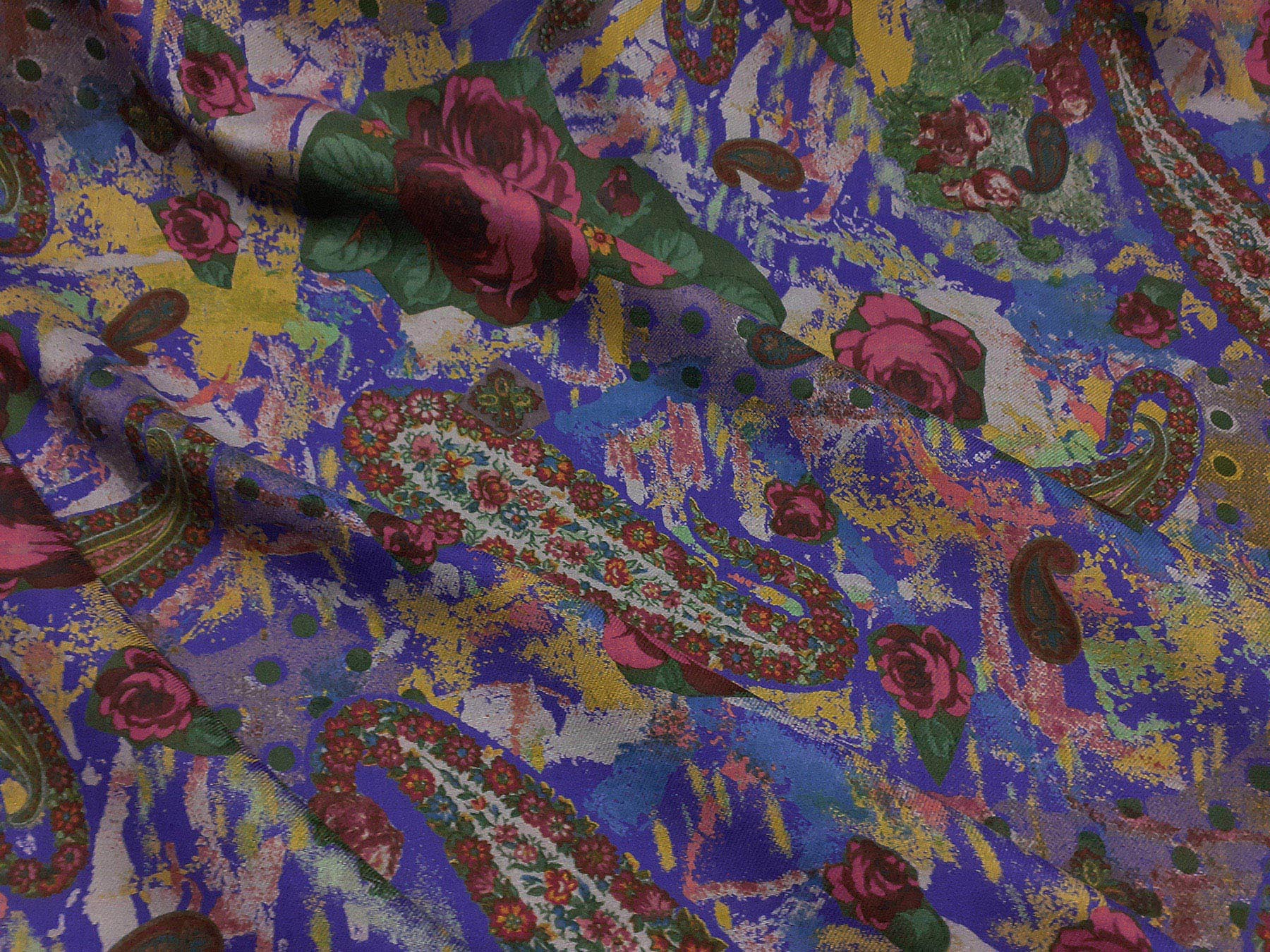 Mussola di lana flori e cashmere su fondo viola