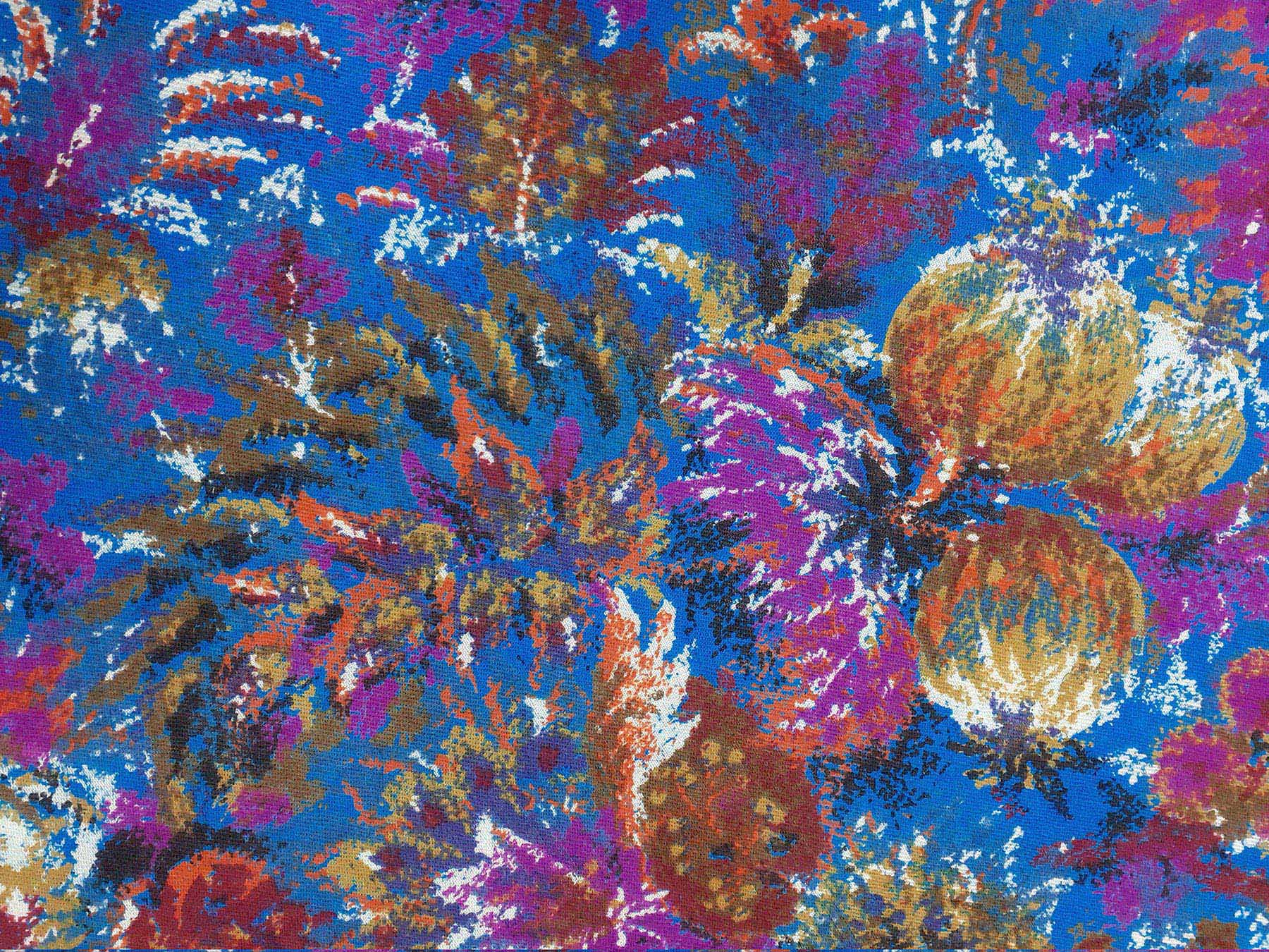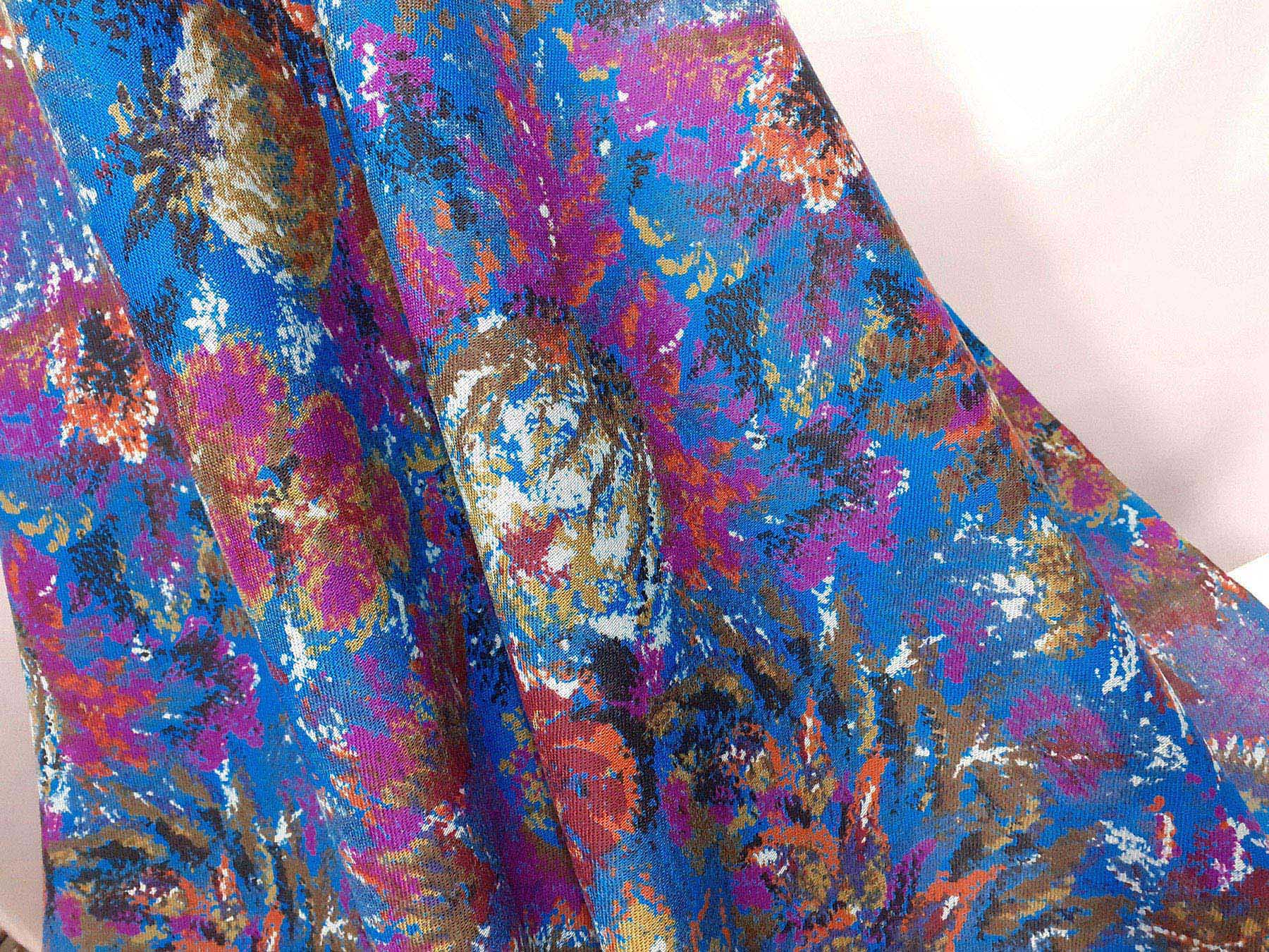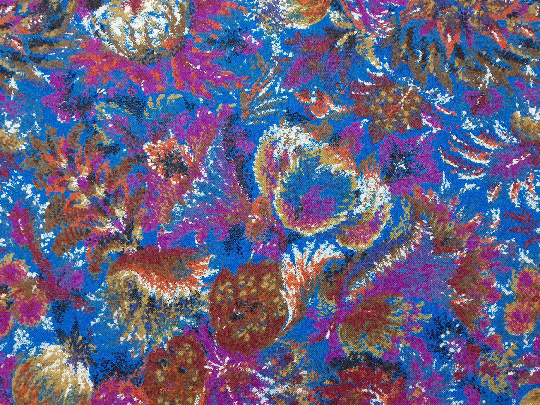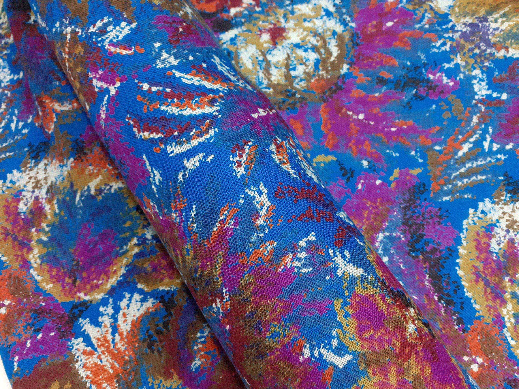 Mussola di lana fantasia astratta su fondo azzurro intenso