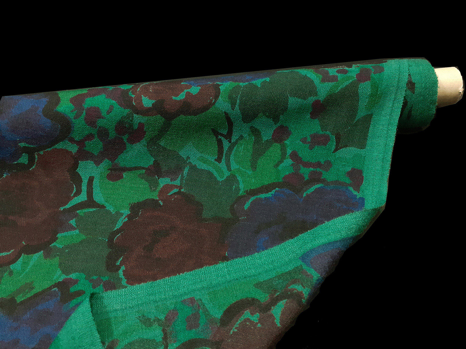 Mussola di lana fantasia floreale su fondo verde