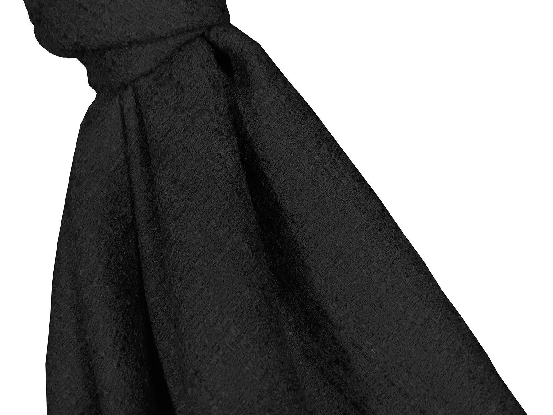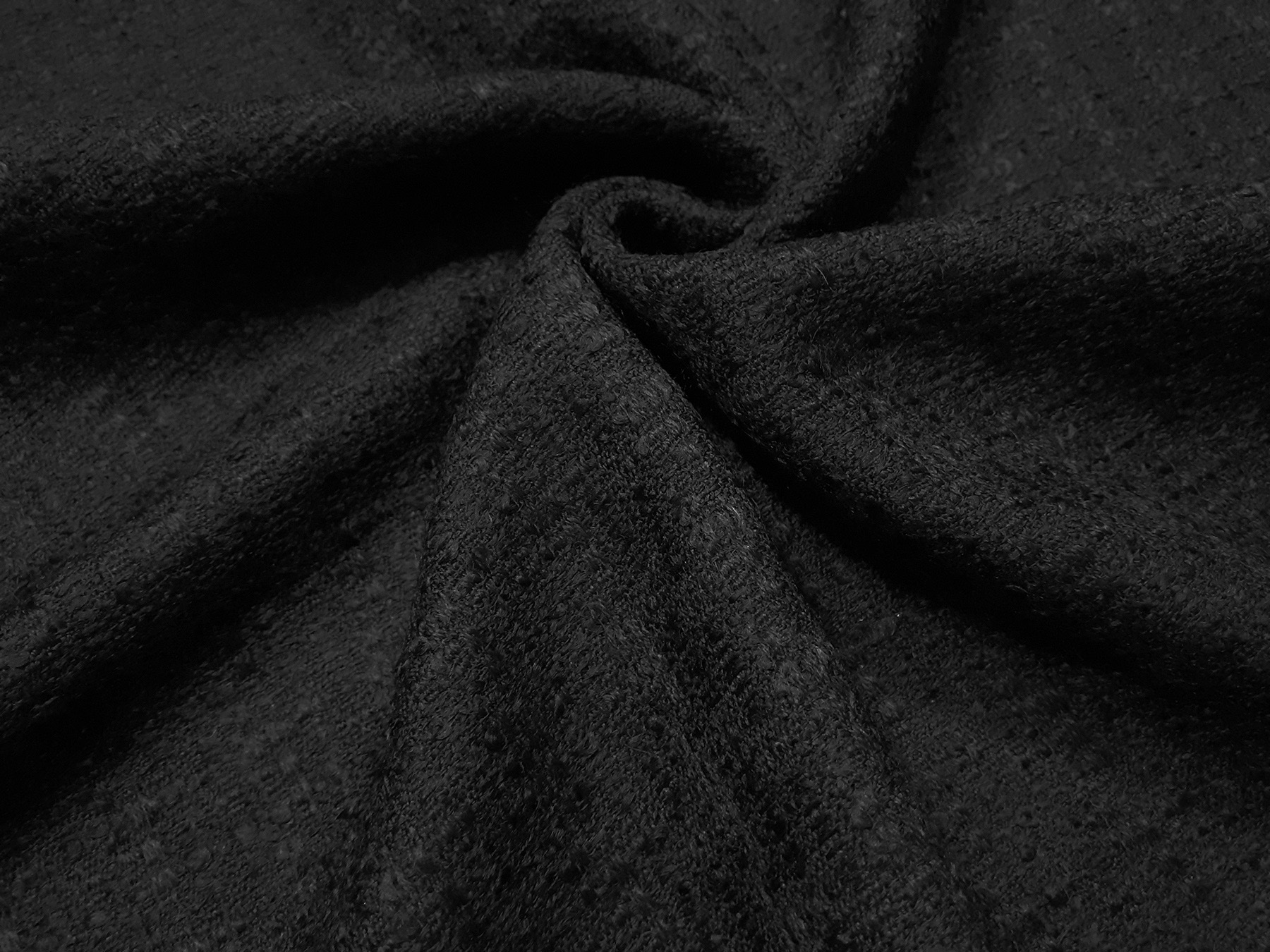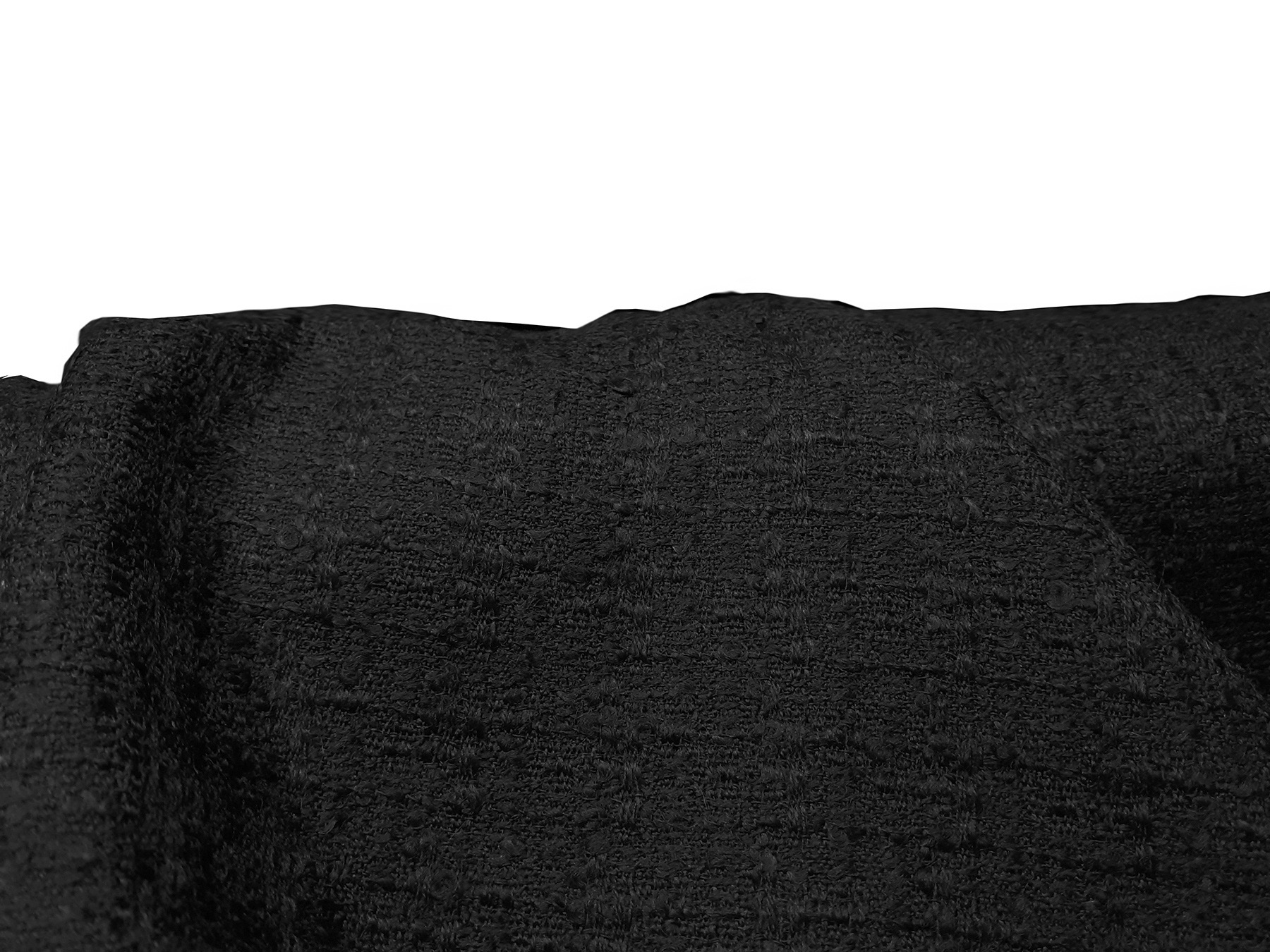 In questo tessuto Chanel – con armatura a stuoia – gli effetti di filatura bouclé e frisé sono intrecciati con filati pettinati più resistenti. La mano è morbida e corposa, ideale per la realizzazione di capispalla, abiti e gonne.