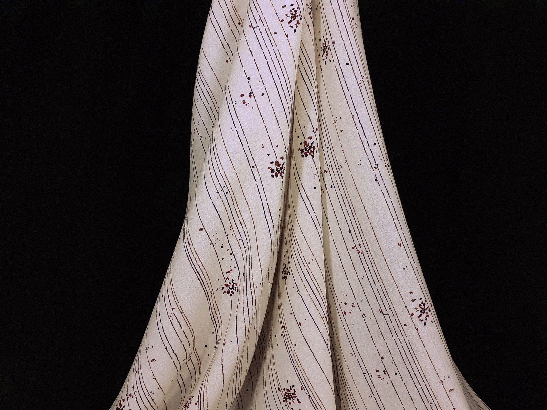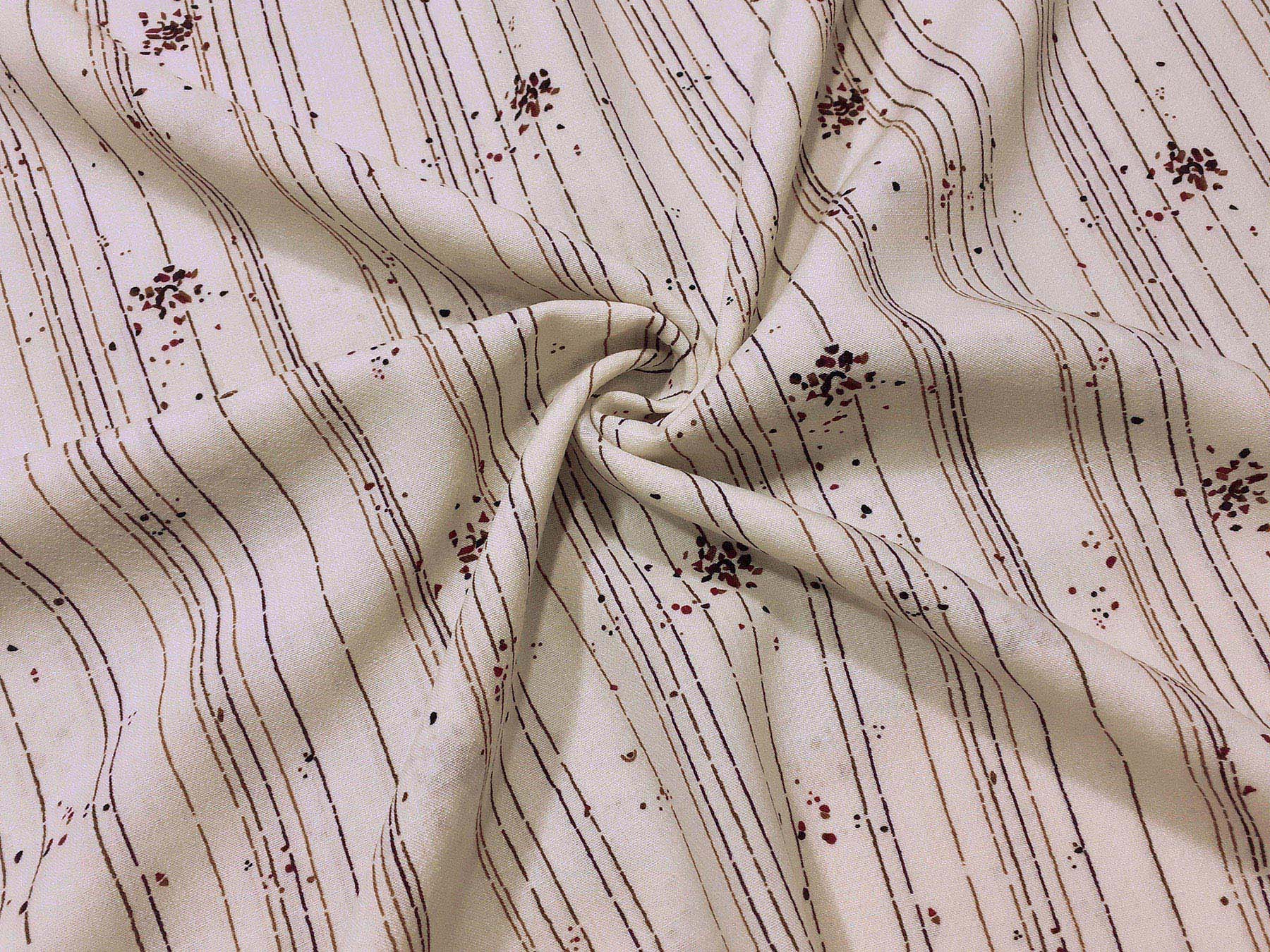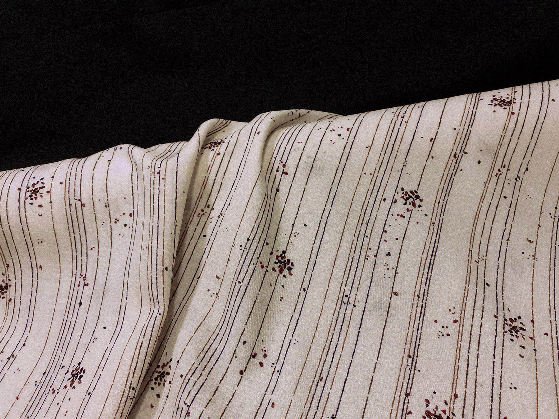 Mussola di lana a righe assimetriche e fiorellini su fondo avorio