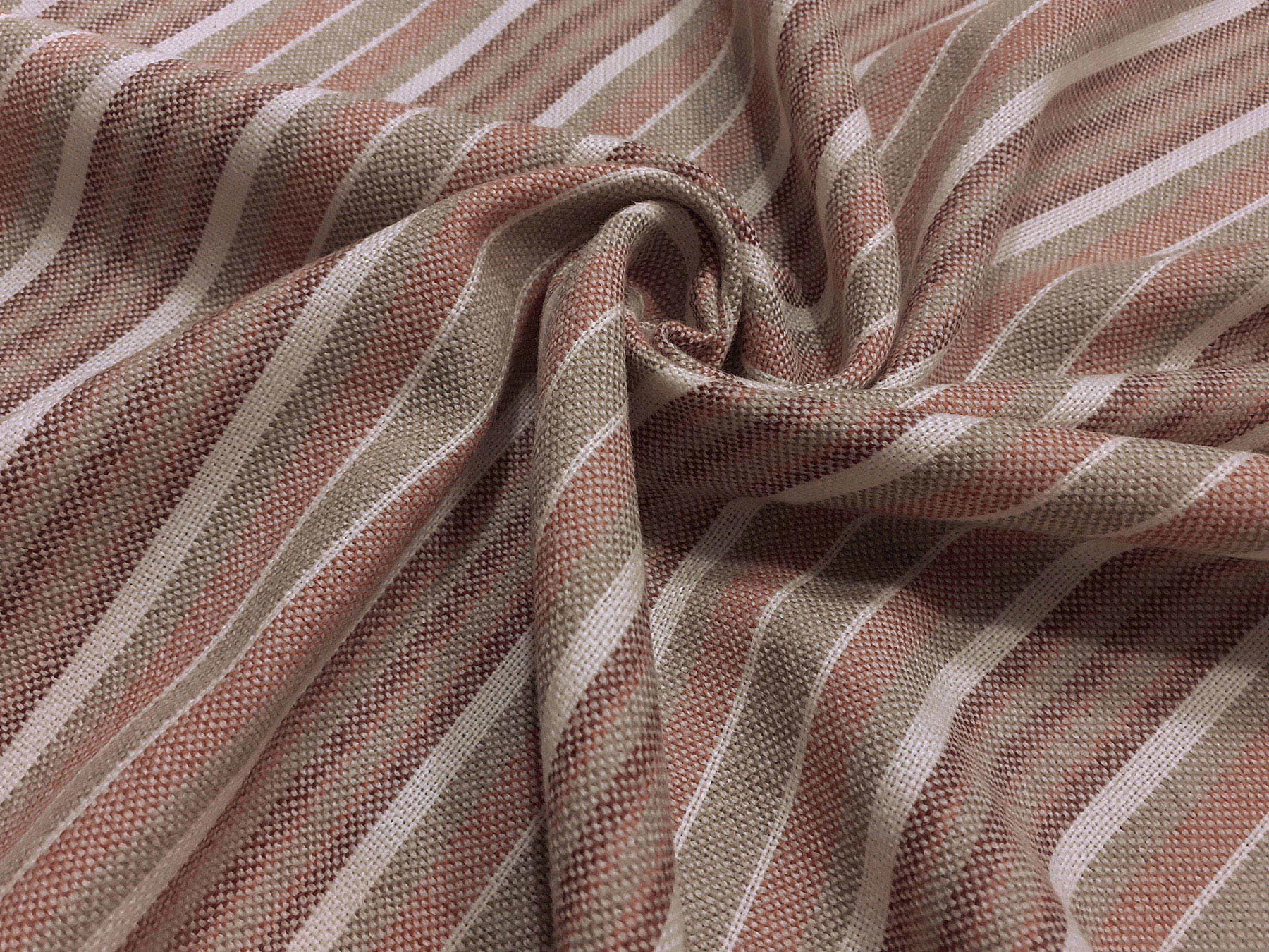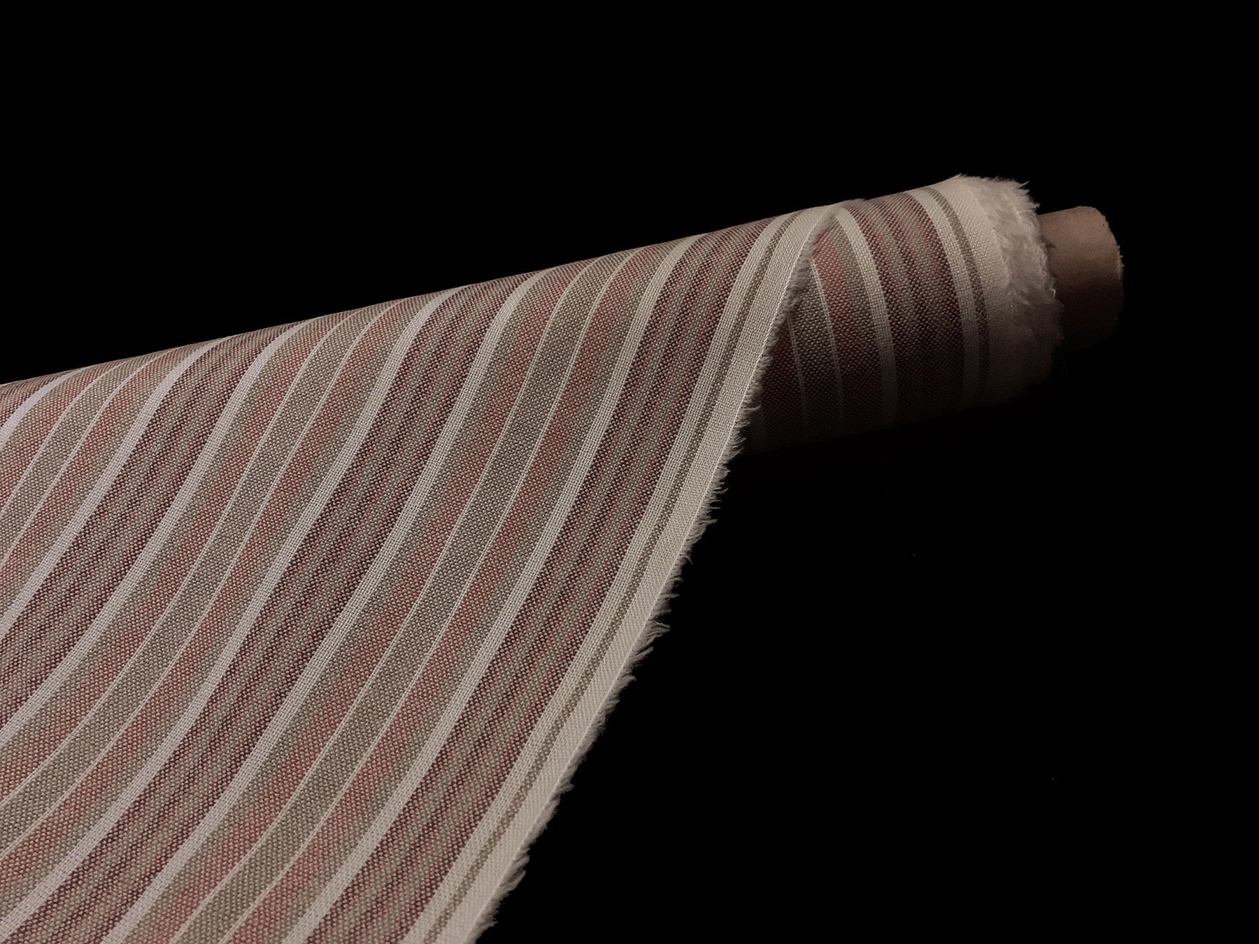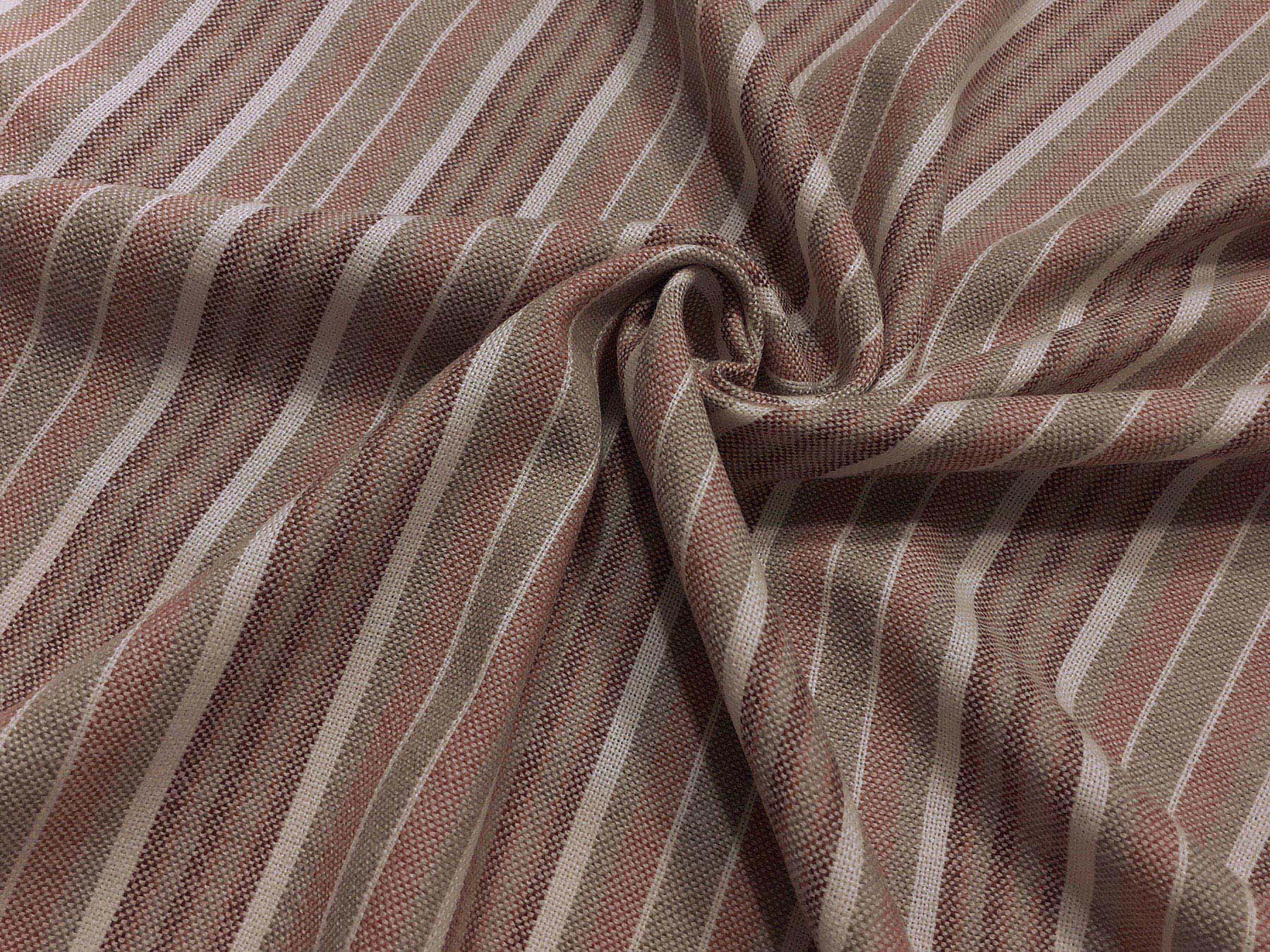 Mussola di lana a righe beige, marrone e rosa su fondo avorio