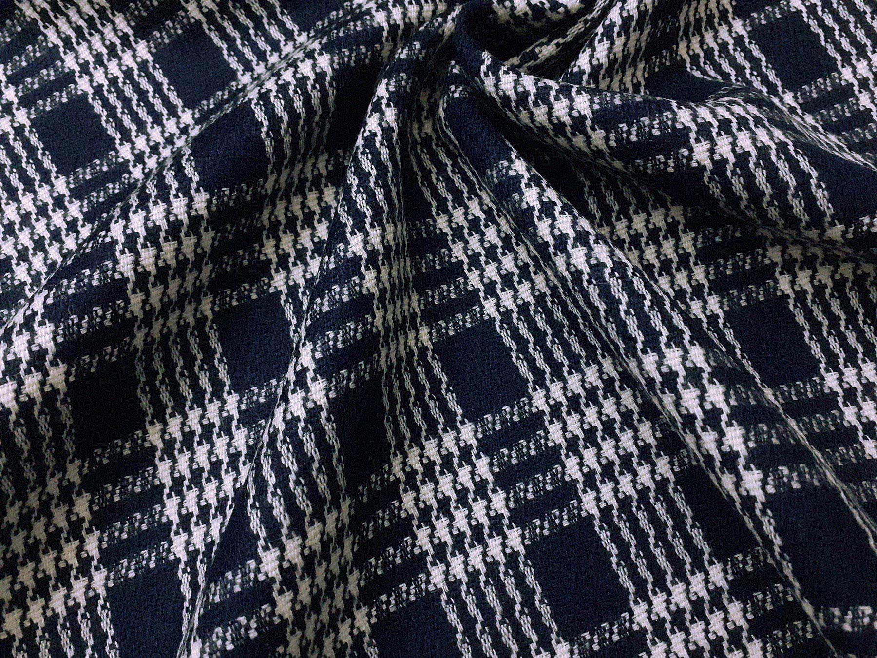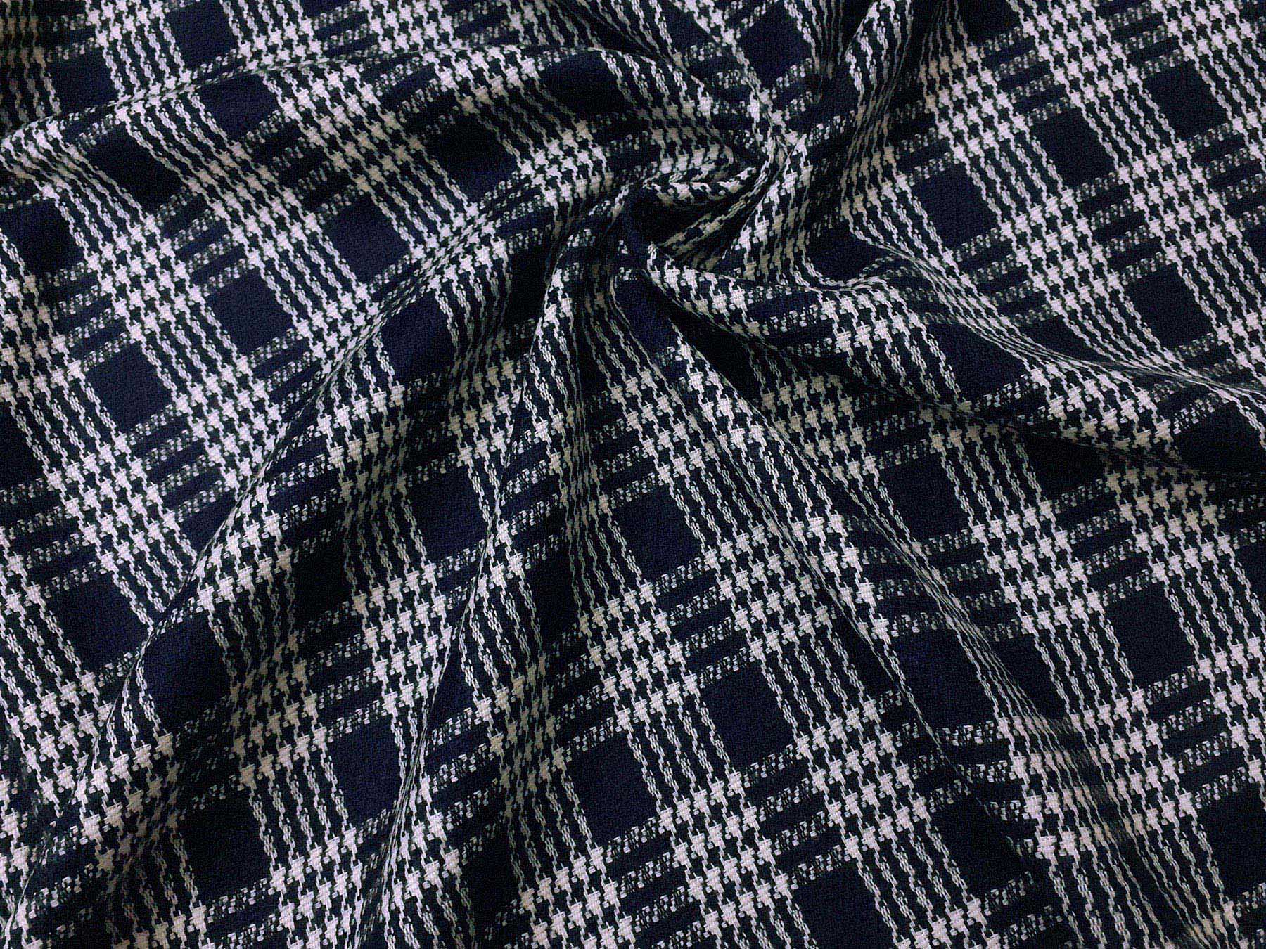 Flanella in lana merino Principe di Galles fondo blu navy