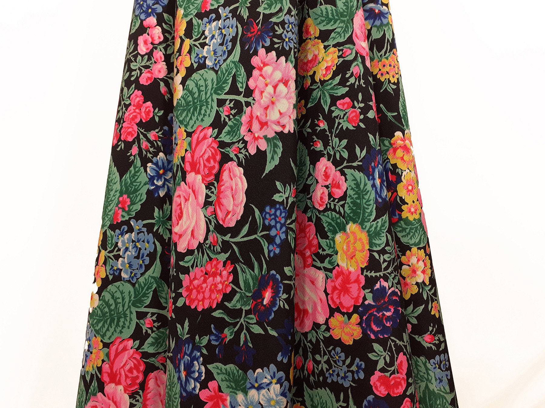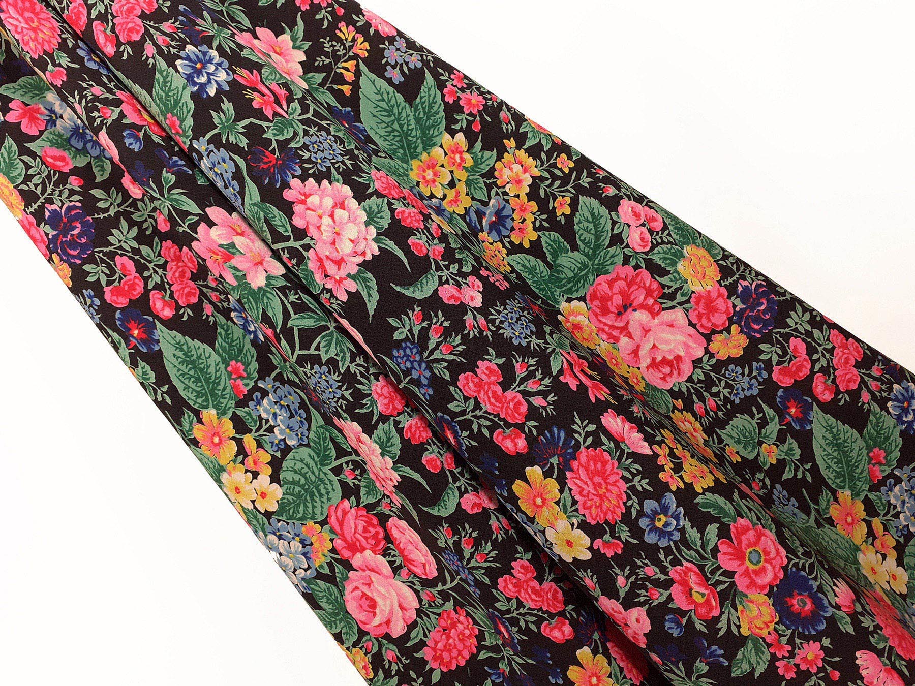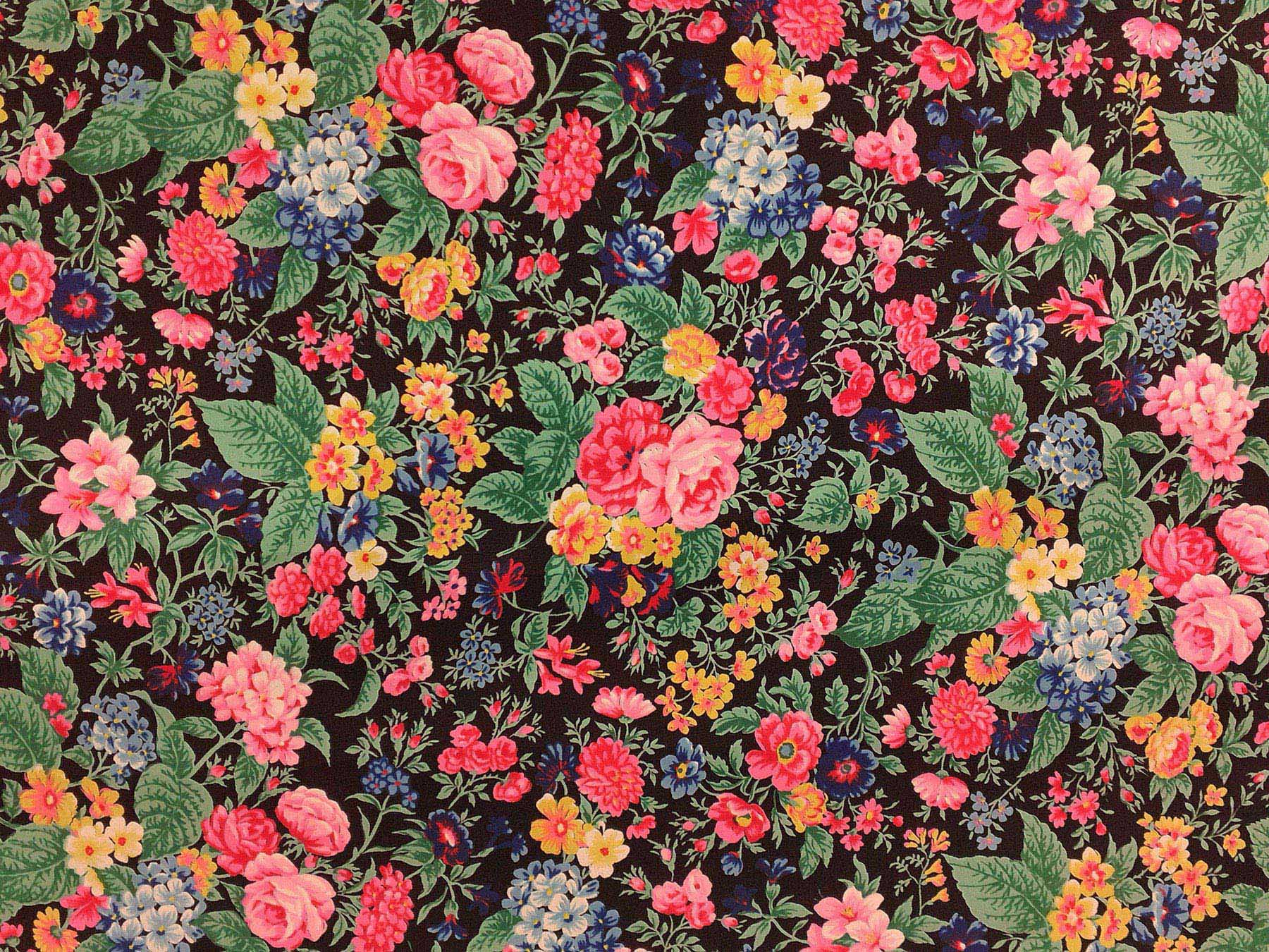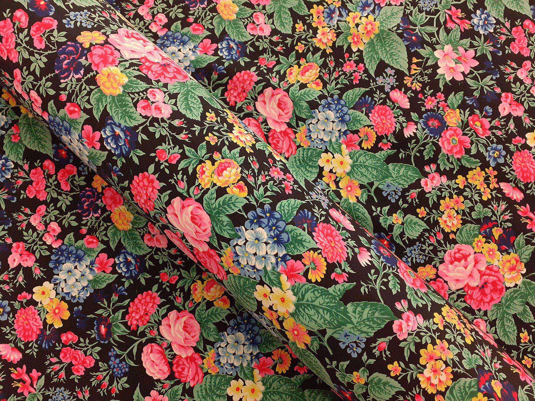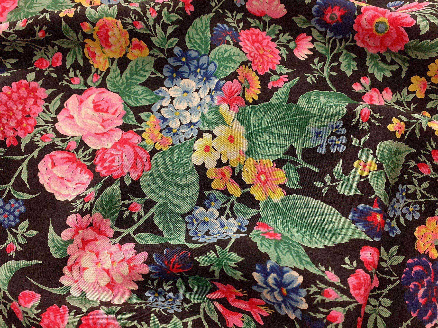 Crepe de Chine in seta fantasia floreale su fondo nero