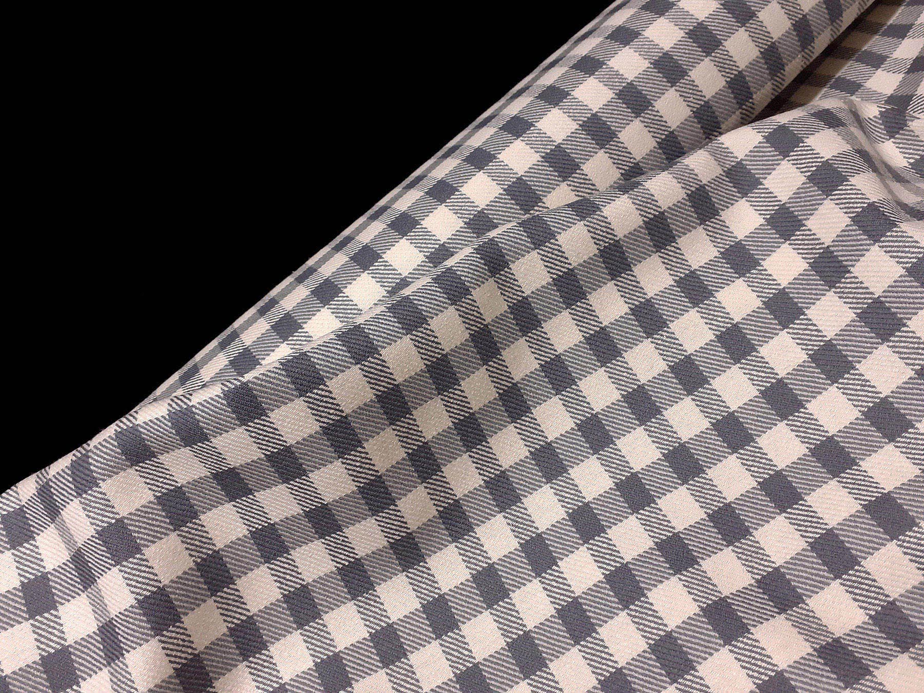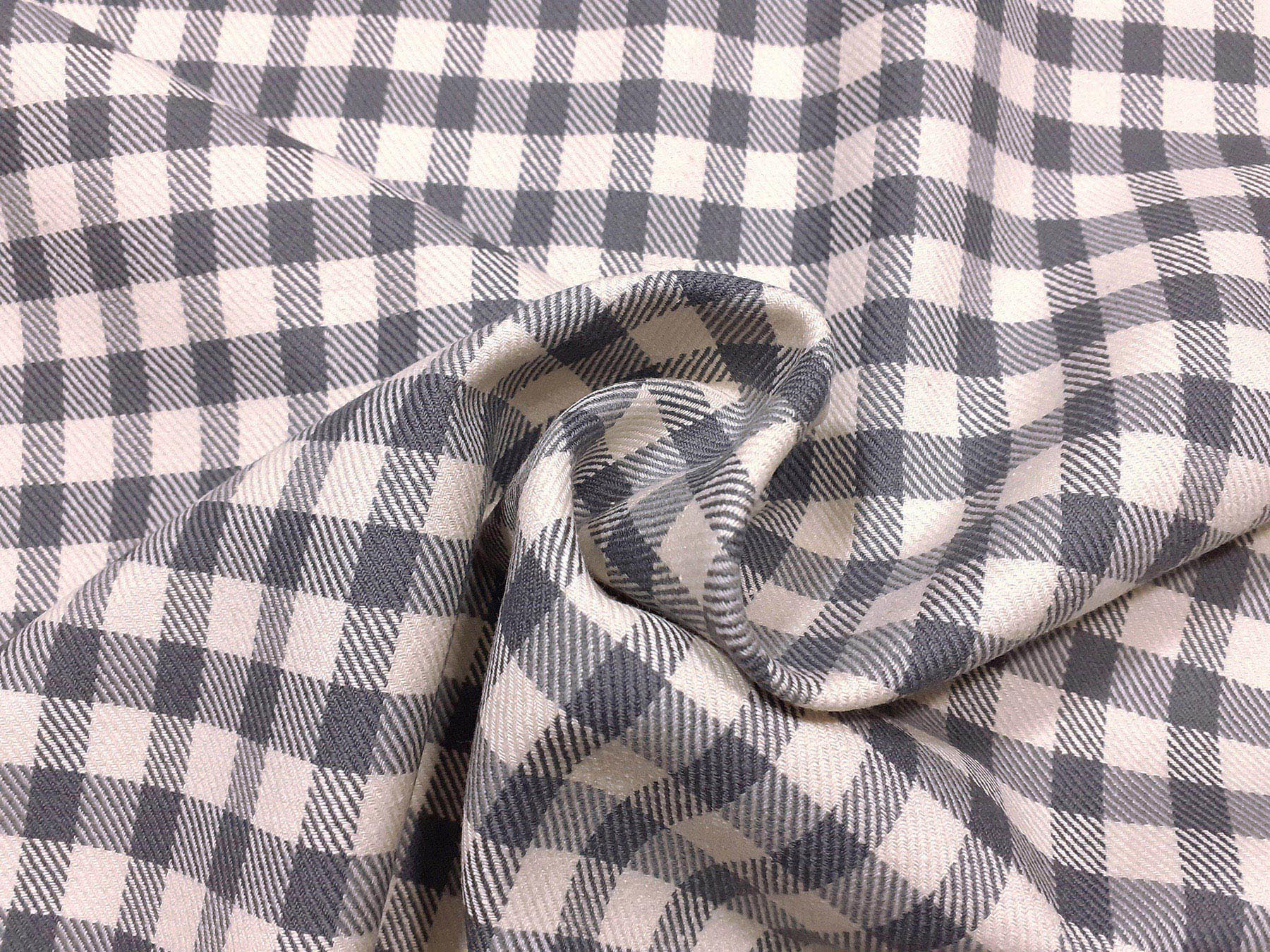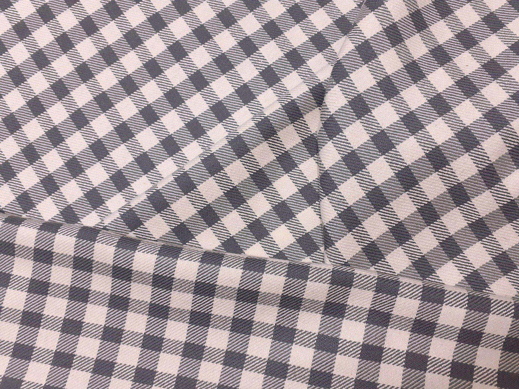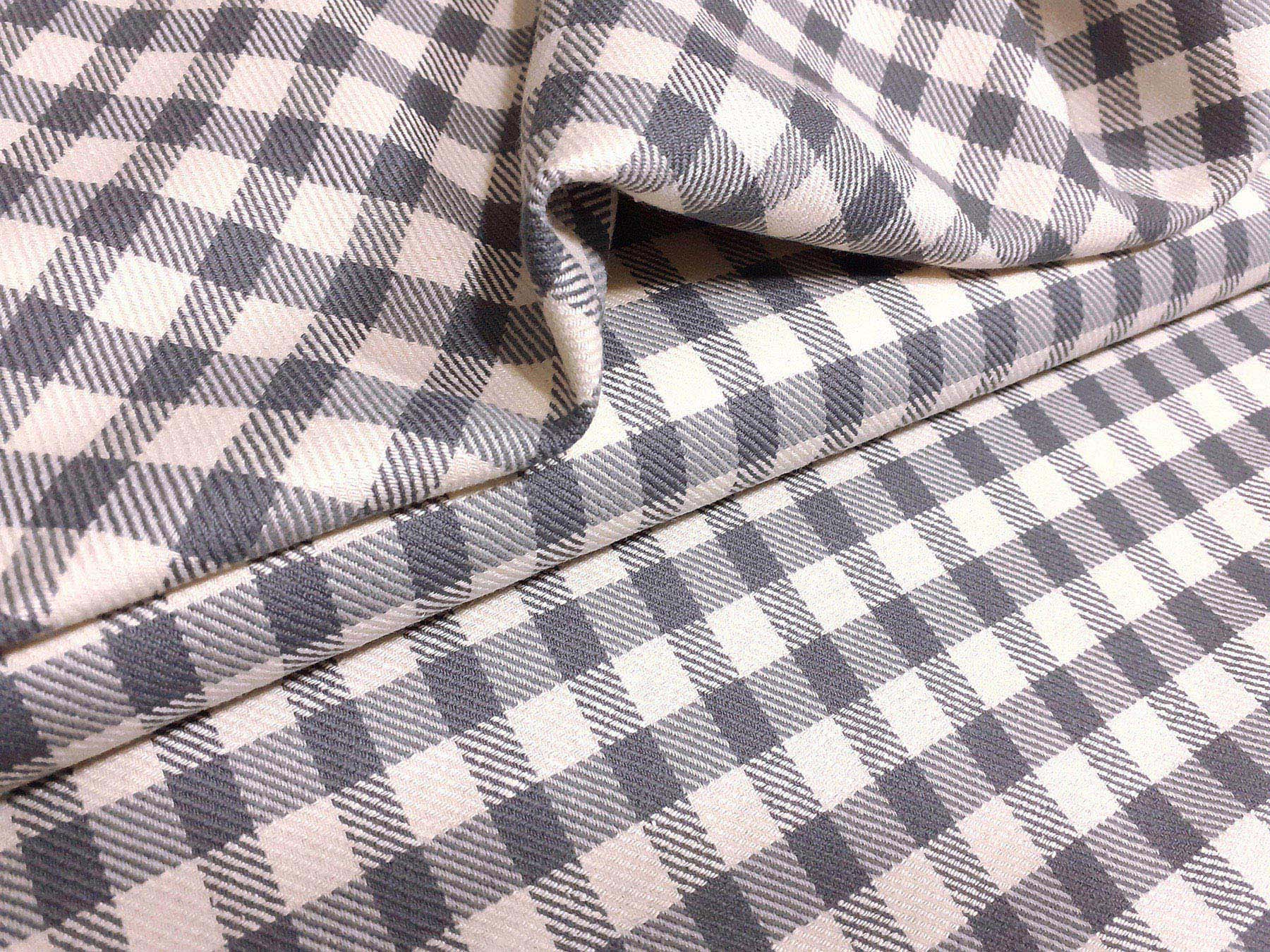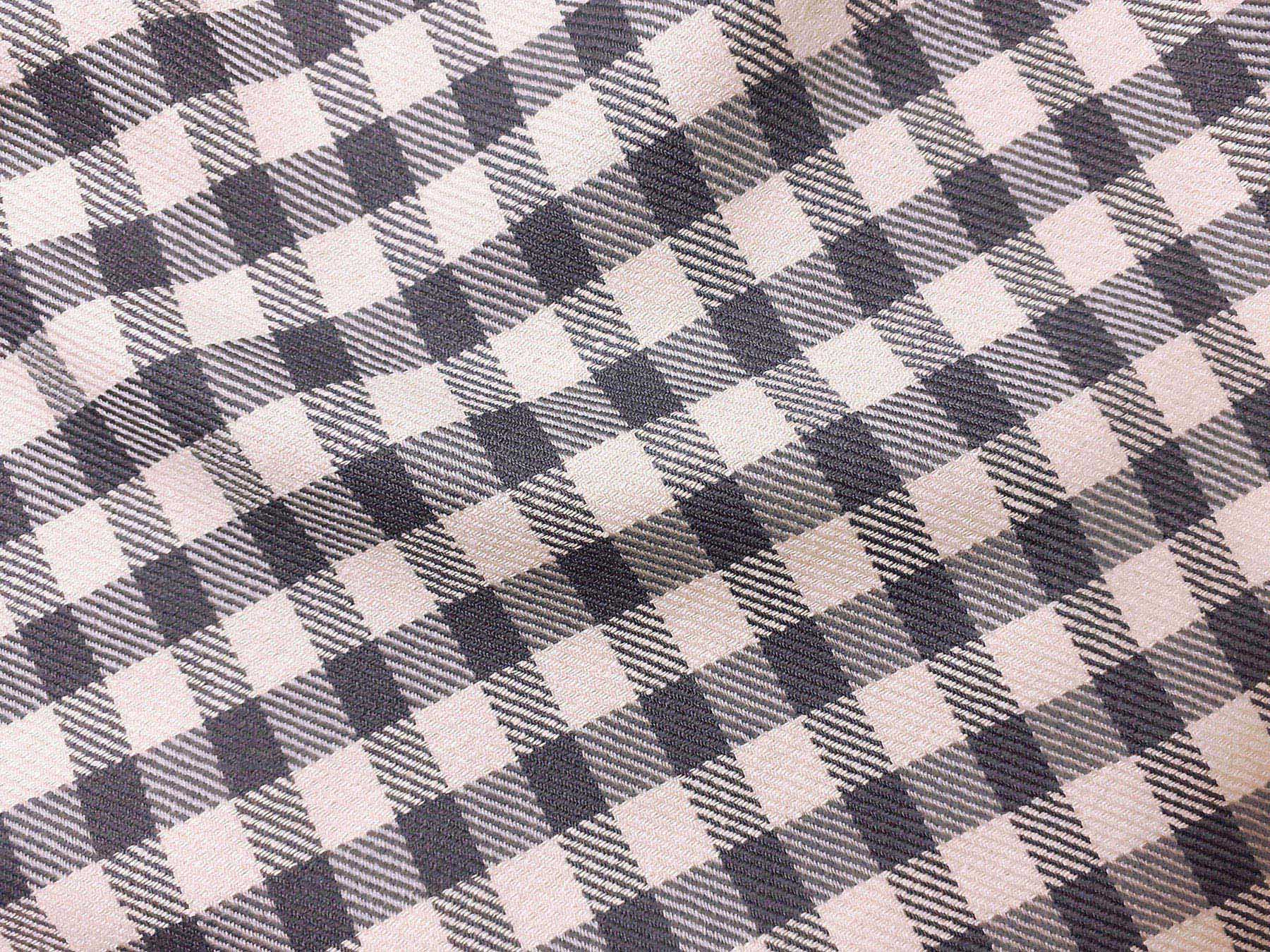 Tessuto in lana e seta a quadretti grigio e avorio