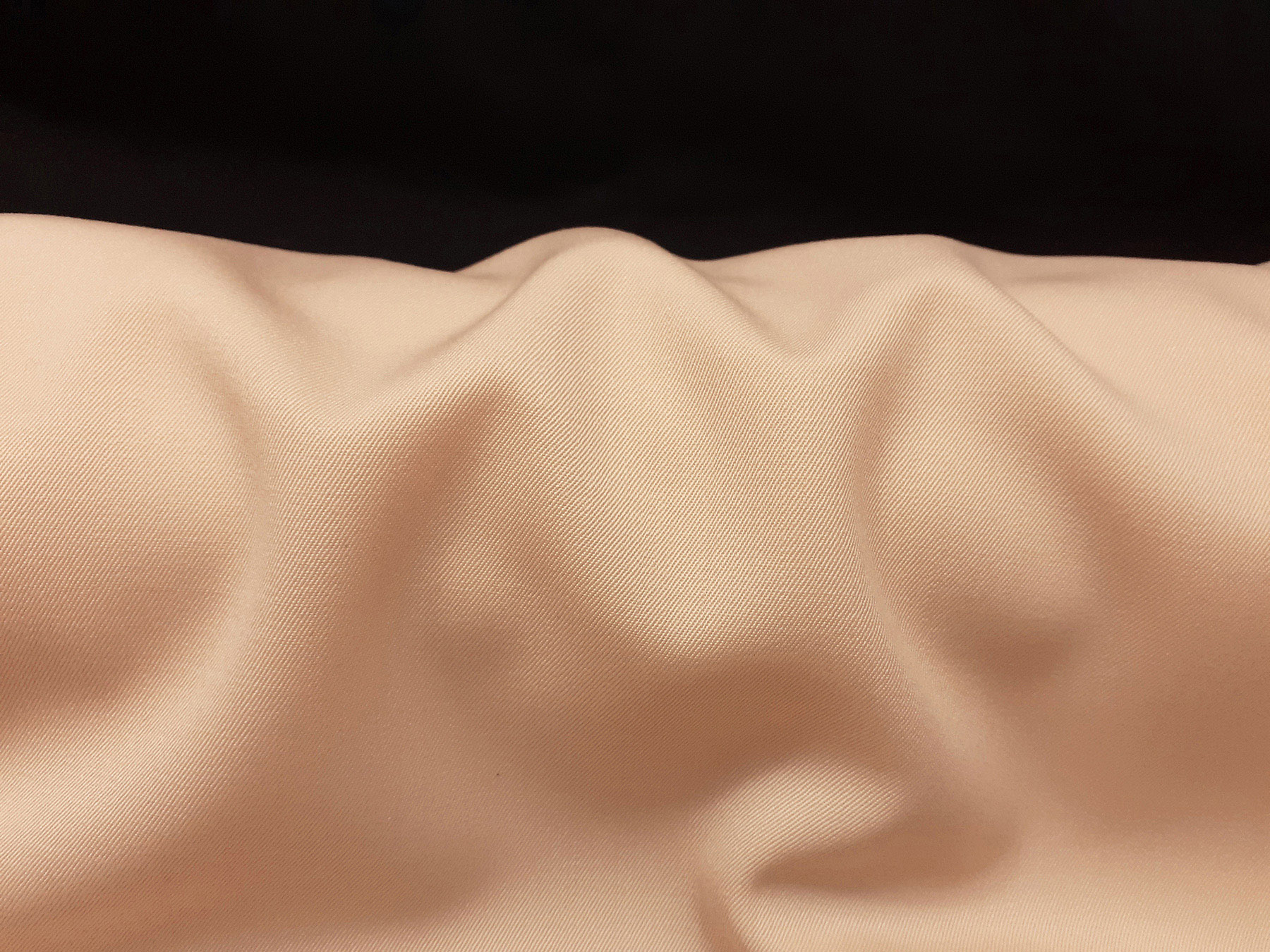 Gabardine di peso medio prodotto a Biella con un filato di lana merino pettinato. Ha mano asciutta, compatta e resistente. Utilizzato nella realizzazione di abiti per donna dalle linee pulite e semplici, gonne diritte e capi spalla.