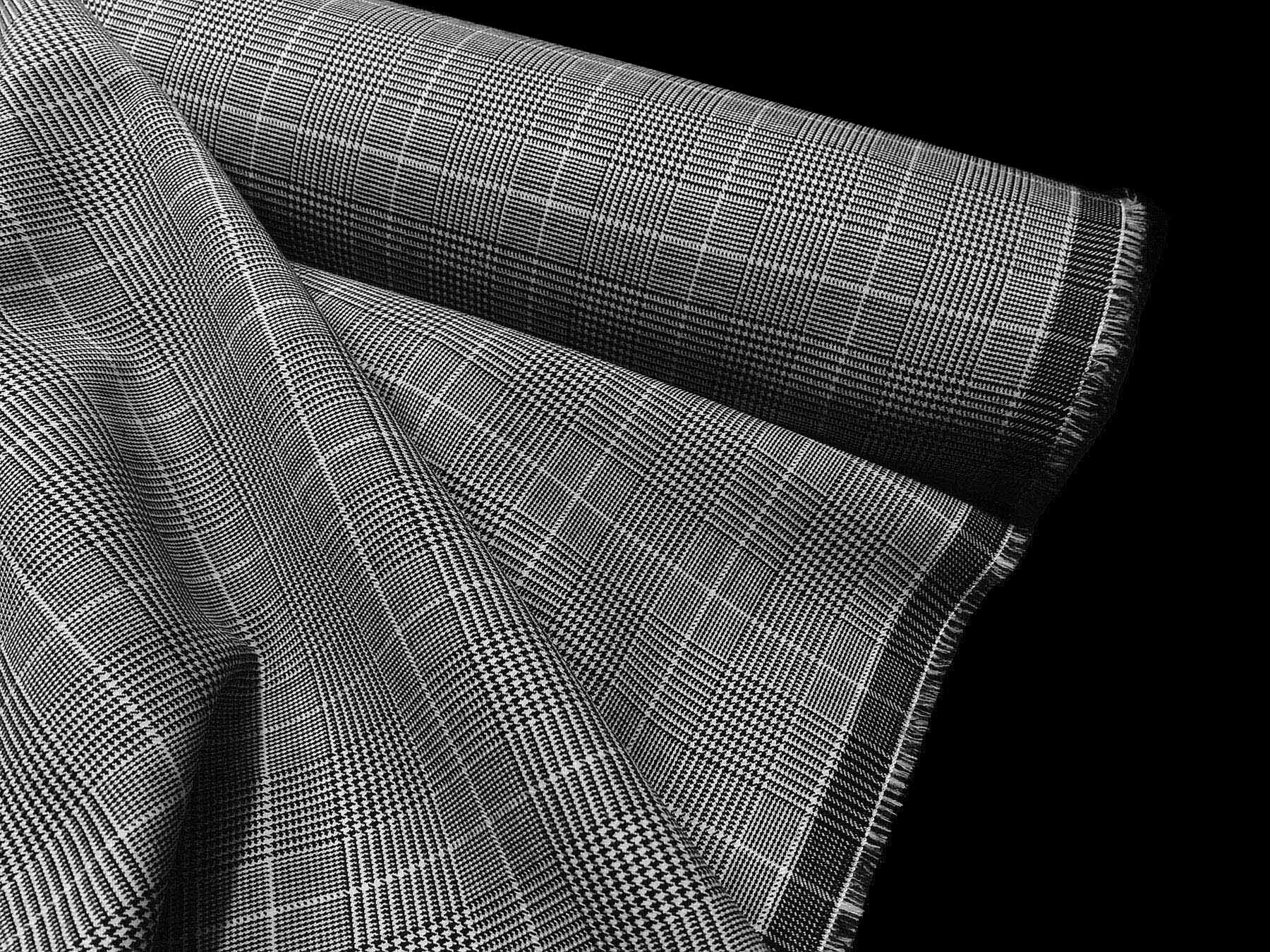 Lana pettinata doppio ritorta Principe di Galles bianco e nero