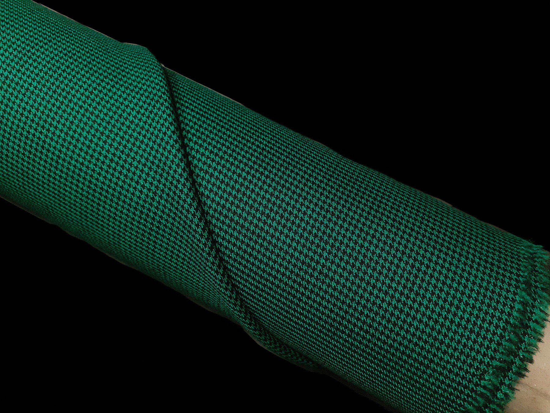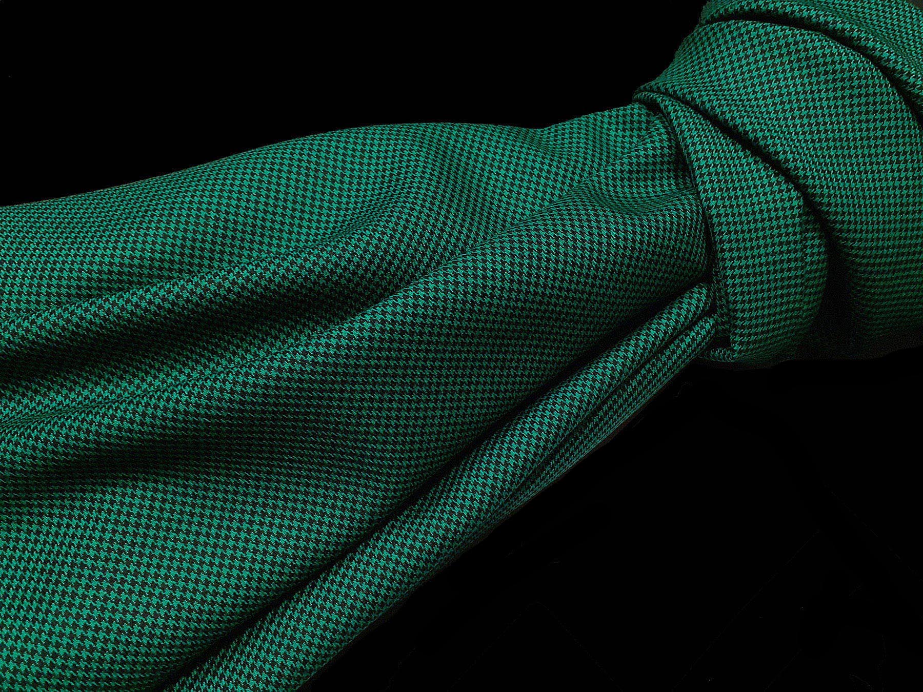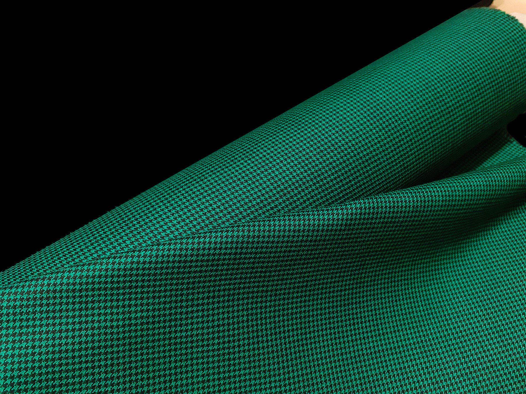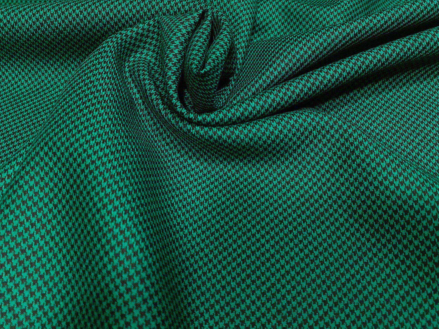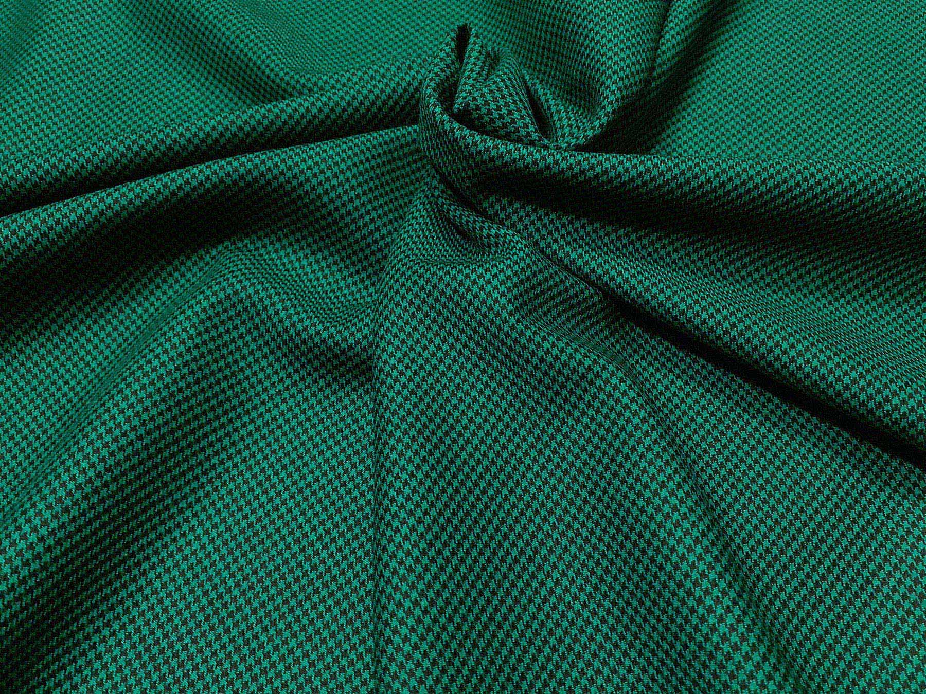 Tessuto tasmania in lana doppio ritorta pied de poule verde e nero