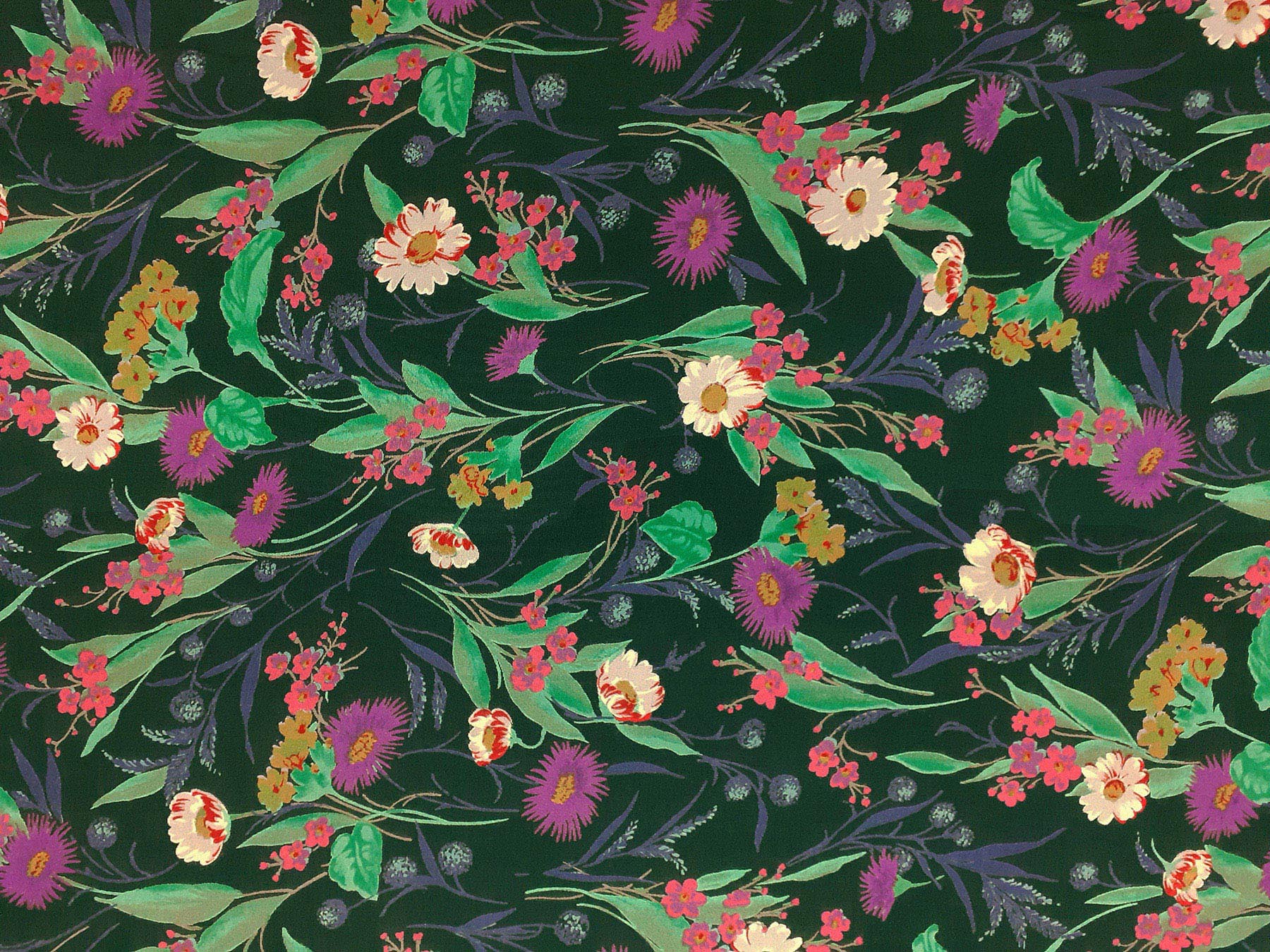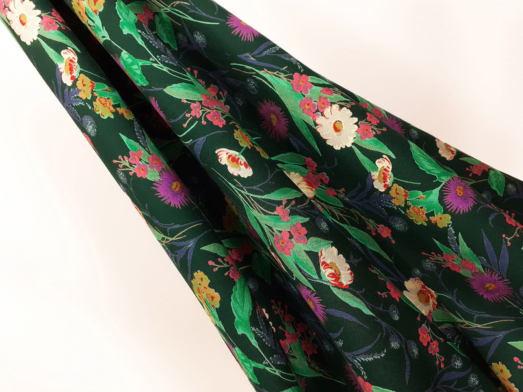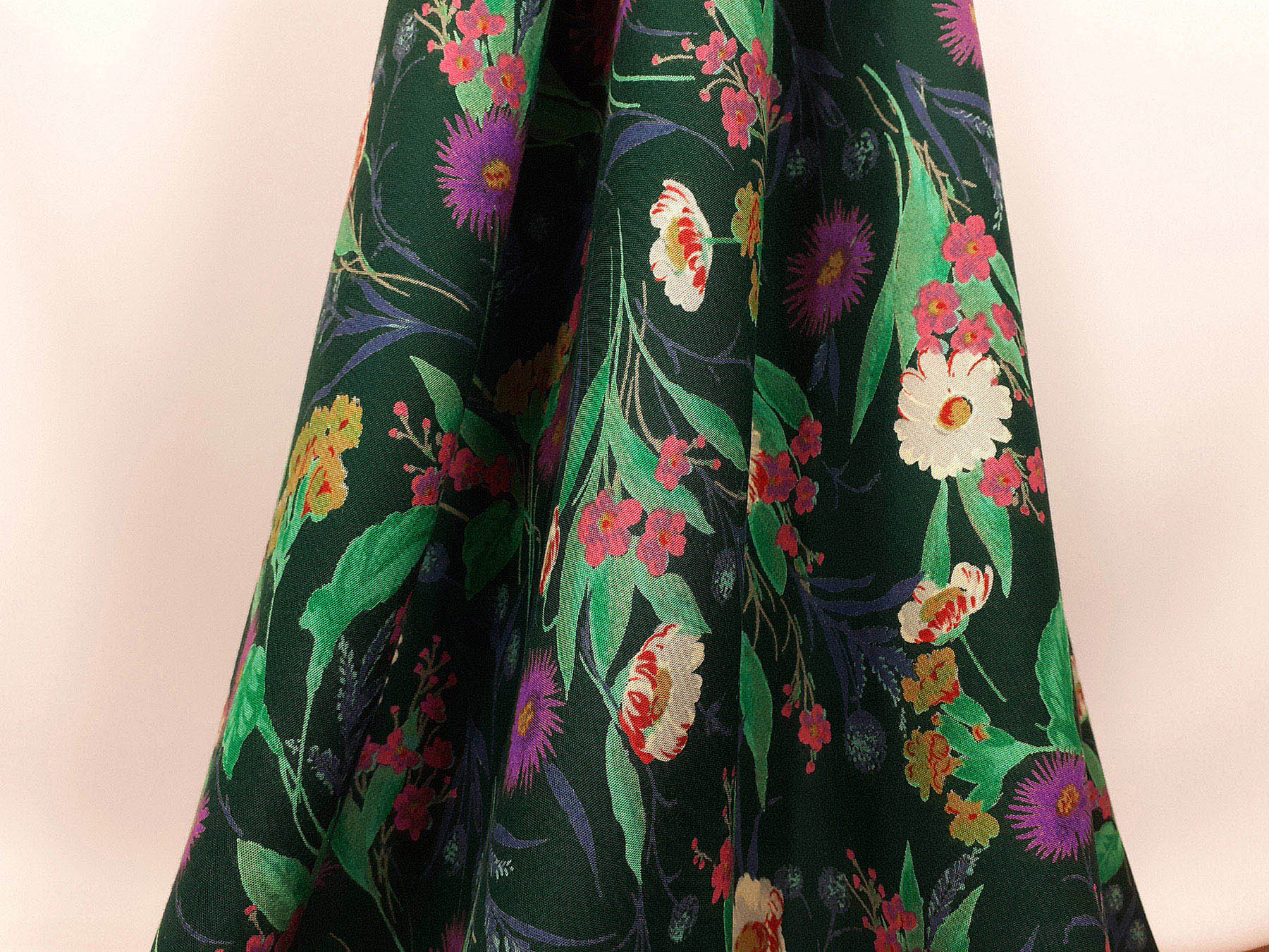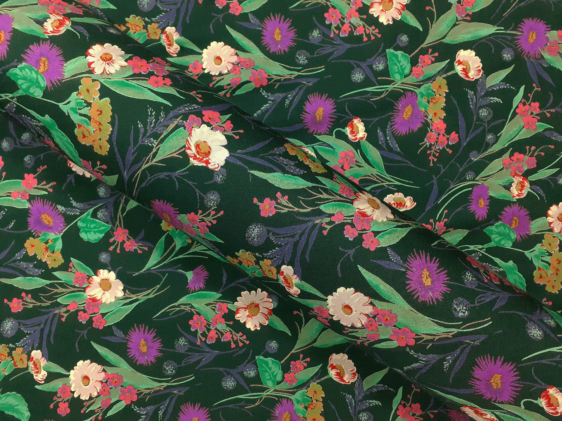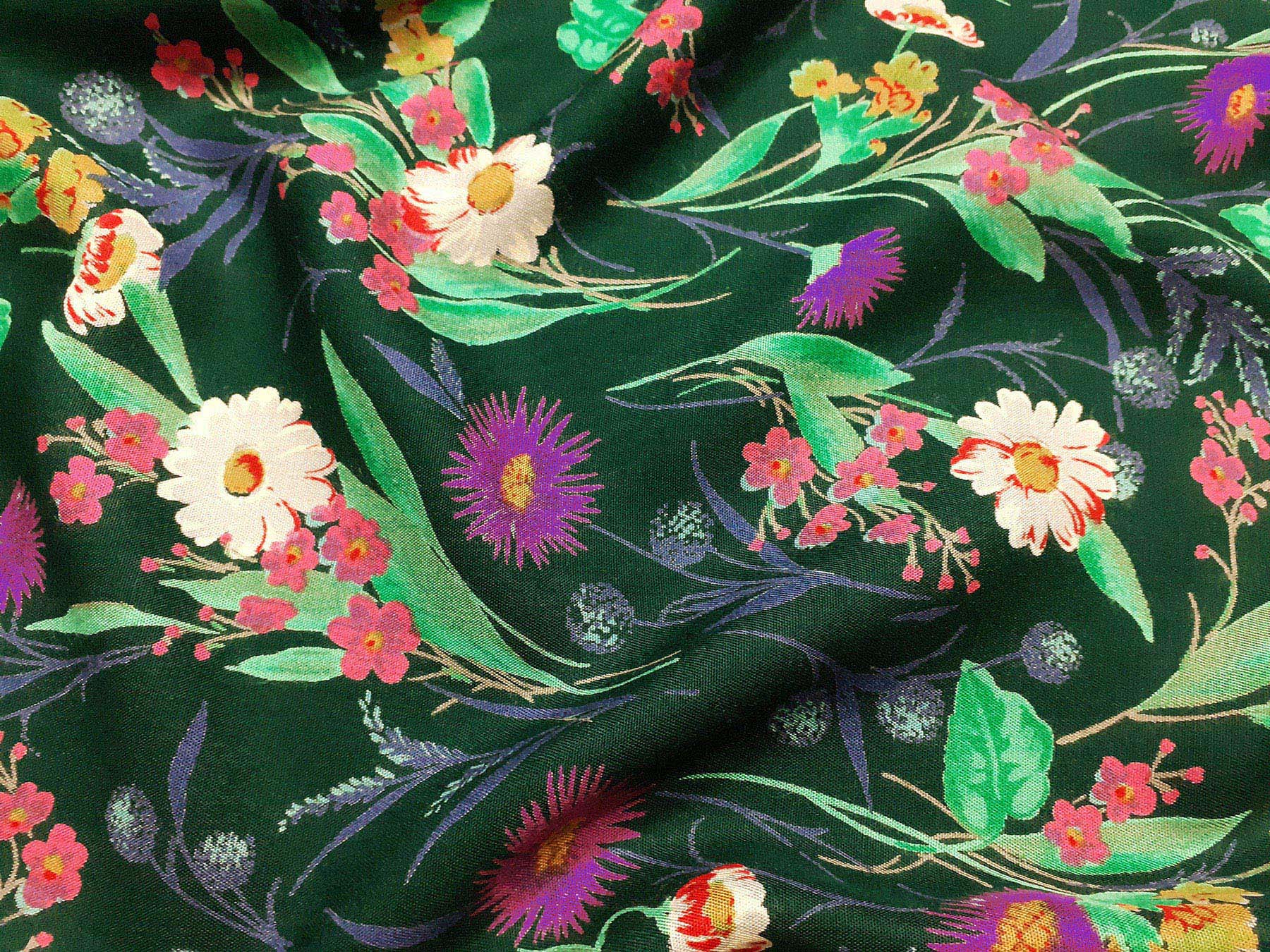 Tessuto in viscosa fantasia floreale fondo verde scuro