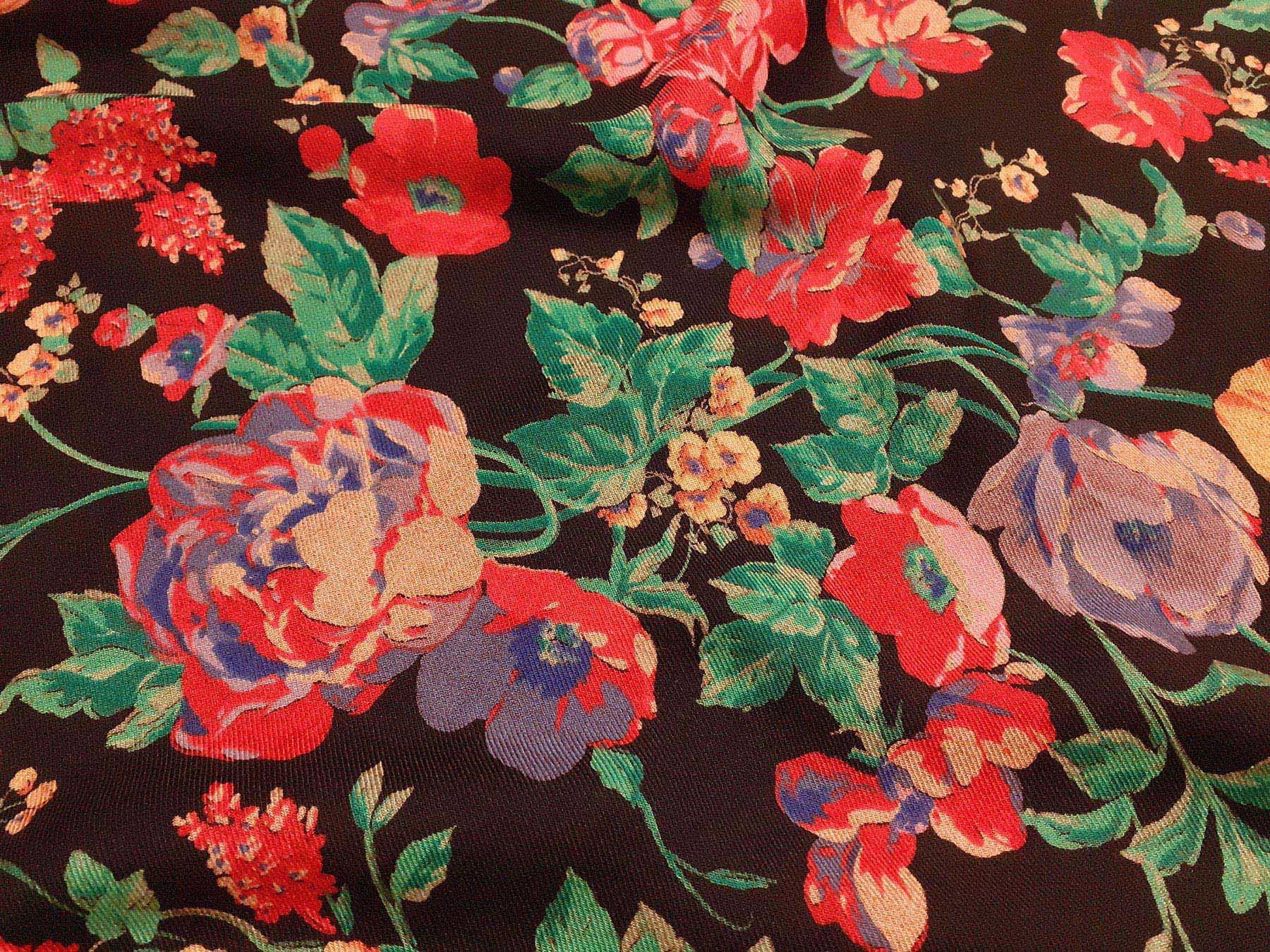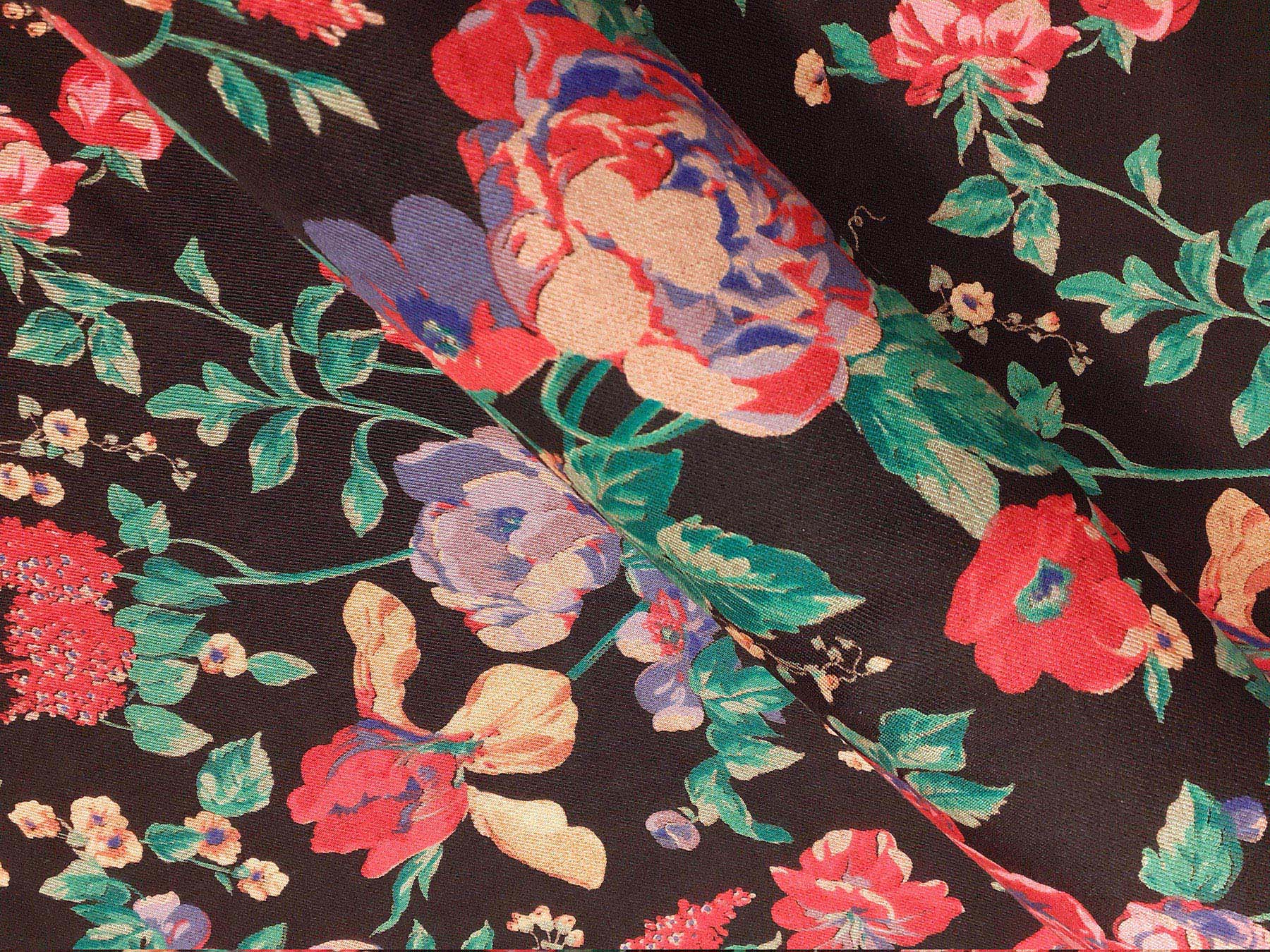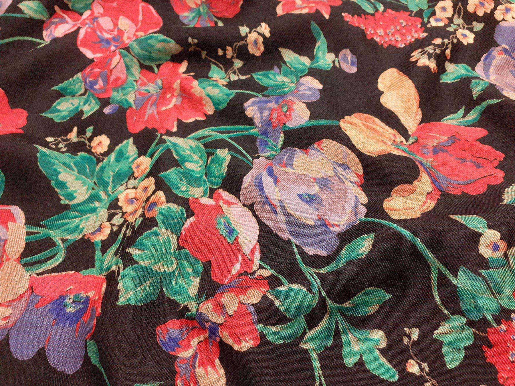 Mussola di lana fantasia floreale su fondo nero