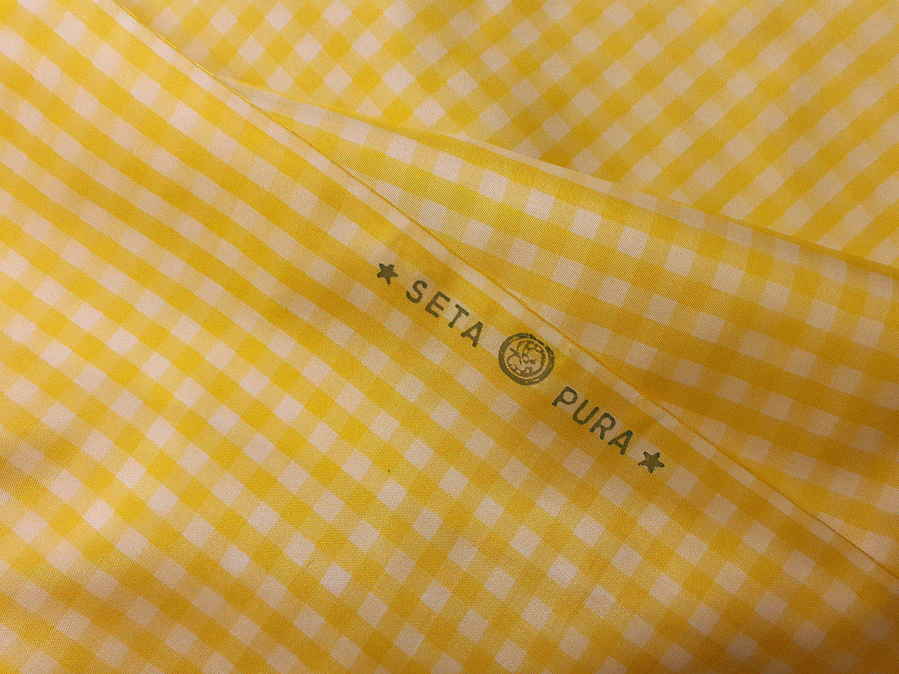 Seta taffetà tinta in filo a quadretti bianco e gialli