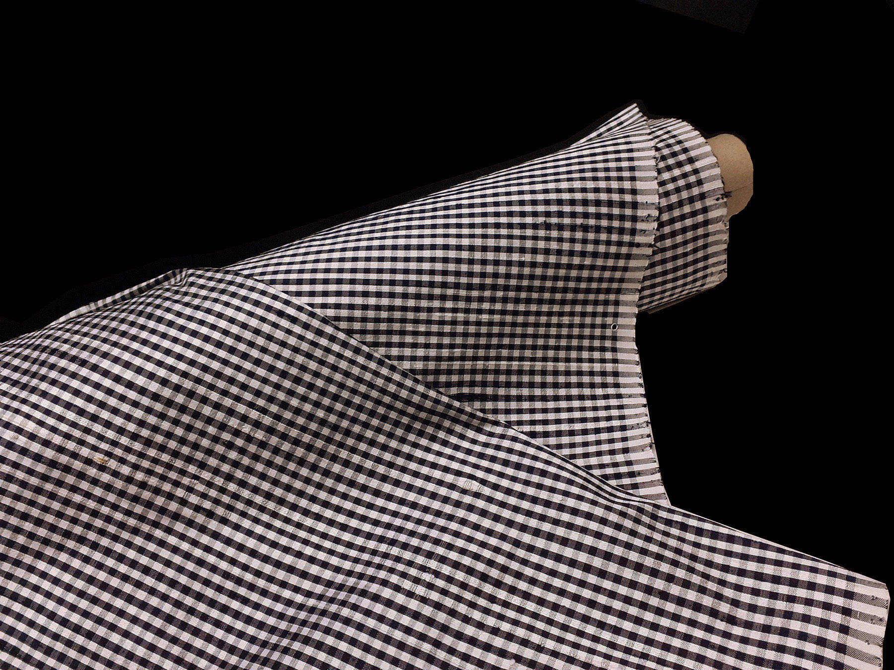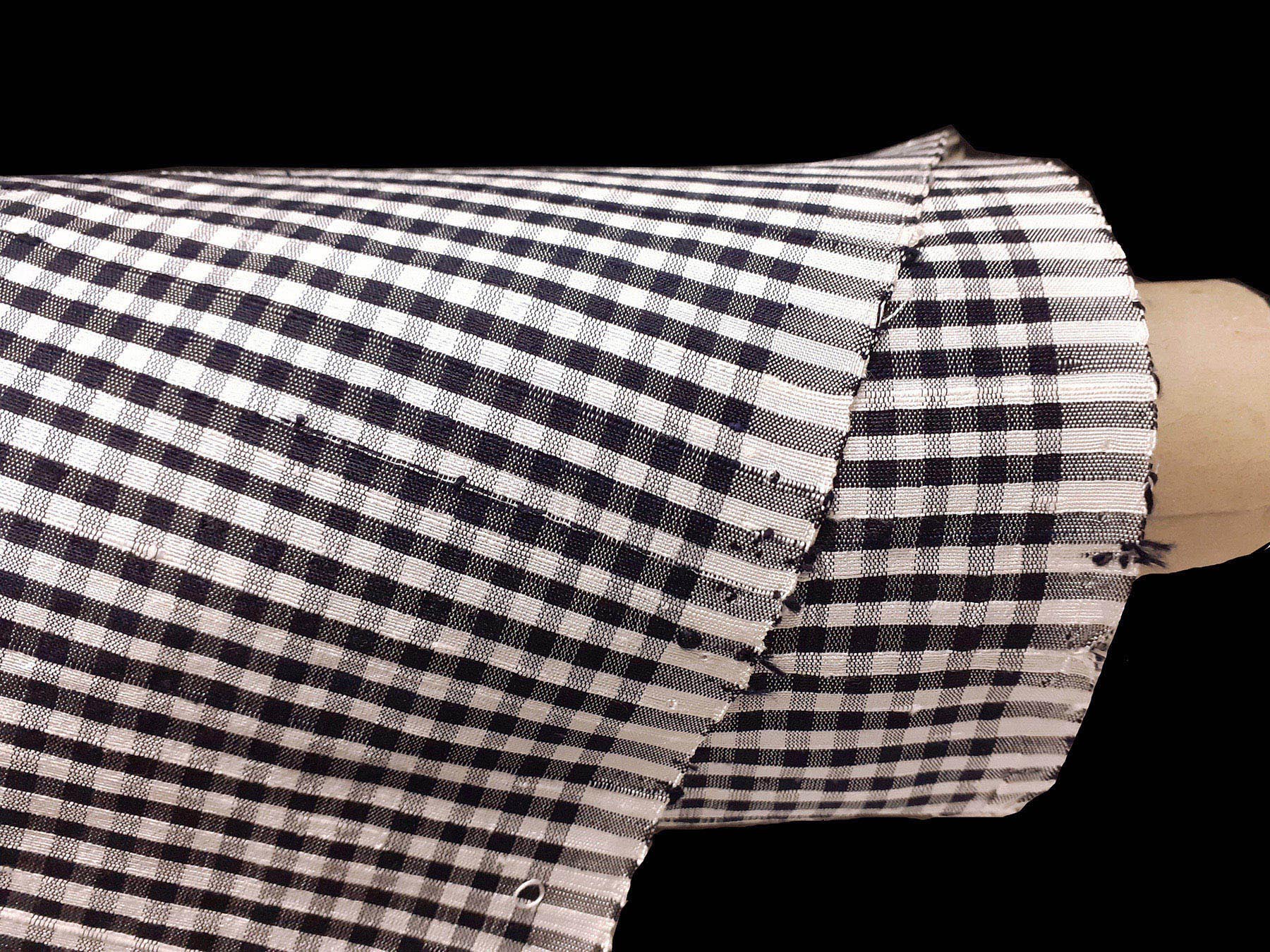 Seta shantung a quadrettini bianco e nero