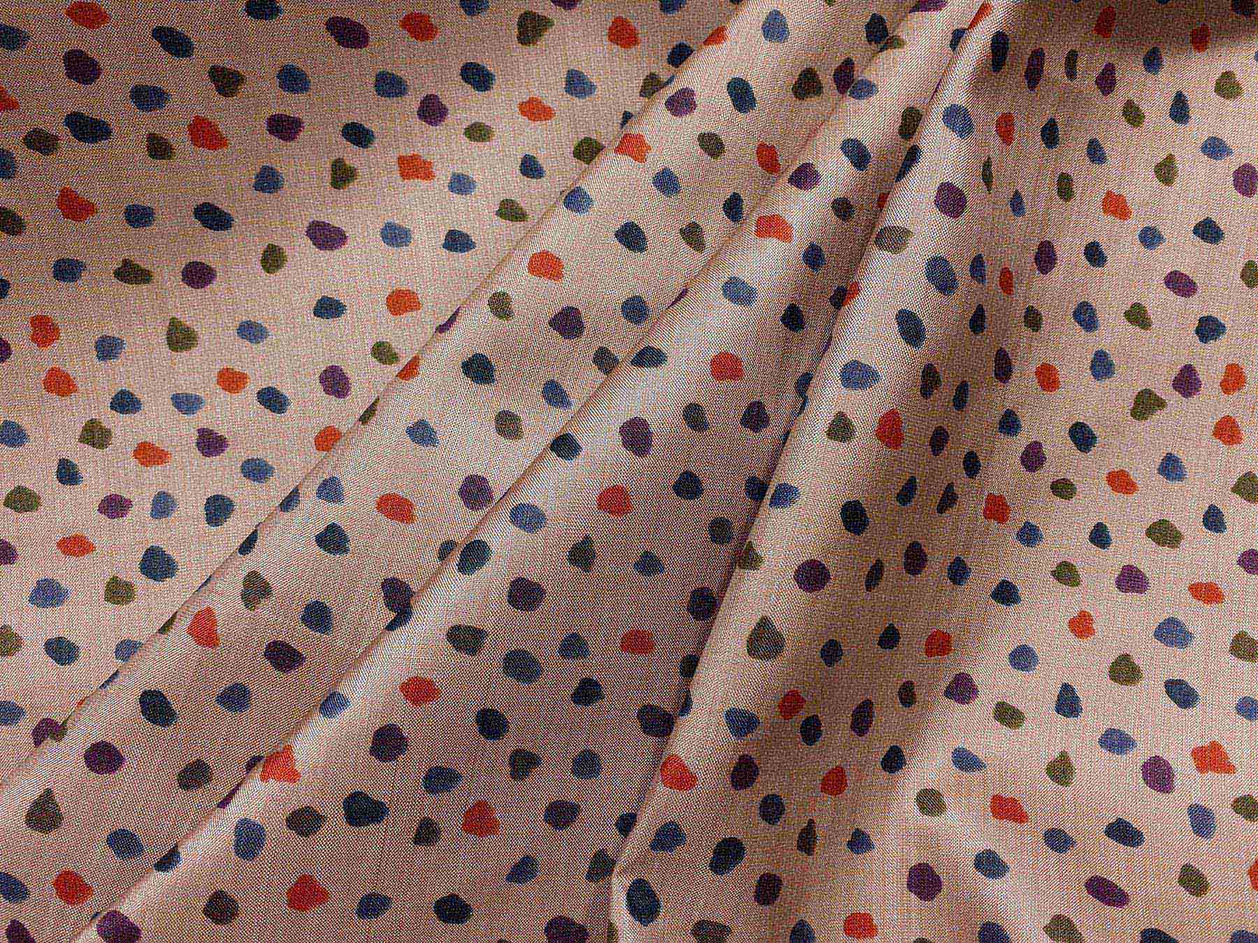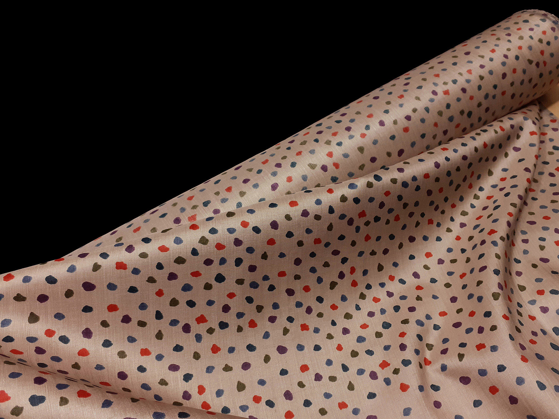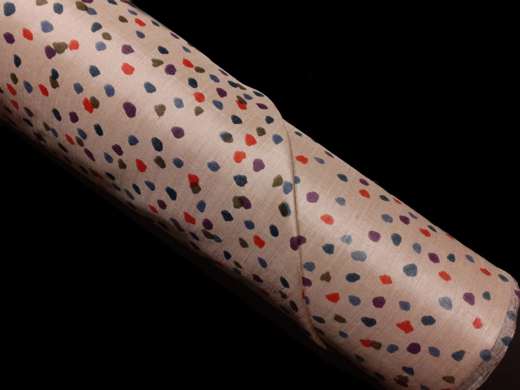 Questo tessuto di seta, prodotto a Como, è stato realizzato utilizzando filati shantung molto ritorti e quindi poco irregolari. Si presenta compatto, poco rilevato, ma conserva le caratteristiche dello shantung ovvero la mano sostenuta e “croccante”. Ha un aspetto semi opaco conferito dall’ordito opaco e dalla trama lucida inoltre è un tessuto che non si stropiccia ed è resistente all’usura.