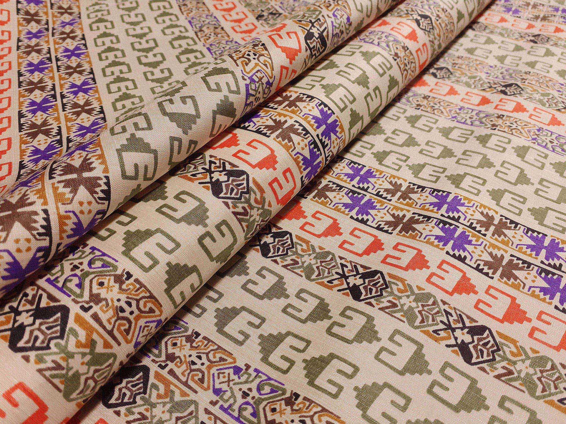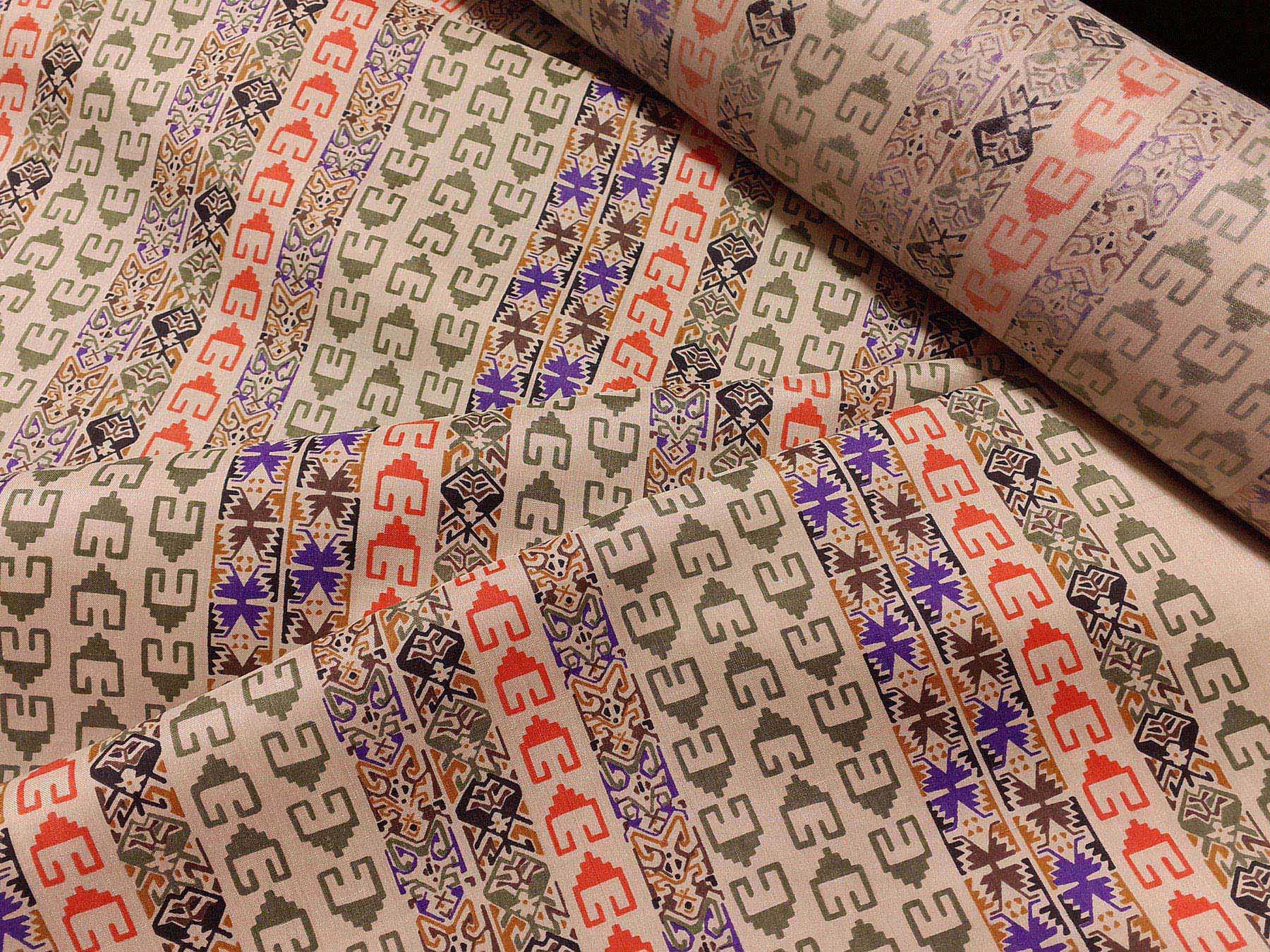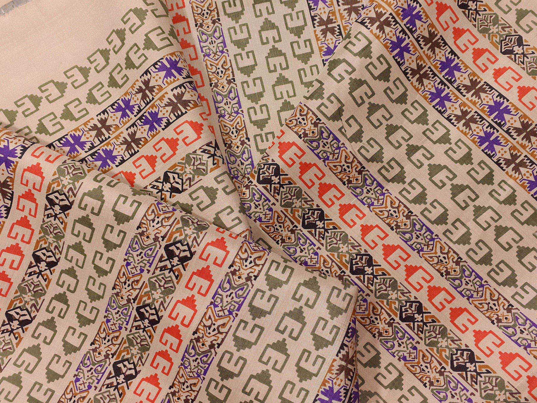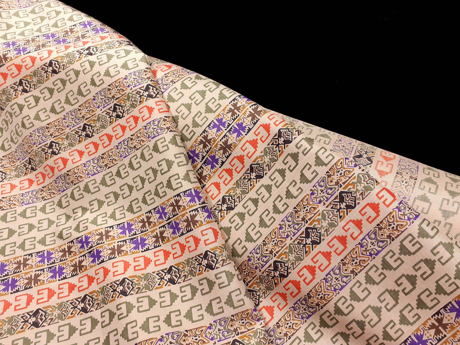 Seta Shantung fantasia a “greche” su fondo beige chiaro