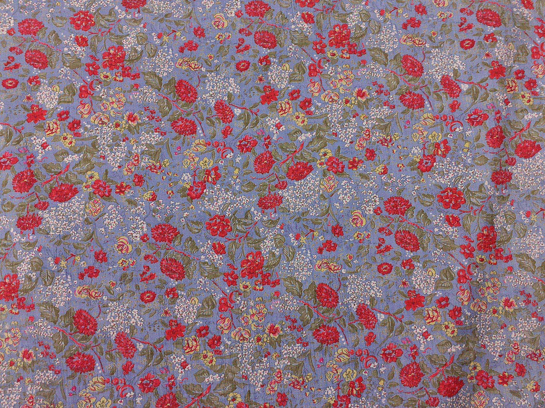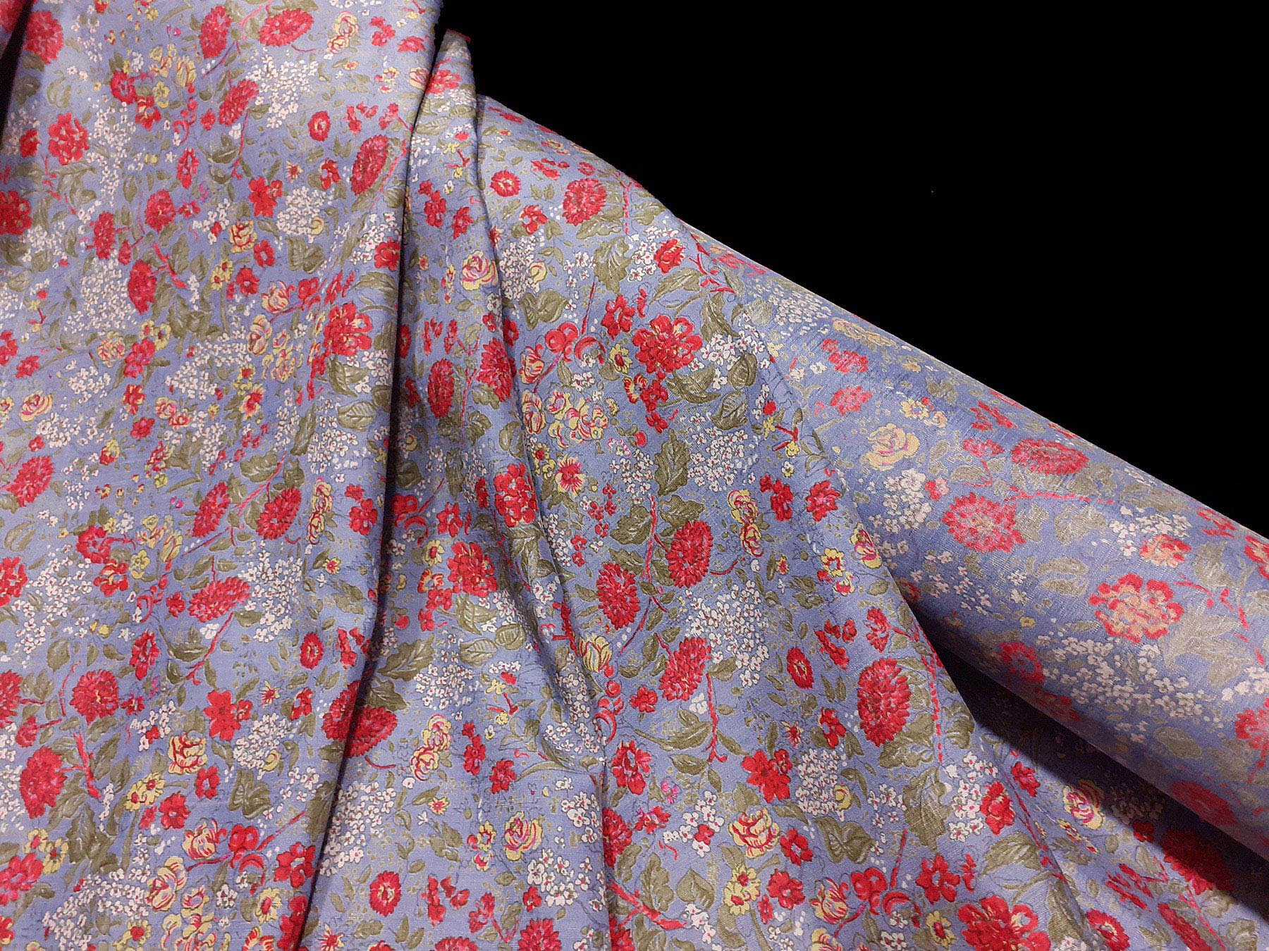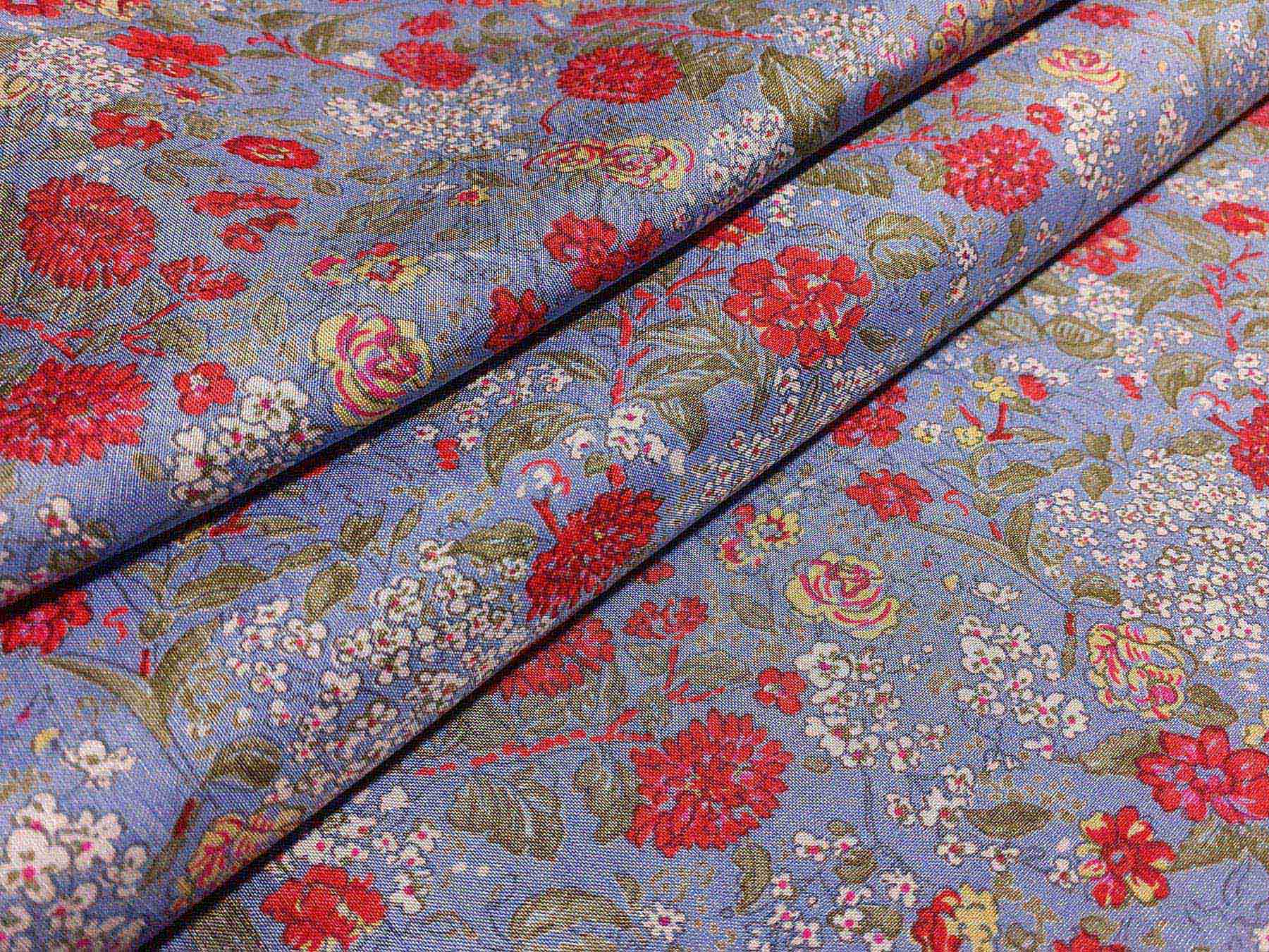 Seta Shantung fantasia floreale su fondo celeste