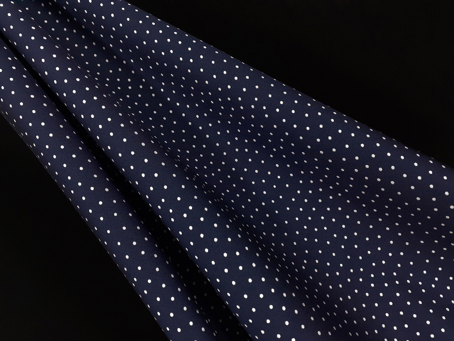 Cady in seta fantasia piccoli pois avorio su fondo blu